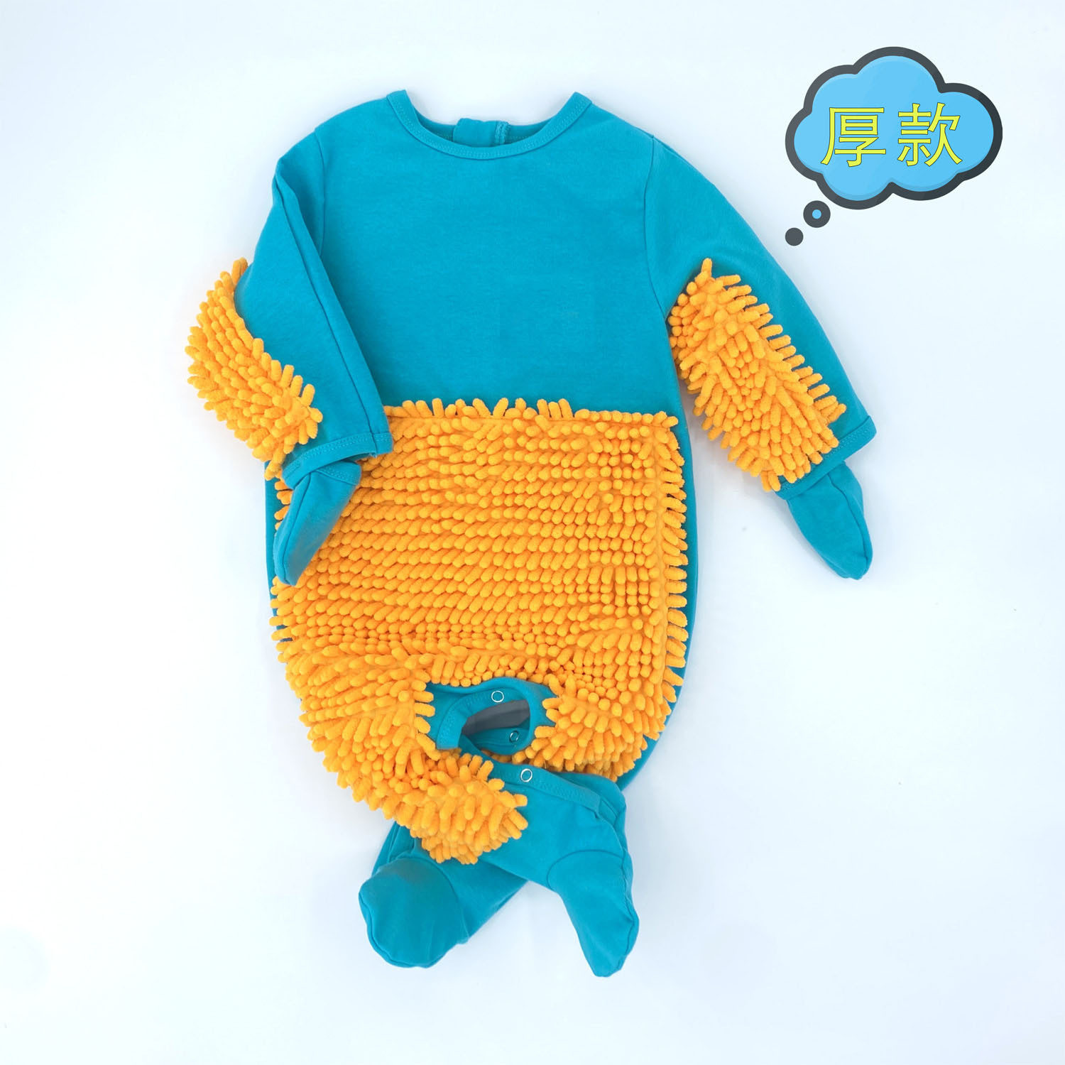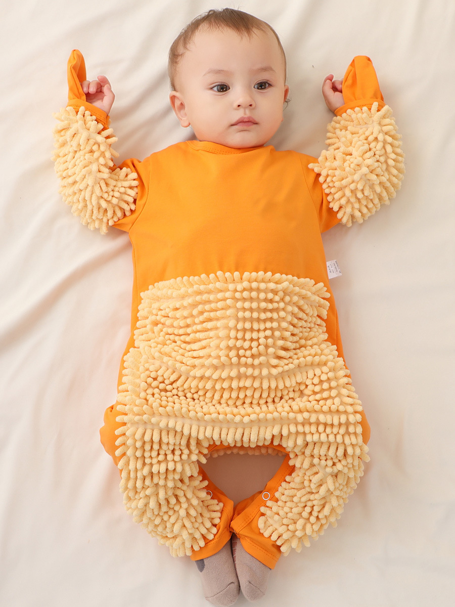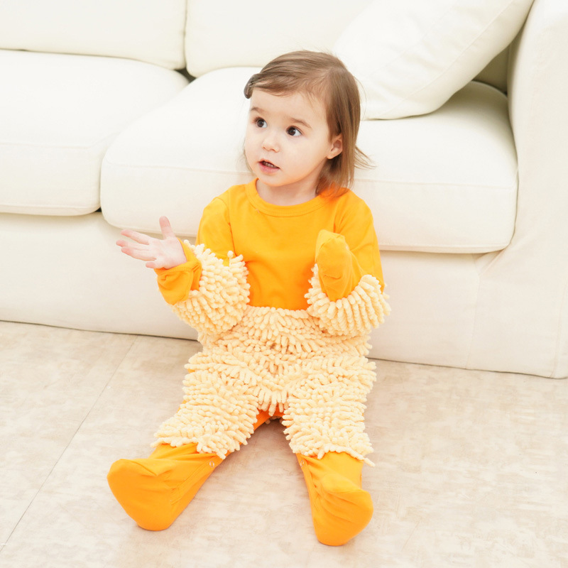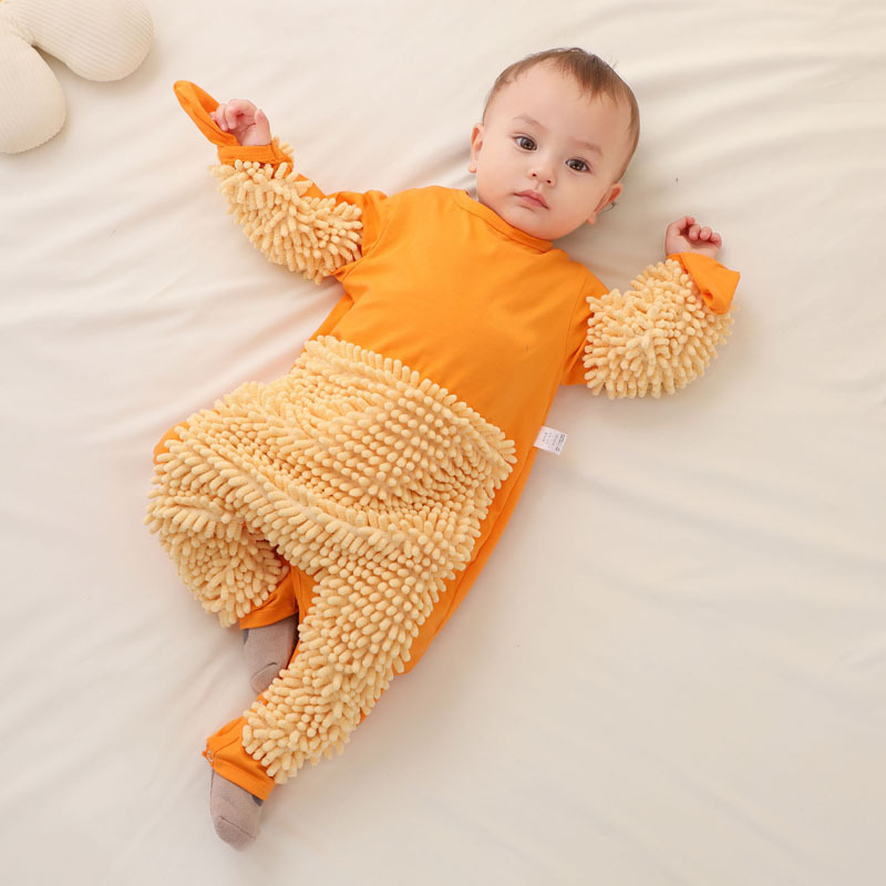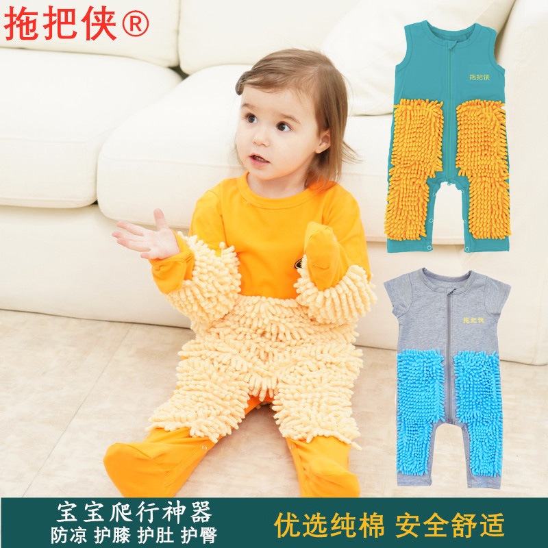 拖把侠婴儿爬行服宝宝拖地爬爬服儿童连体衣服拉链防脏罩衣春秋季