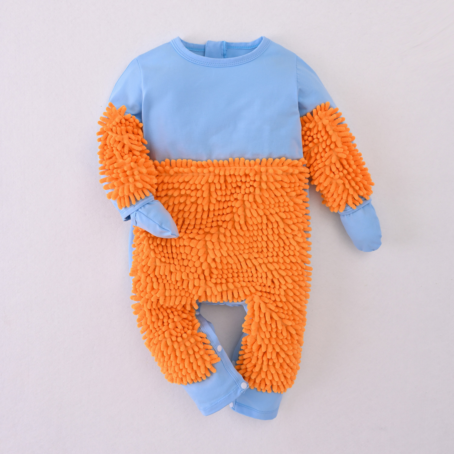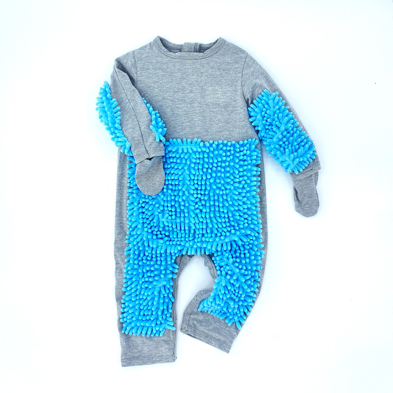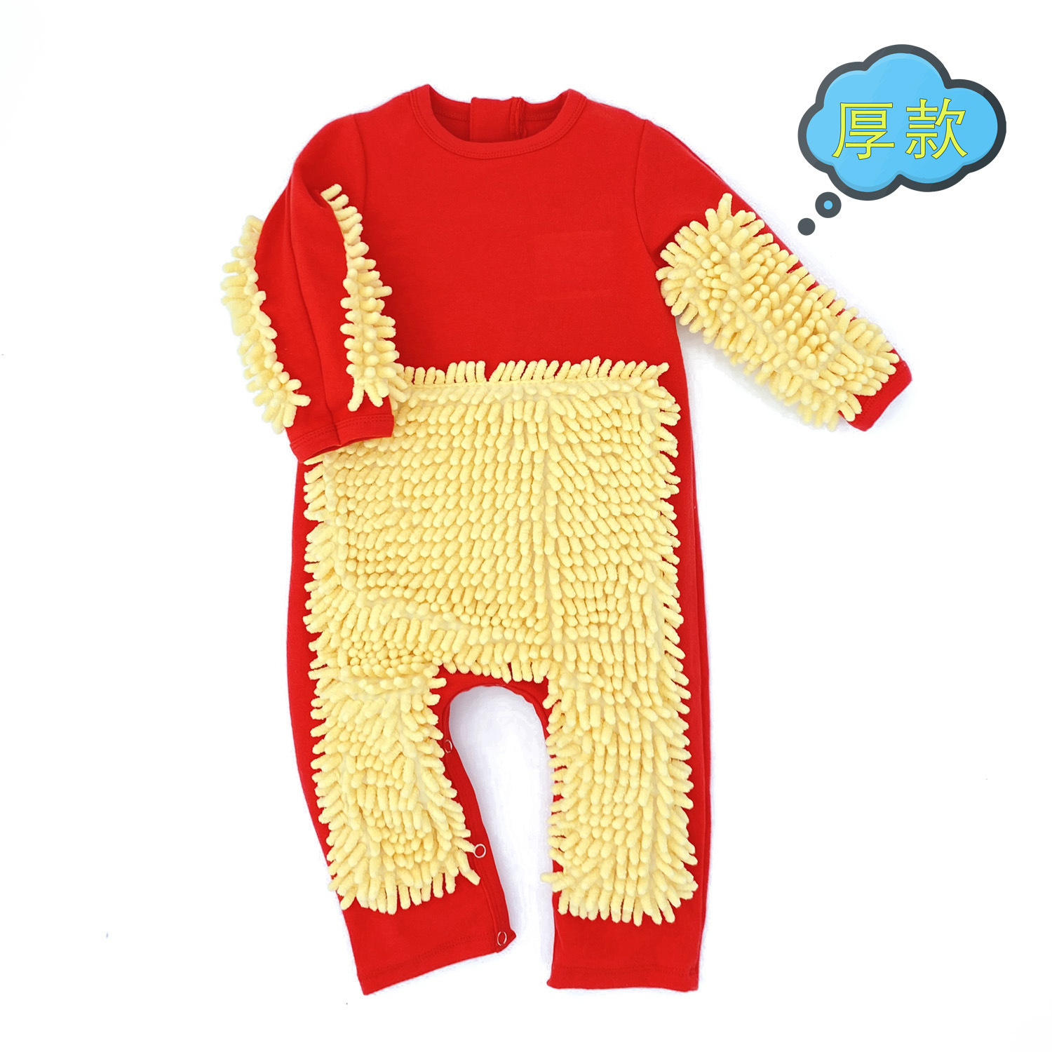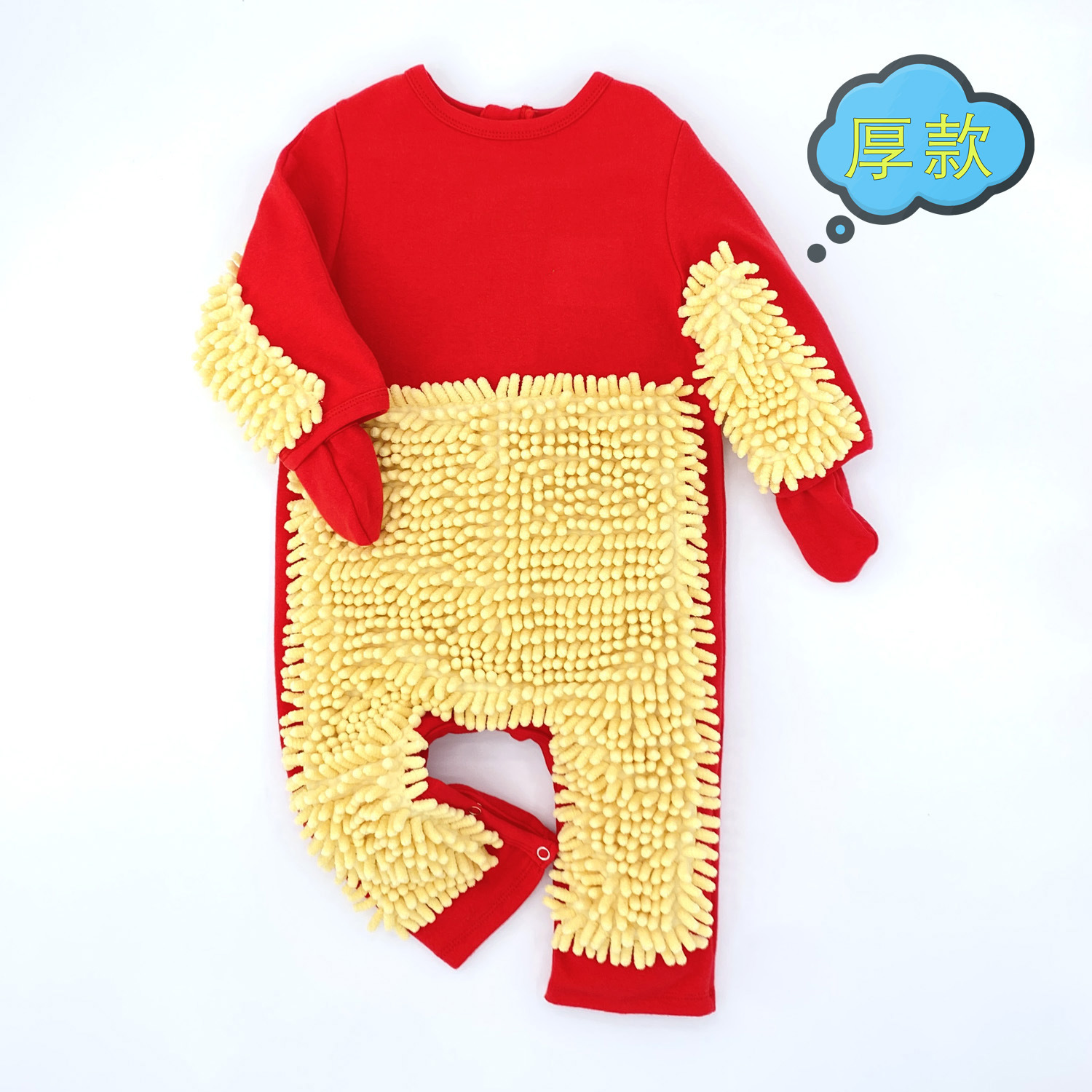 拖把侠婴儿爬行服宝宝拖地爬爬服儿童连体衣服拉链防脏罩衣春秋季