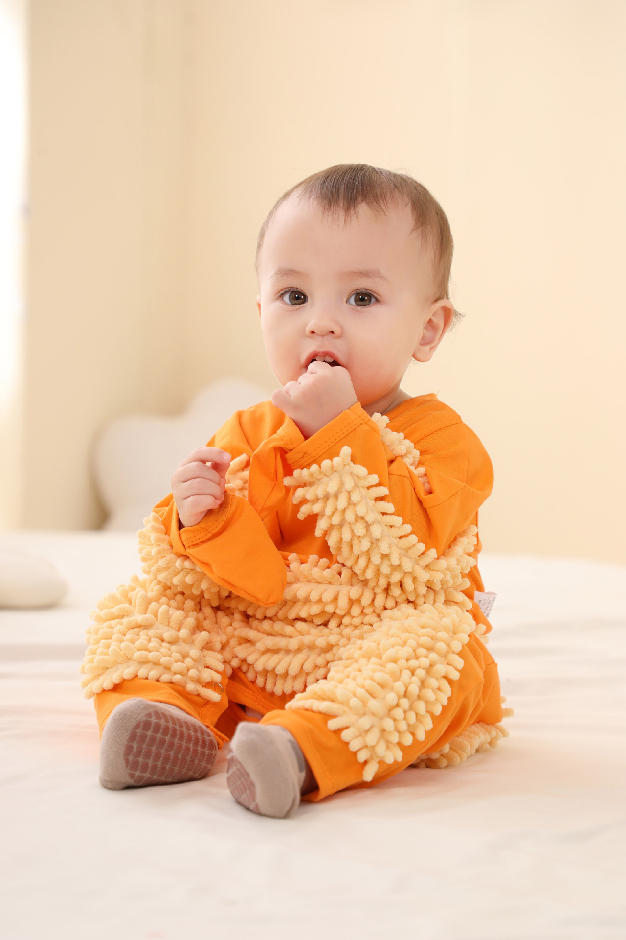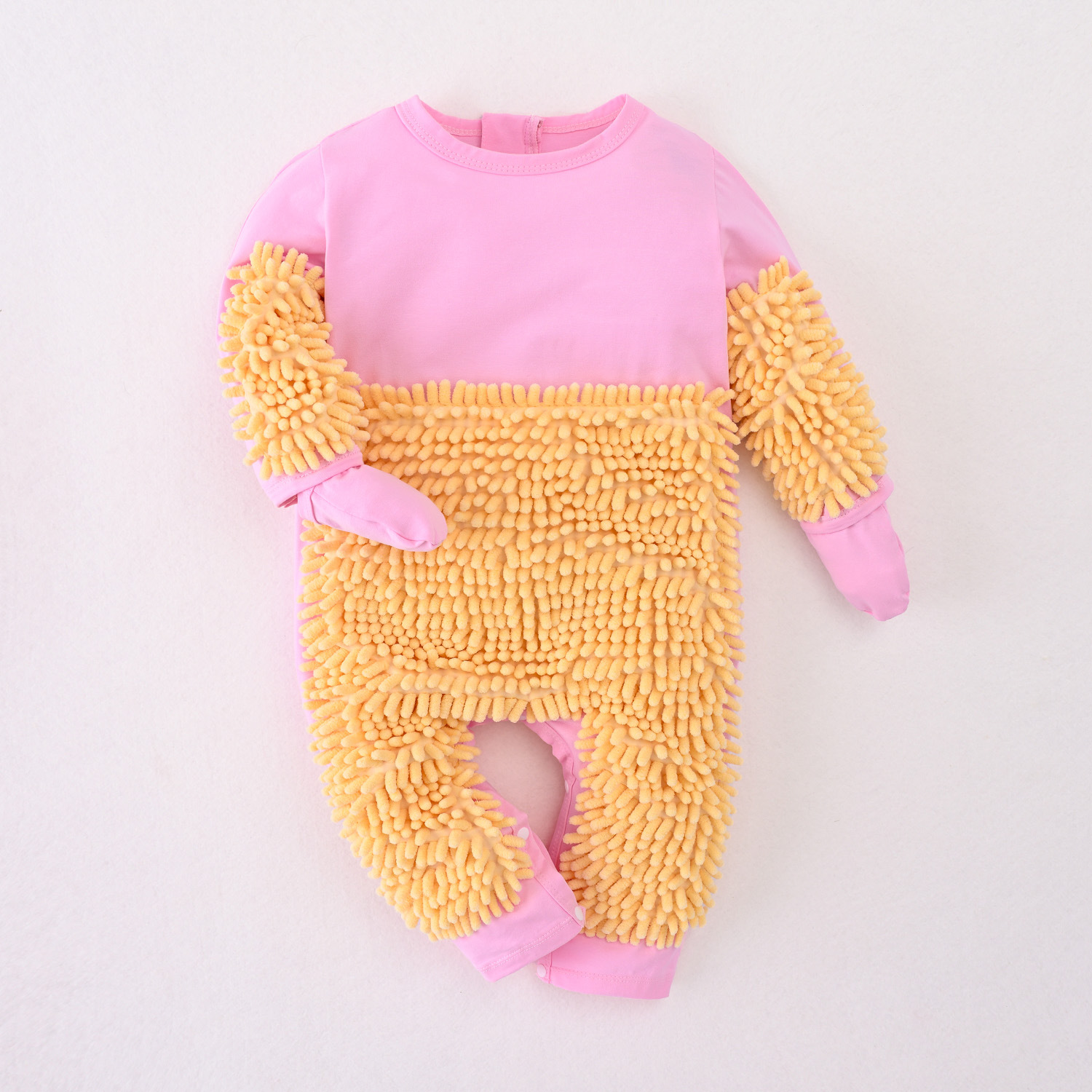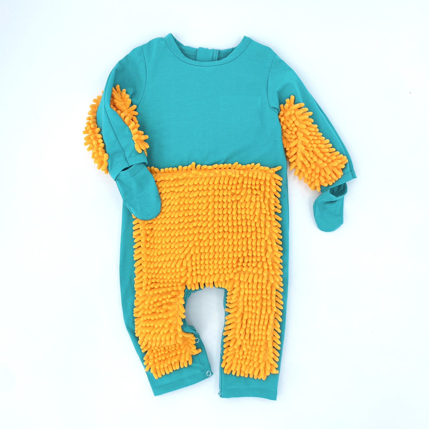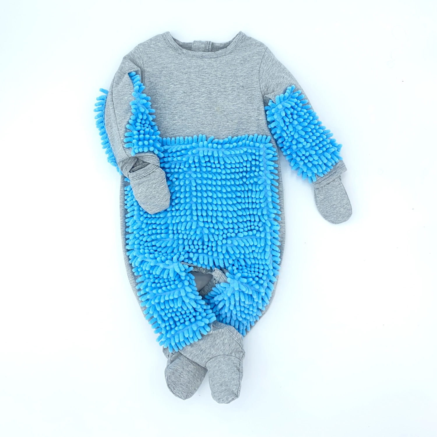 拖把侠婴儿爬行服宝宝拖地爬爬服儿童连体衣服拉链防脏罩衣春秋季