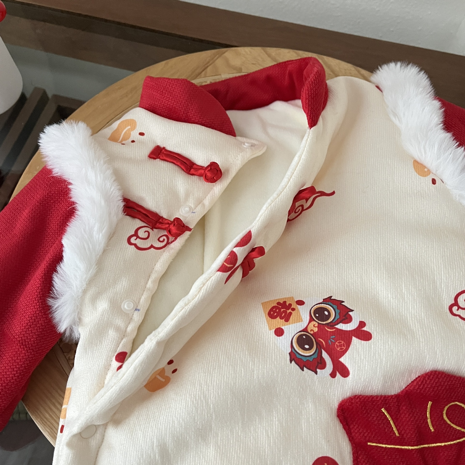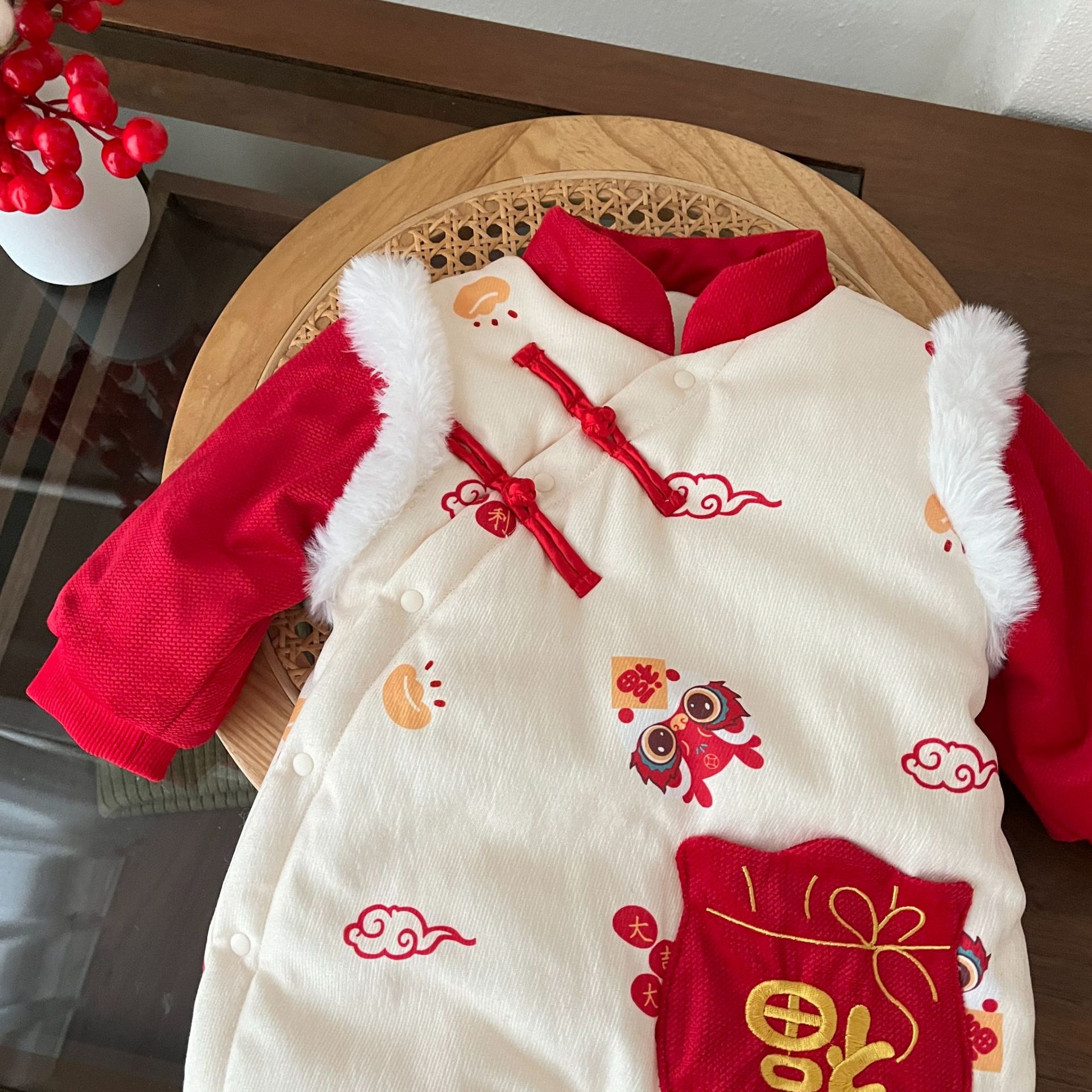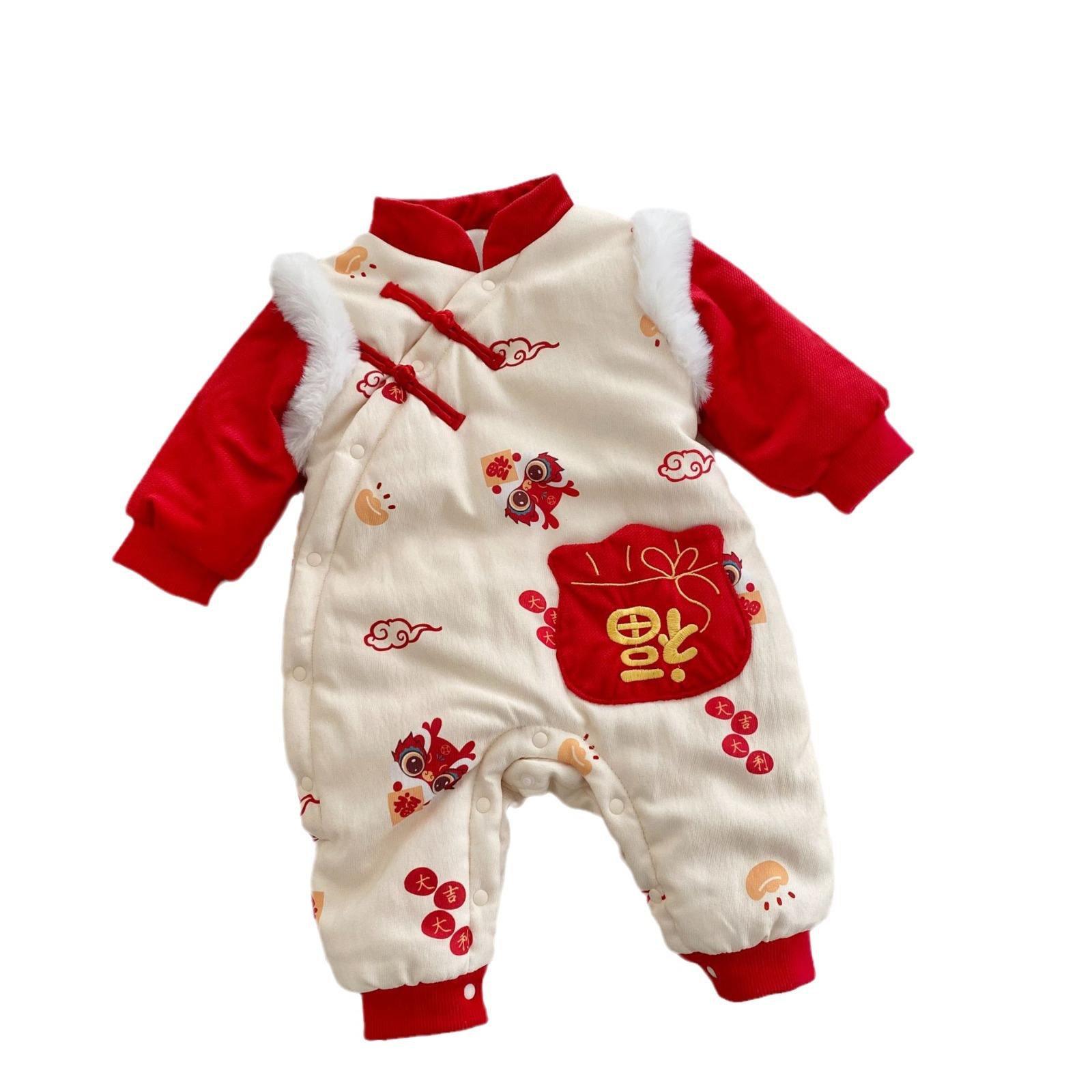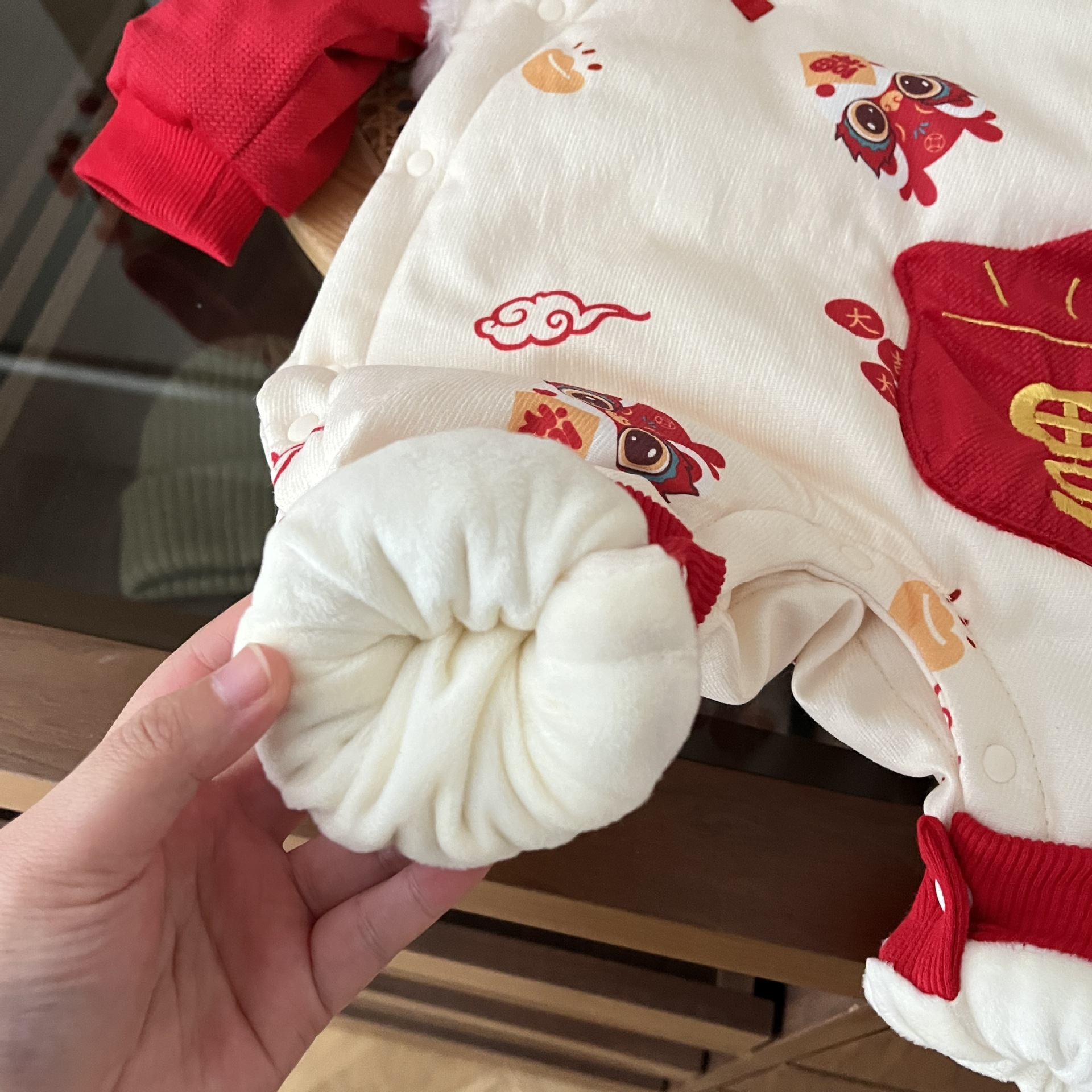 婴儿拜年服0-2岁冬季男女宝宝加绒龙年加厚连体衣婴儿冬装潮AL416