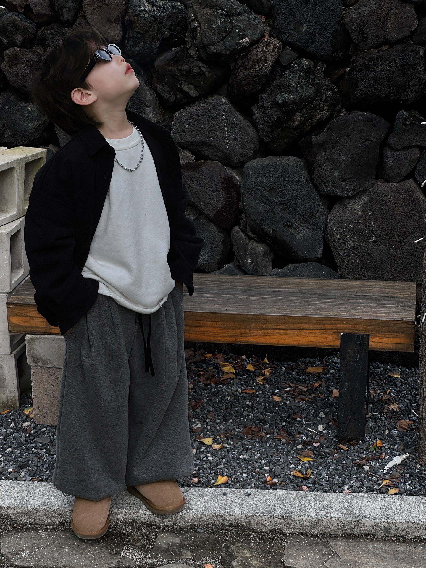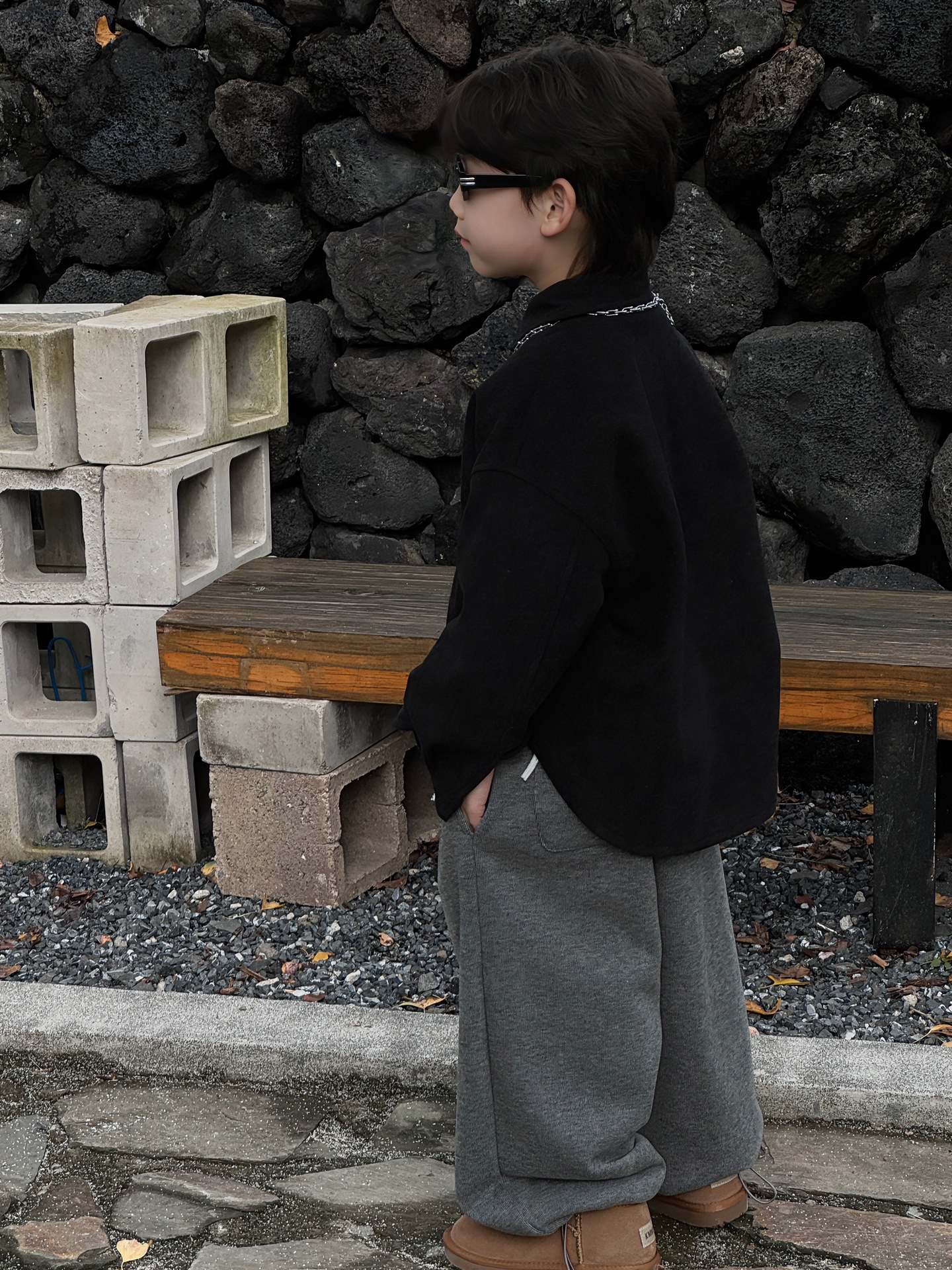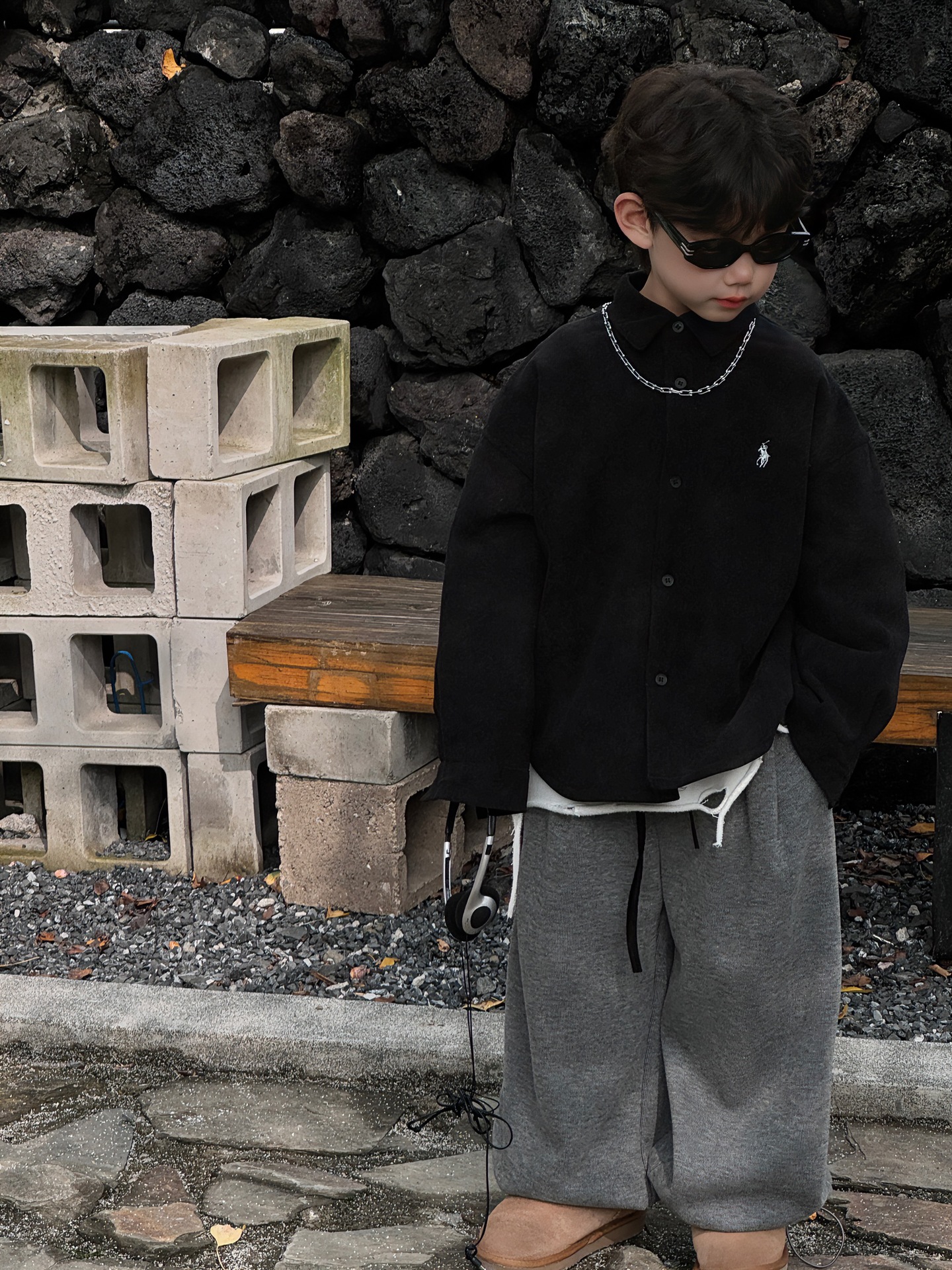 泰如2024冬季新款儿童翻领纯色加绒打衬衫男童洋气百搭加厚外套潮