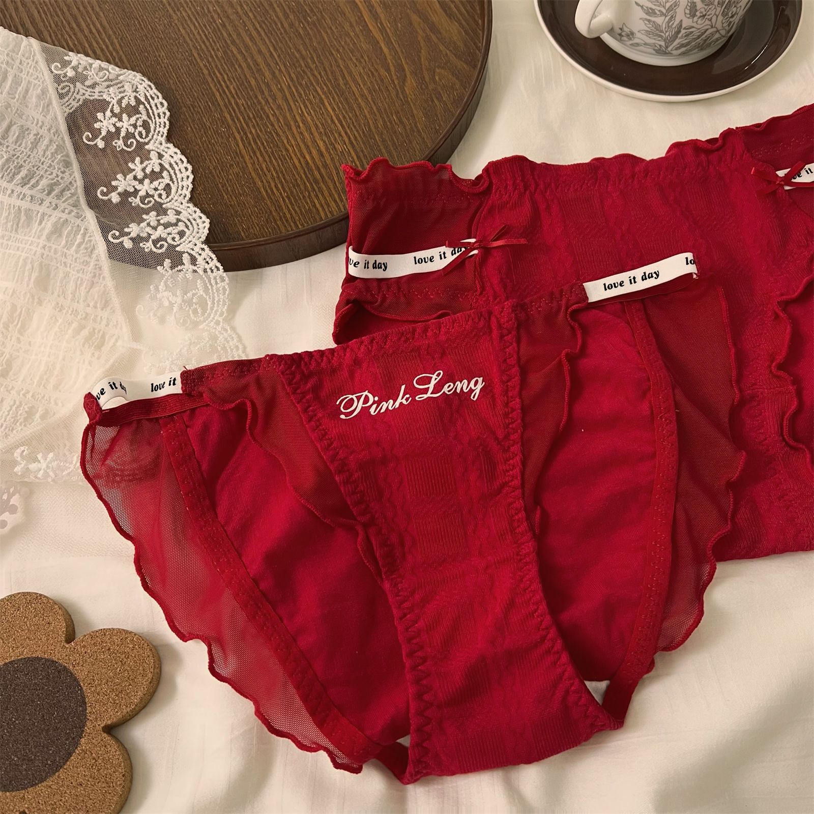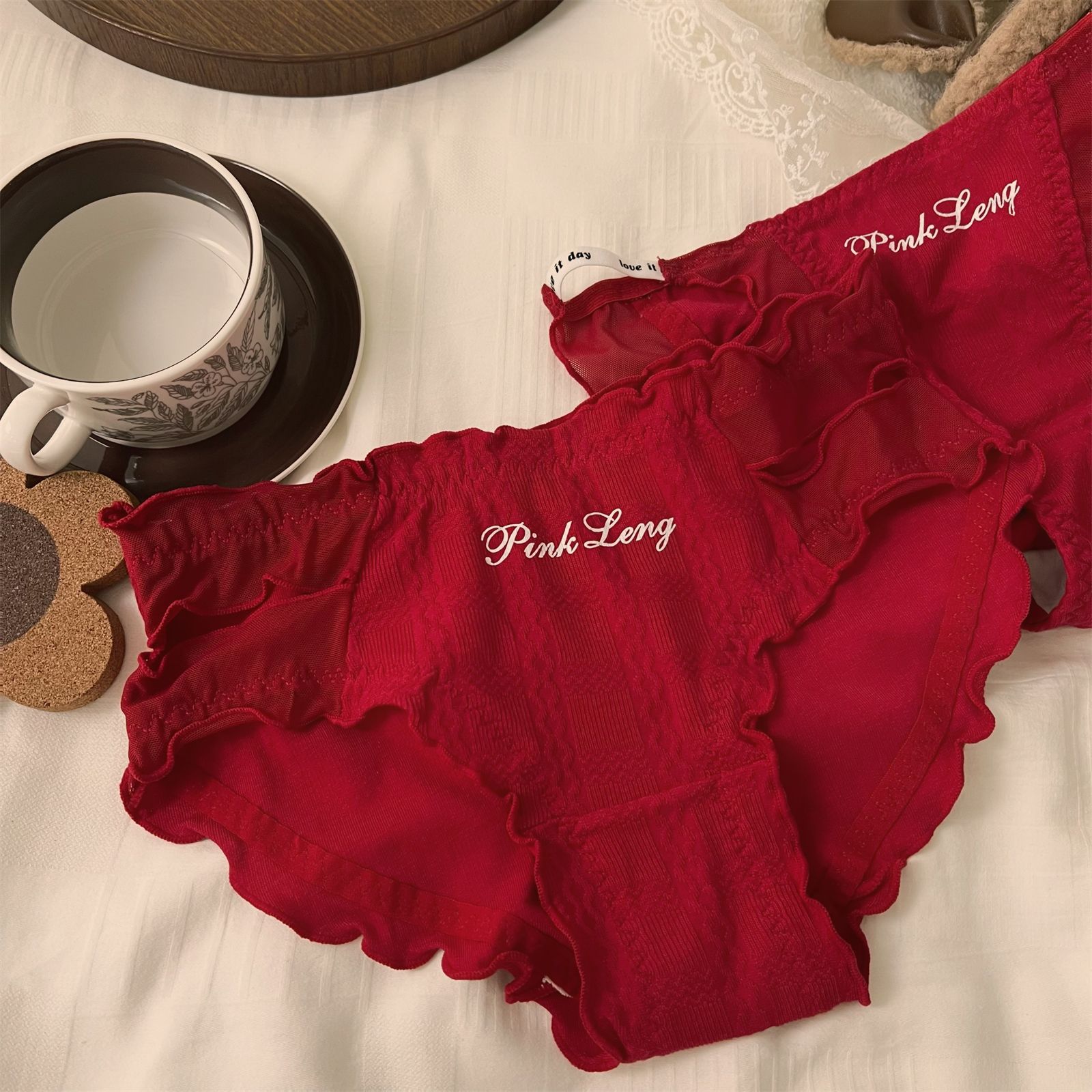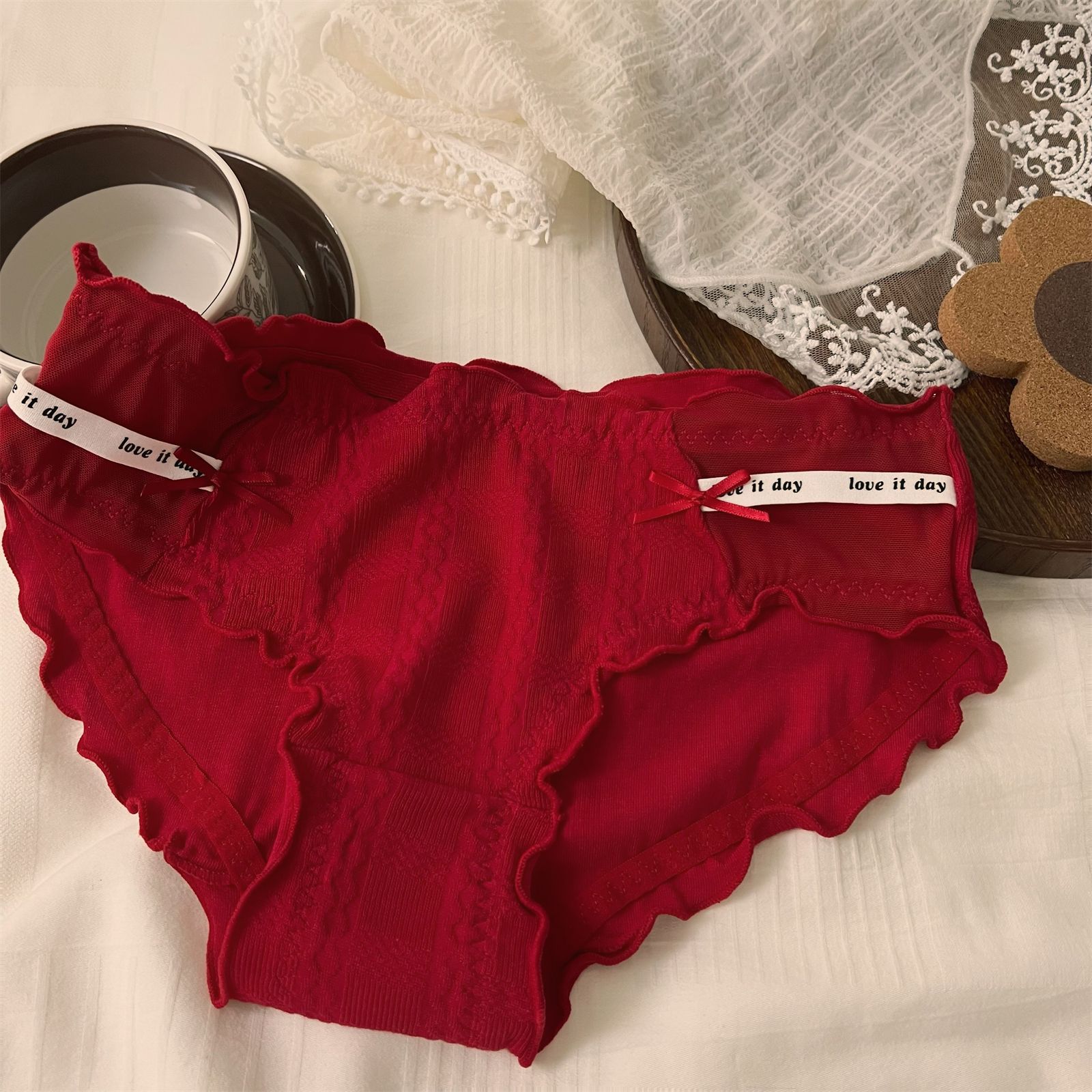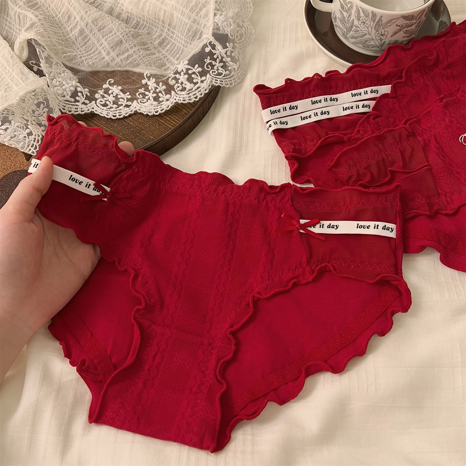 好运加持~纯欲本命年红色内裤女舒适中腰镂空透气女士无痕三角裤