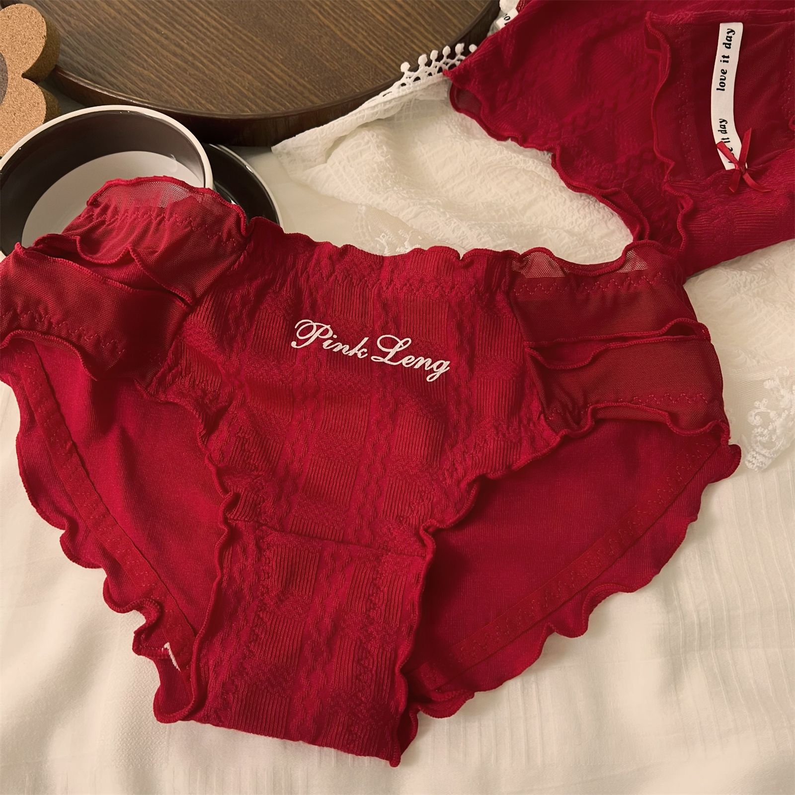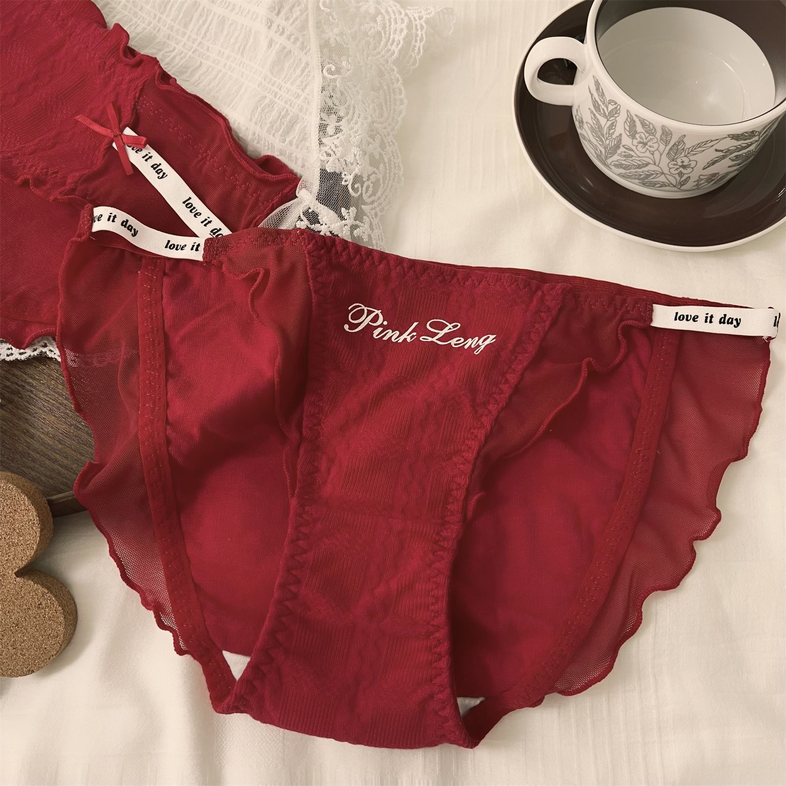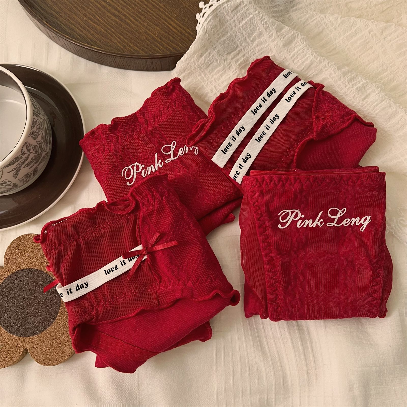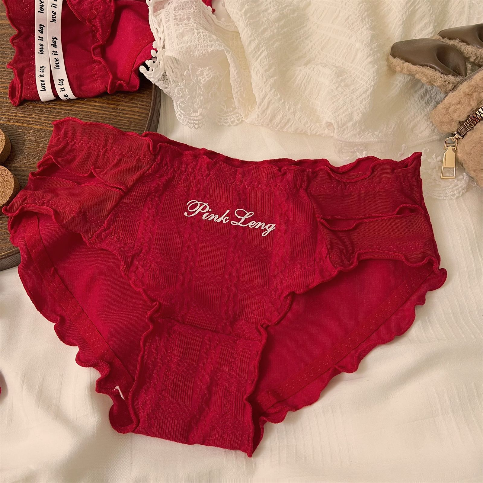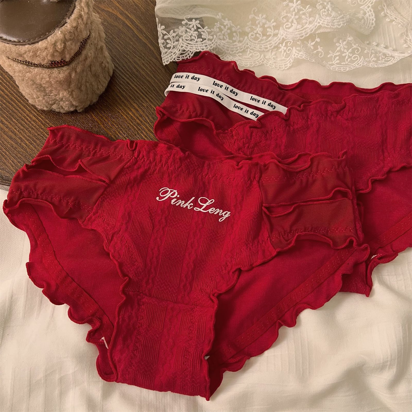 好运加持~纯欲本命年红色内裤女舒适中腰镂空透气女士无痕三角裤
