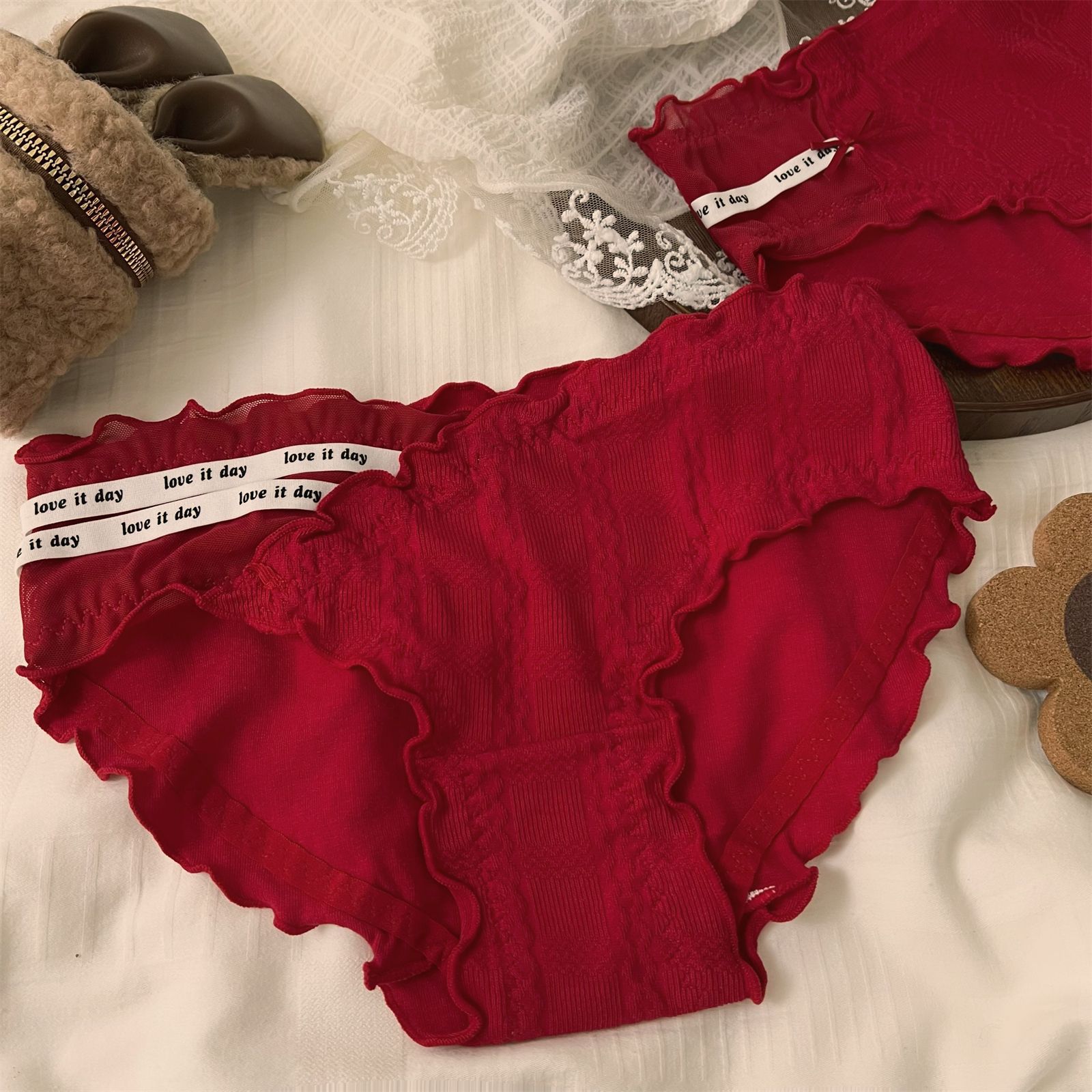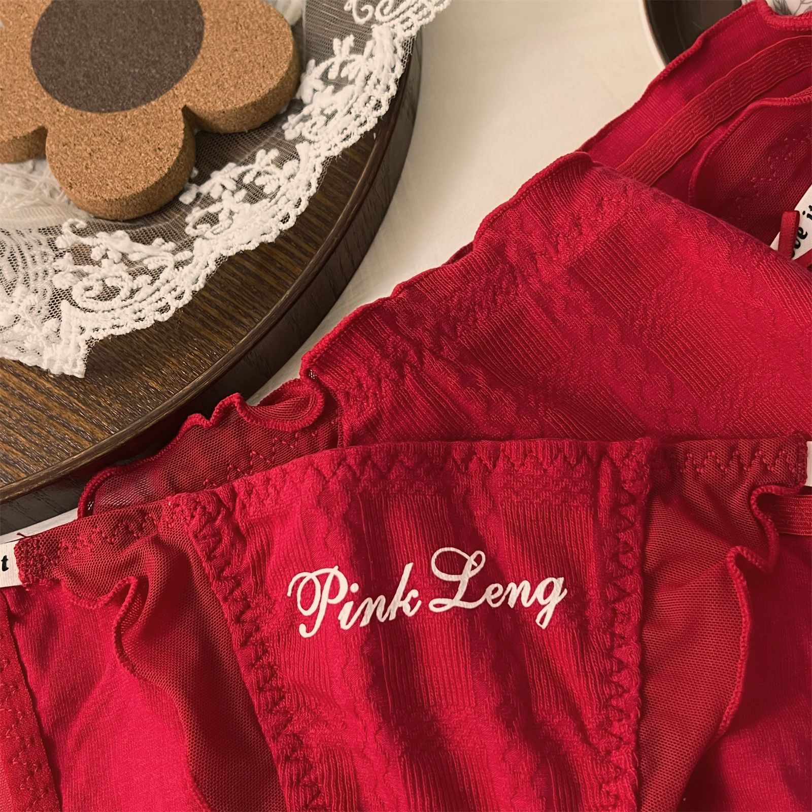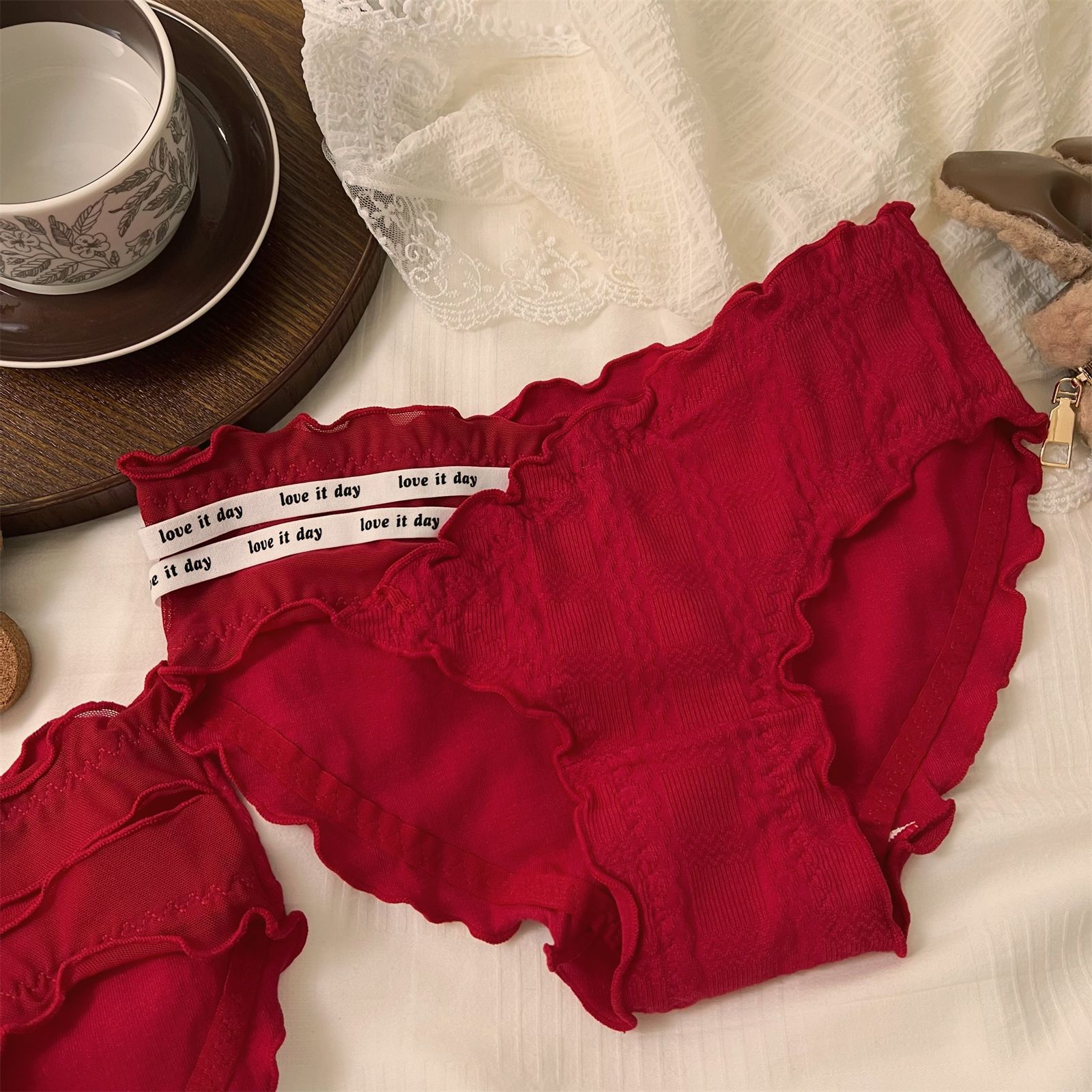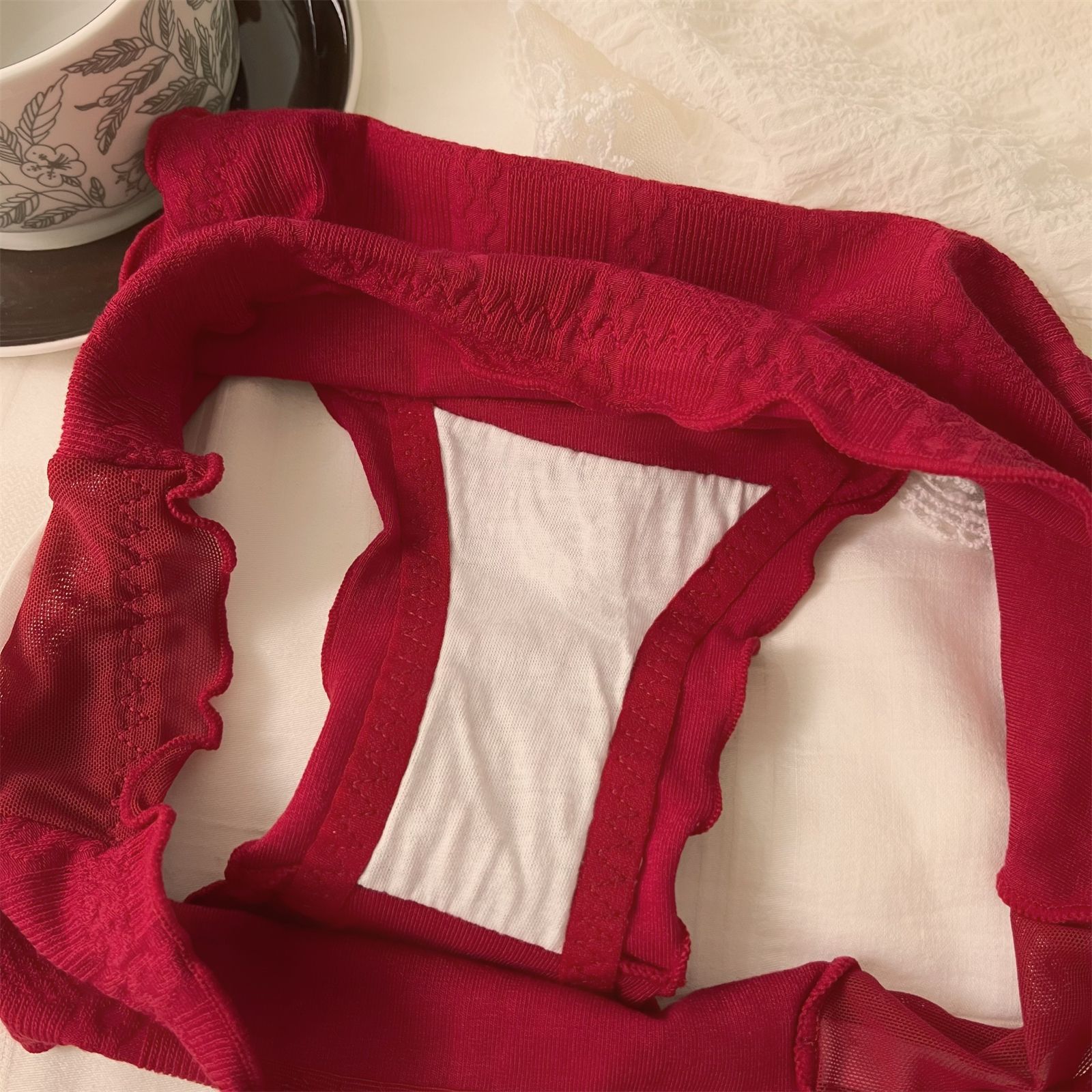 好运加持~纯欲本命年红色内裤女舒适中腰镂空透气女士无痕三角裤