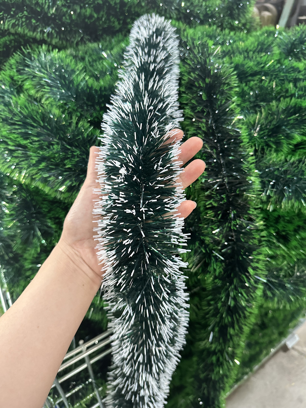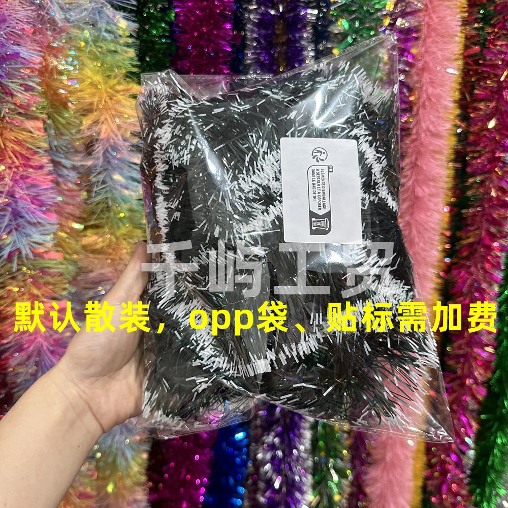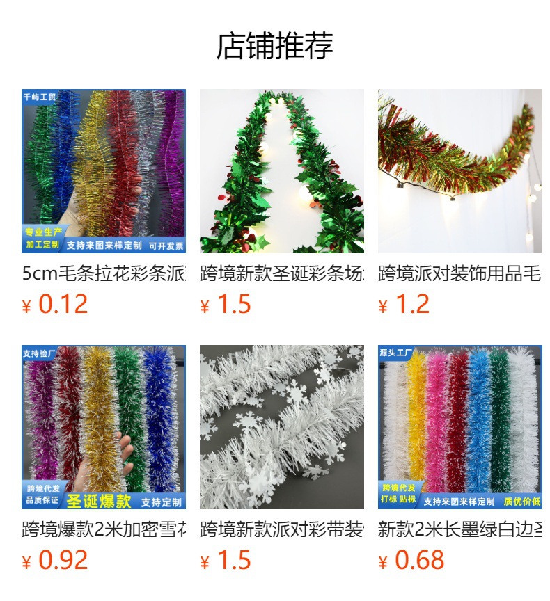 跨境2米加密墨绿白边绿边圣诞装饰雪花毛条场景布置彩条拉花彩带
