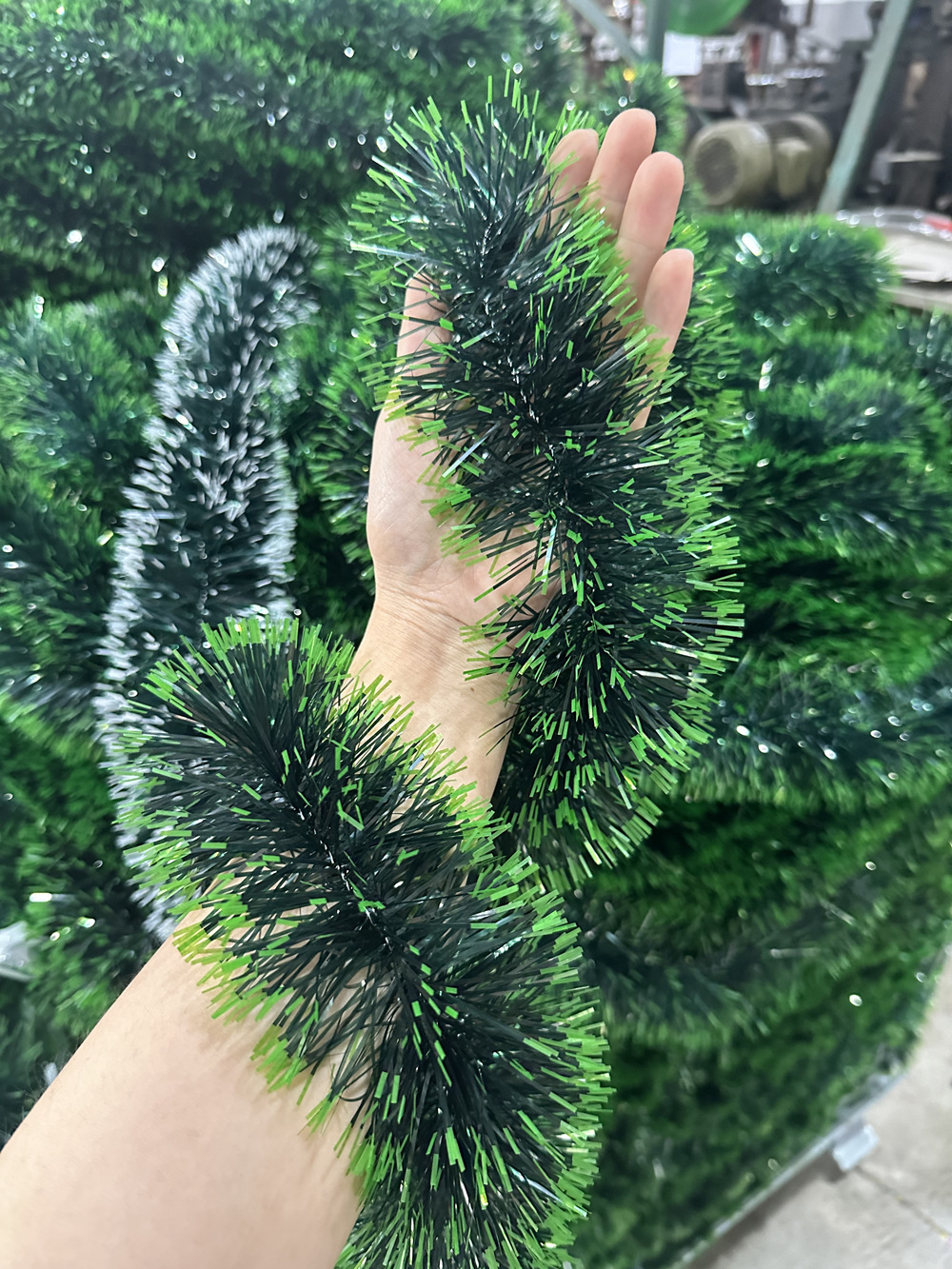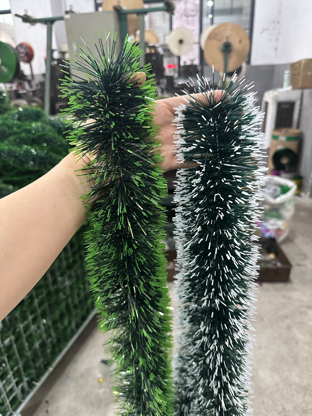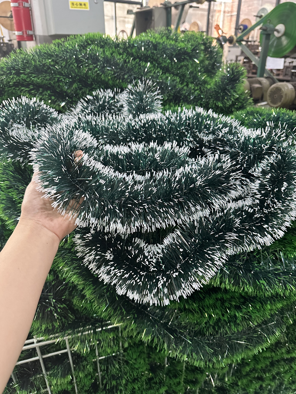 跨境2米加密墨绿白边绿边圣诞装饰雪花毛条场景布置彩条拉花彩带