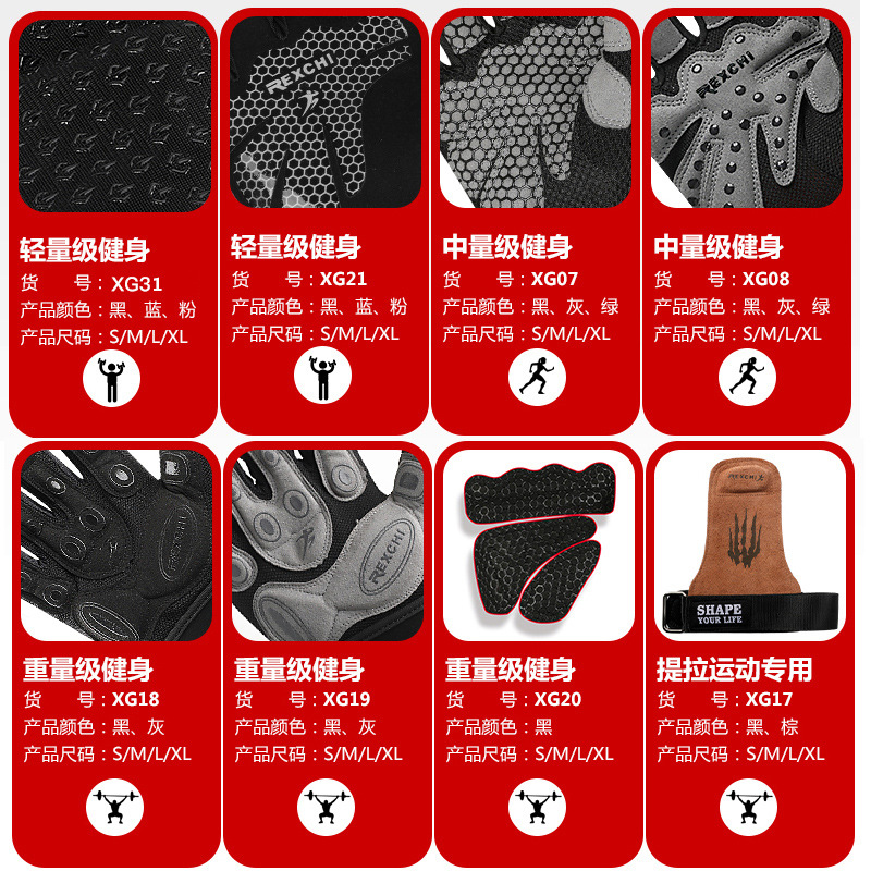 健身手套男女半指提拉健身房哑铃锻炼运动骑行防滑透气护手腕XG07