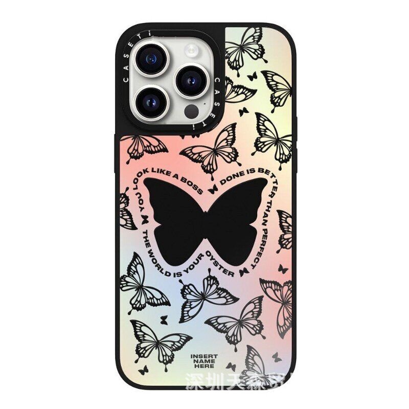 潮牌励志英文蝴蝶适用iphone16Pro苹果15pro max手机壳13防摔镜面