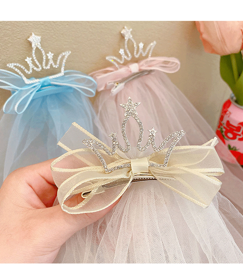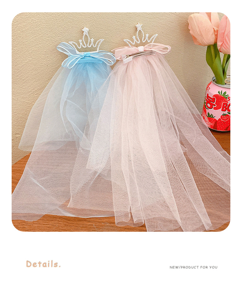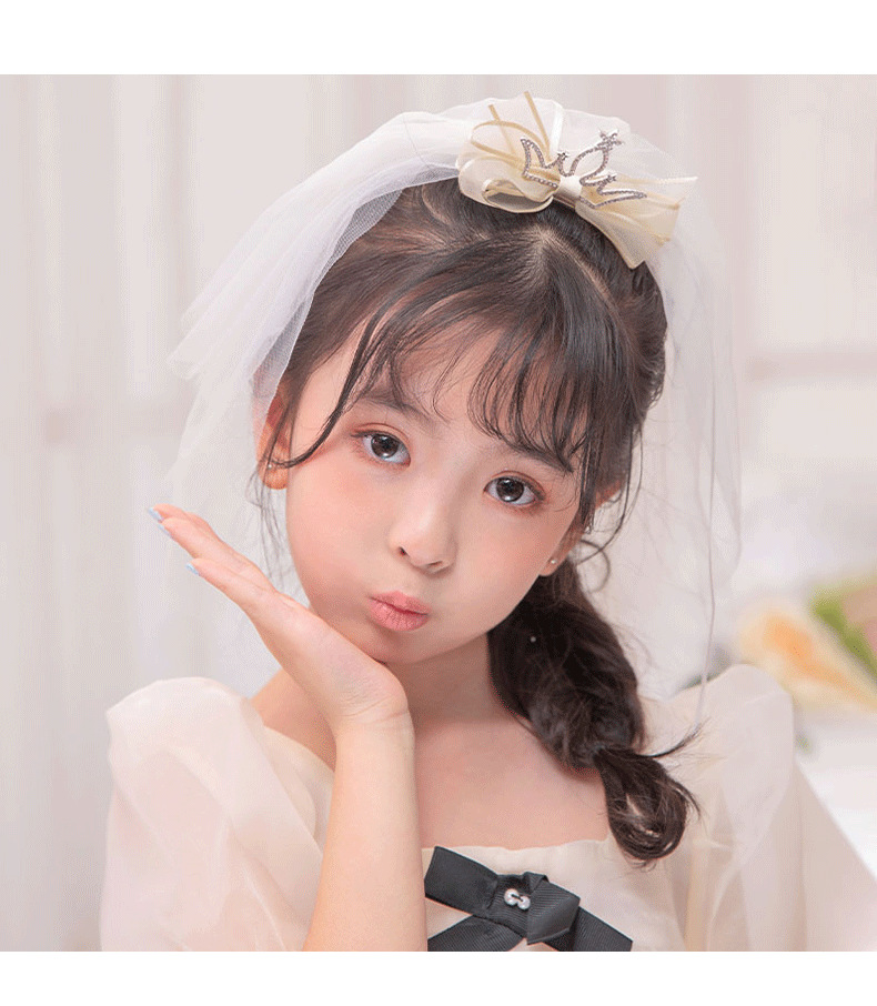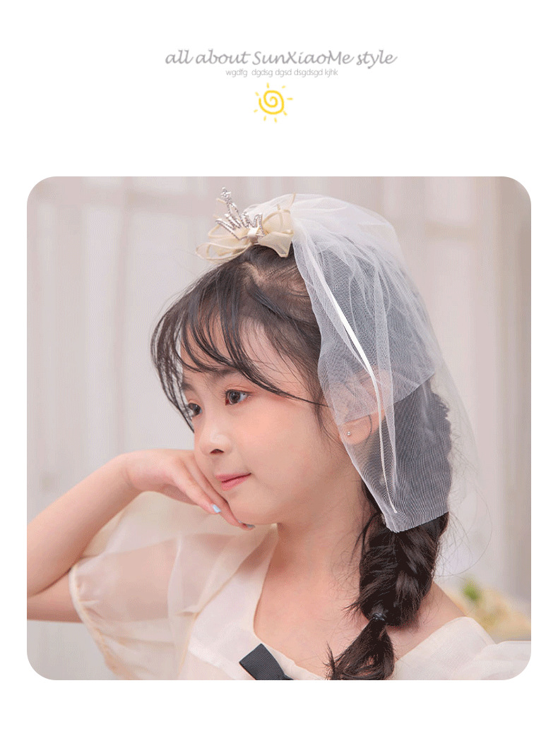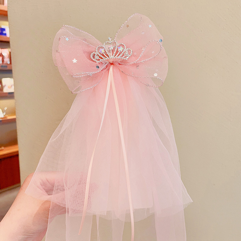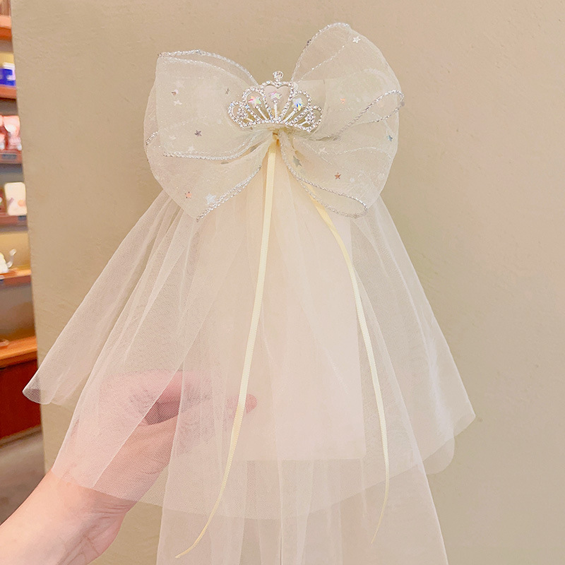 公主飘纱皇冠发夹儿童可爱韩版头纱发饰女孩超仙立体亮钻拍照头饰