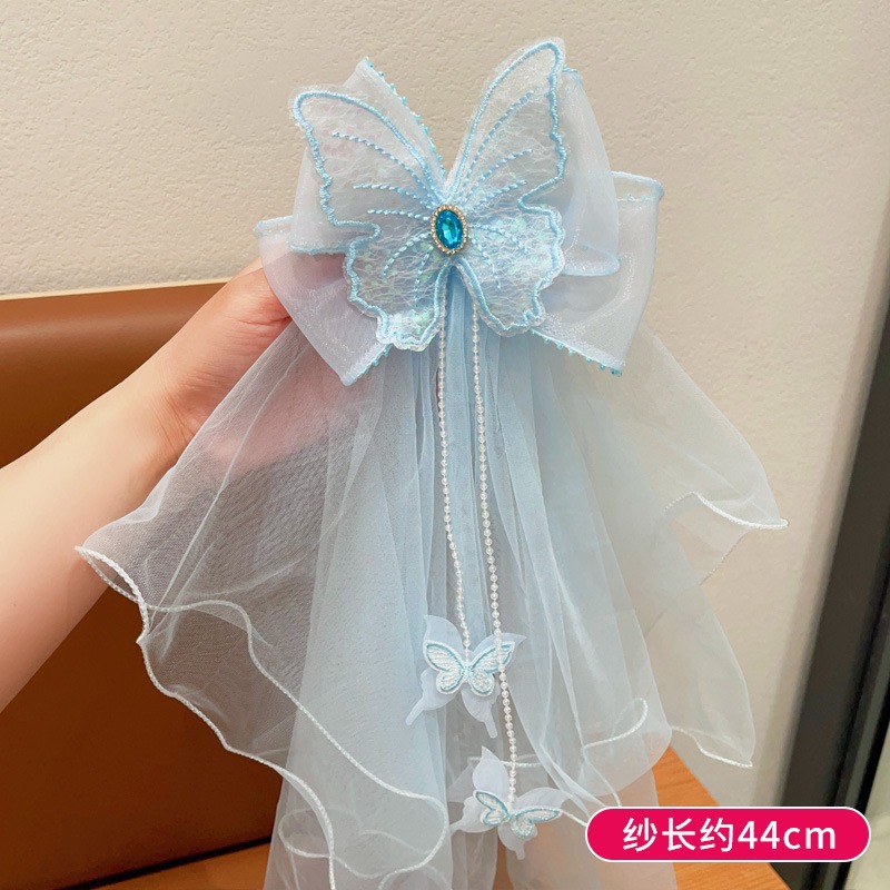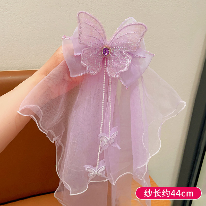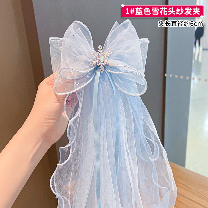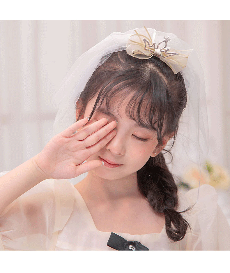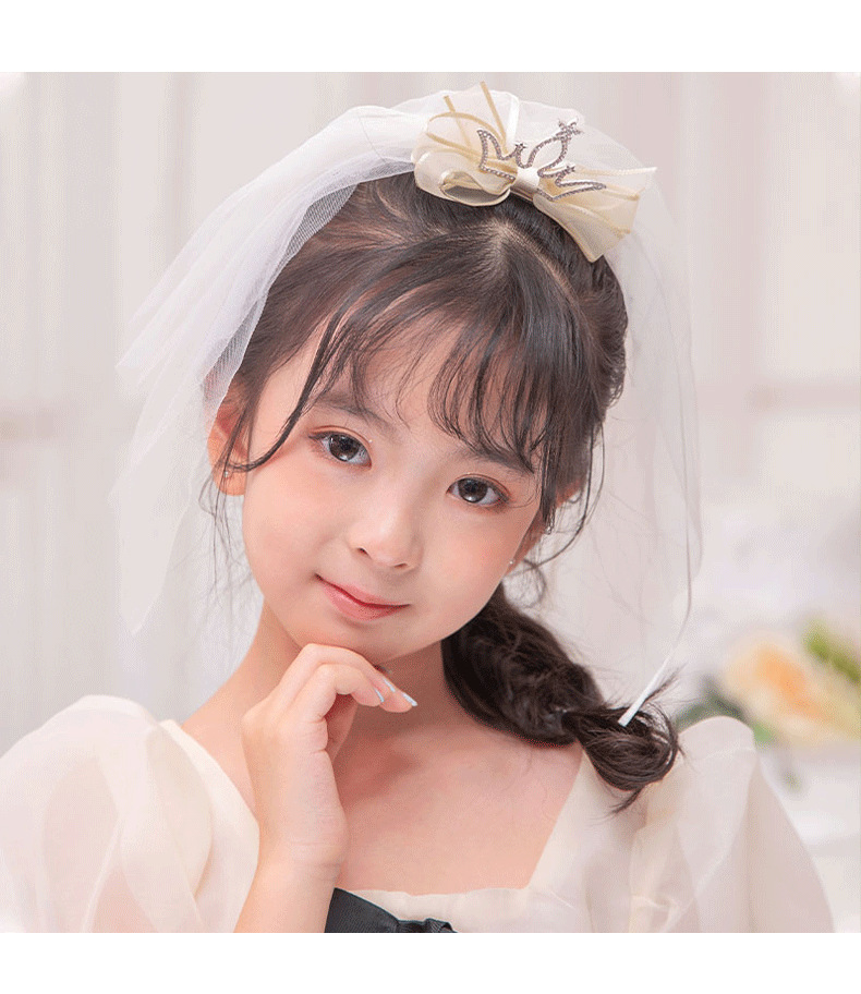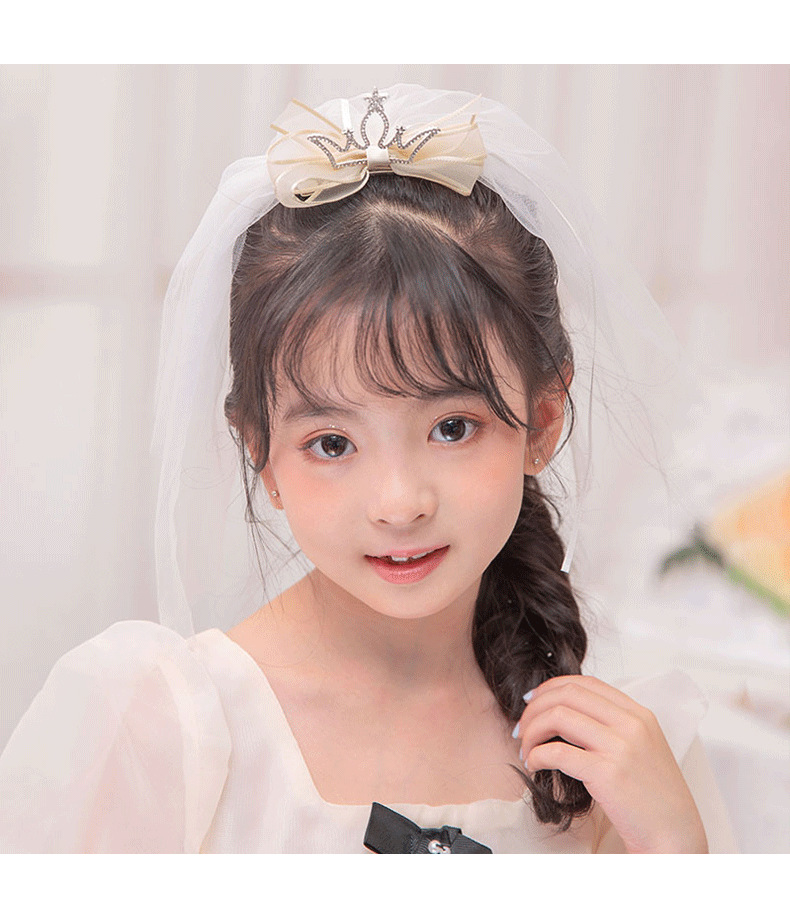 公主飘纱皇冠发夹儿童可爱韩版头纱发饰女孩超仙立体亮钻拍照头饰