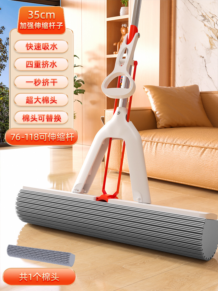 吸水拖把家用胶棉拖把懒人拖布海绵免手洗对折式一拖净舒棉拖把头