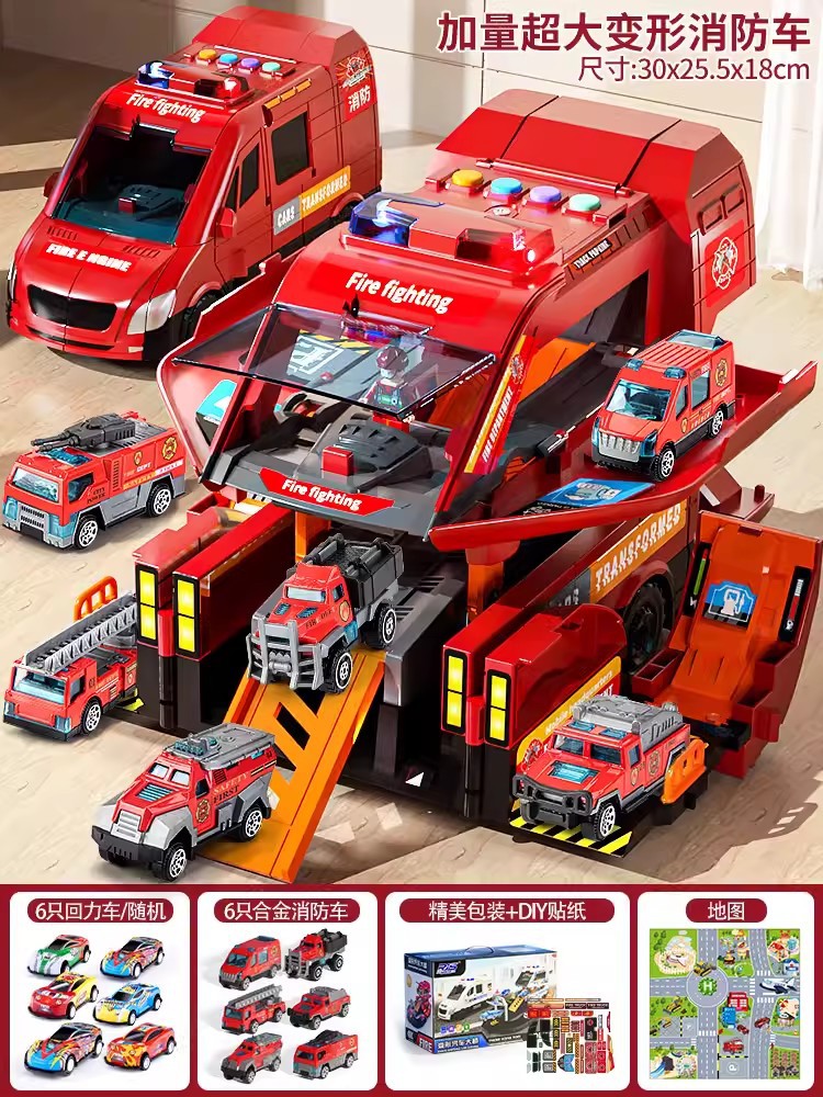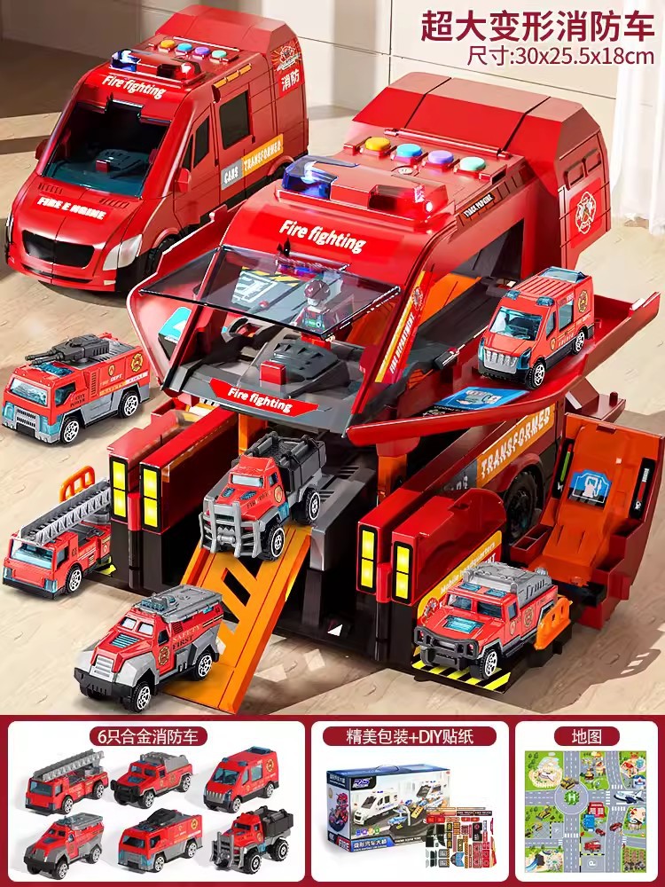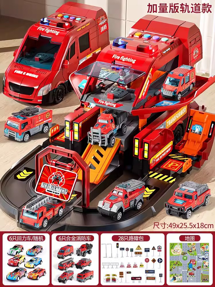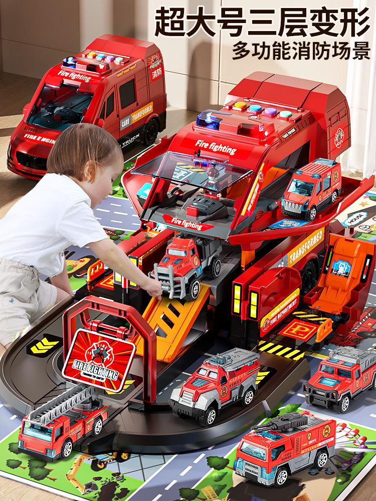 儿童大号消防玩具车变形4一6岁3小汽车男孩停车场轨道8警察7益智5