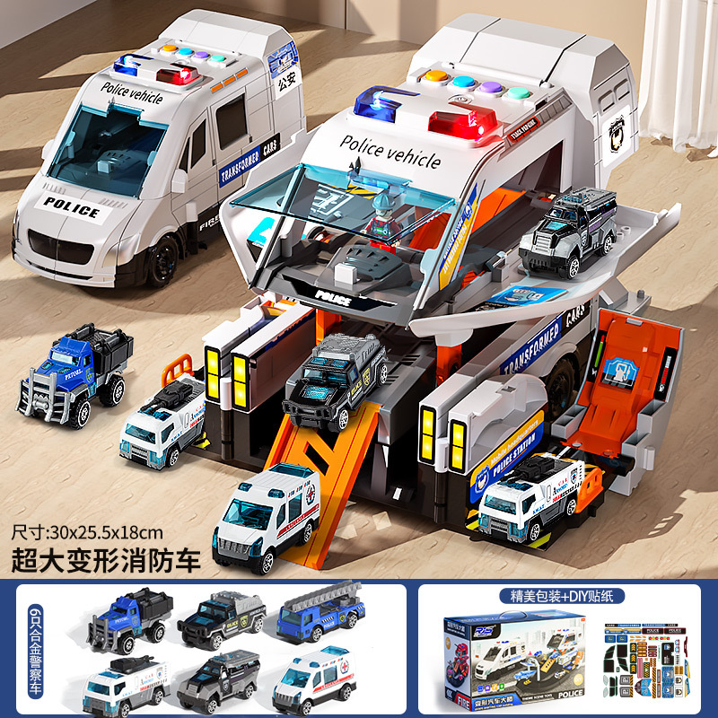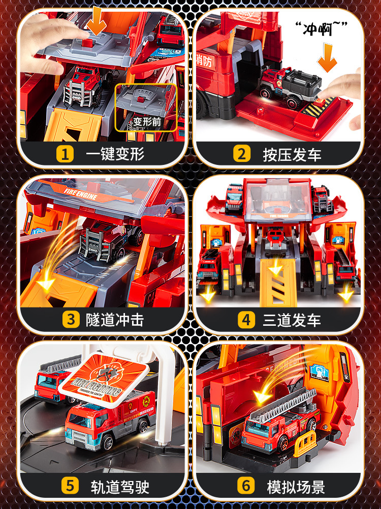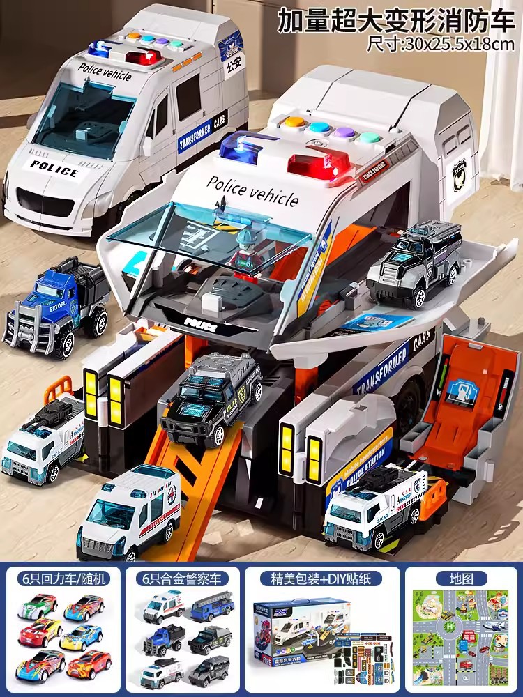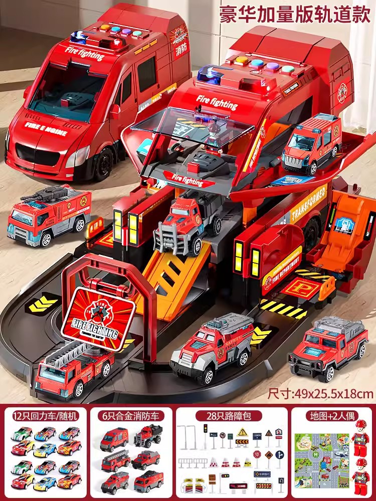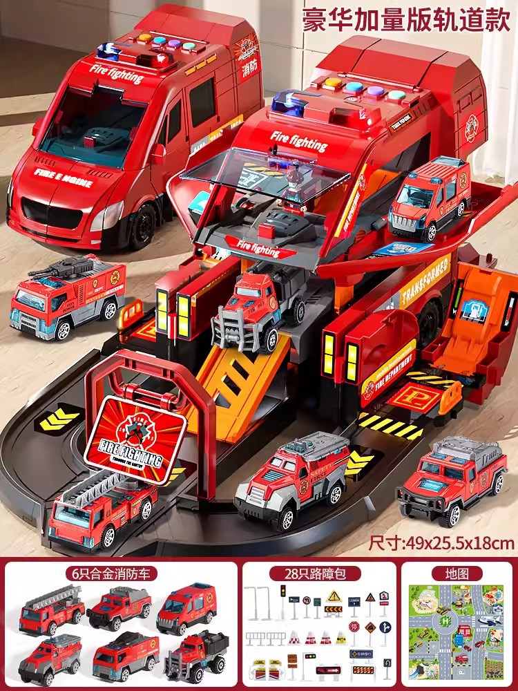 儿童大号消防玩具车变形4一6岁3小汽车男孩停车场轨道8警察7益智5