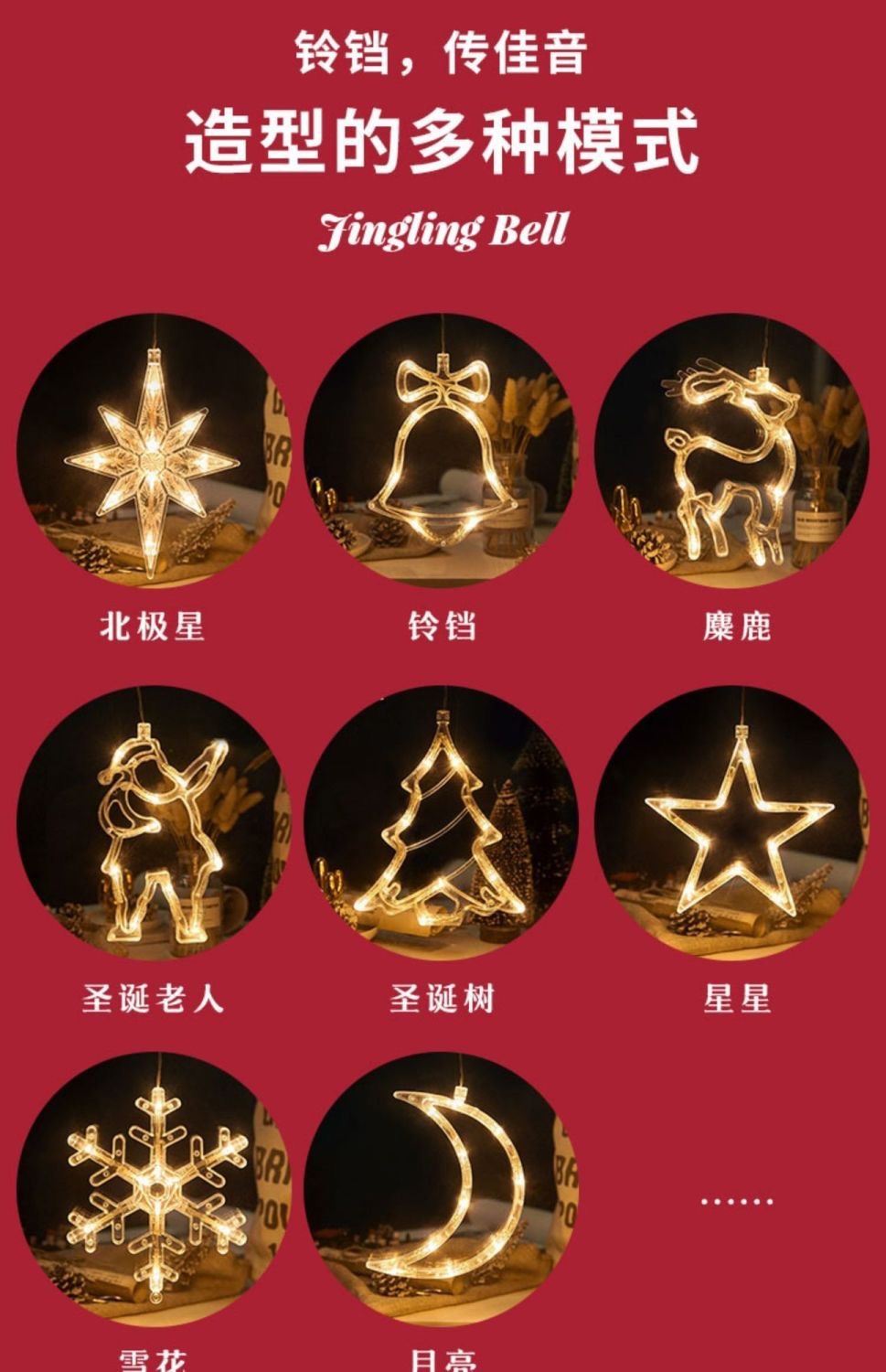 led圣诞吸盘灯圣诞装饰灯节日氛围窗贴房间卧室节日橱窗装饰挂灯