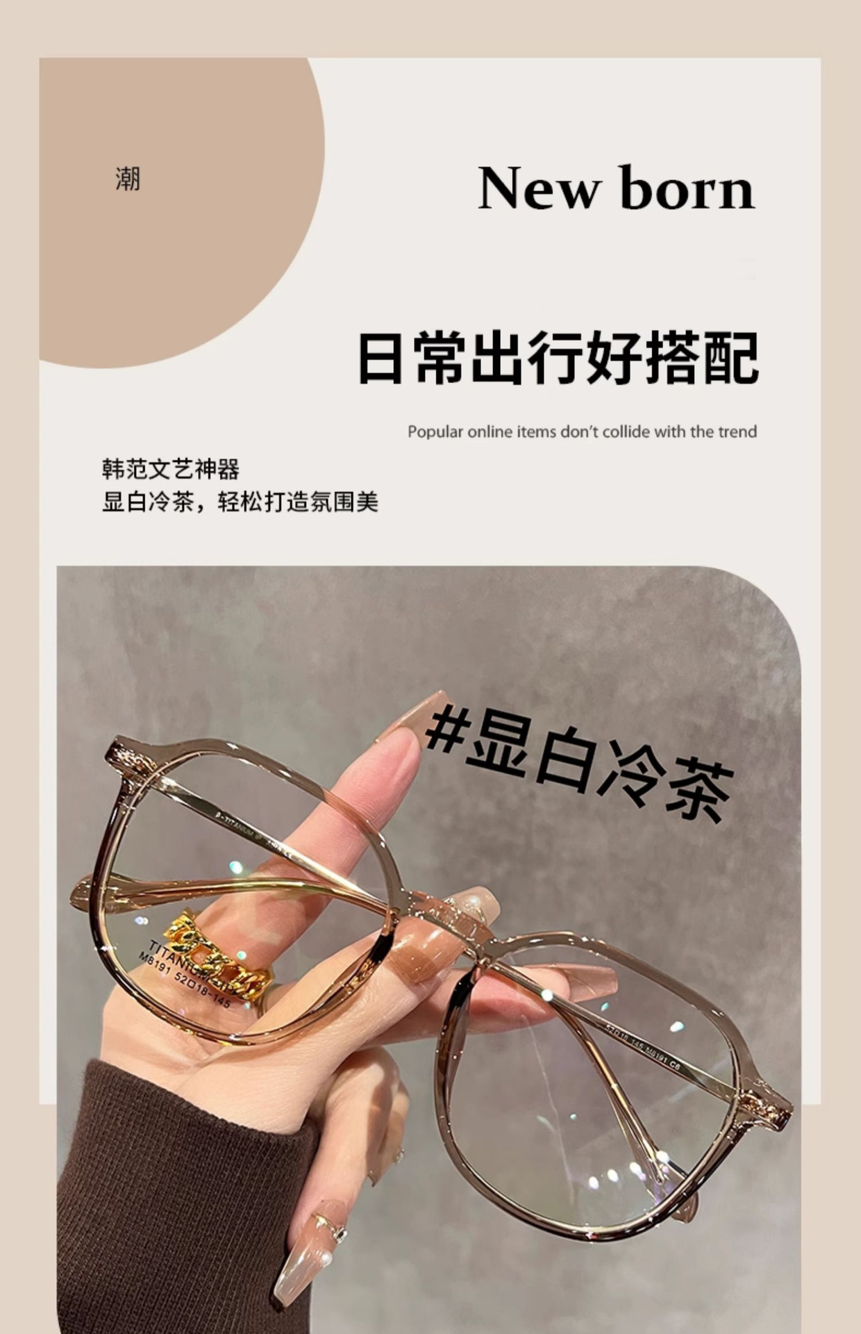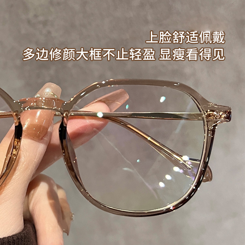 新款超轻TR大框冷茶色丹阳近视眼镜女可配度数素颜多边形光学眼睛