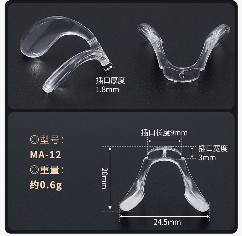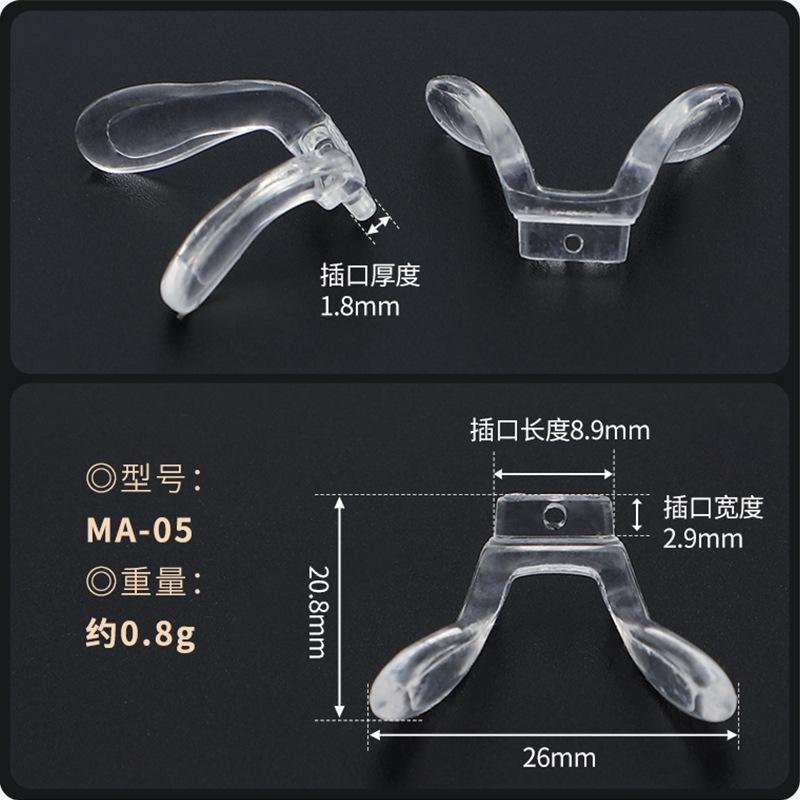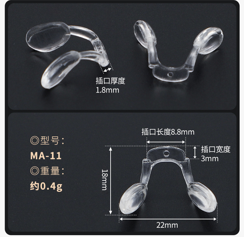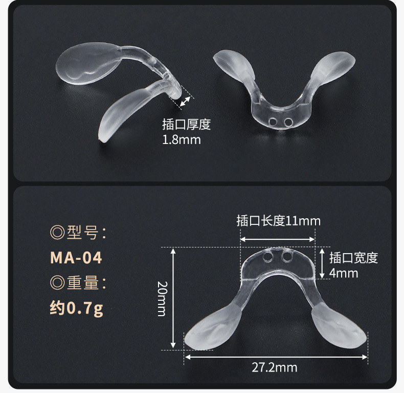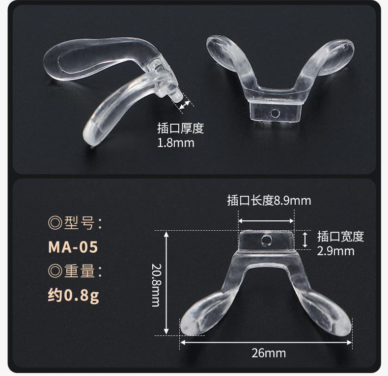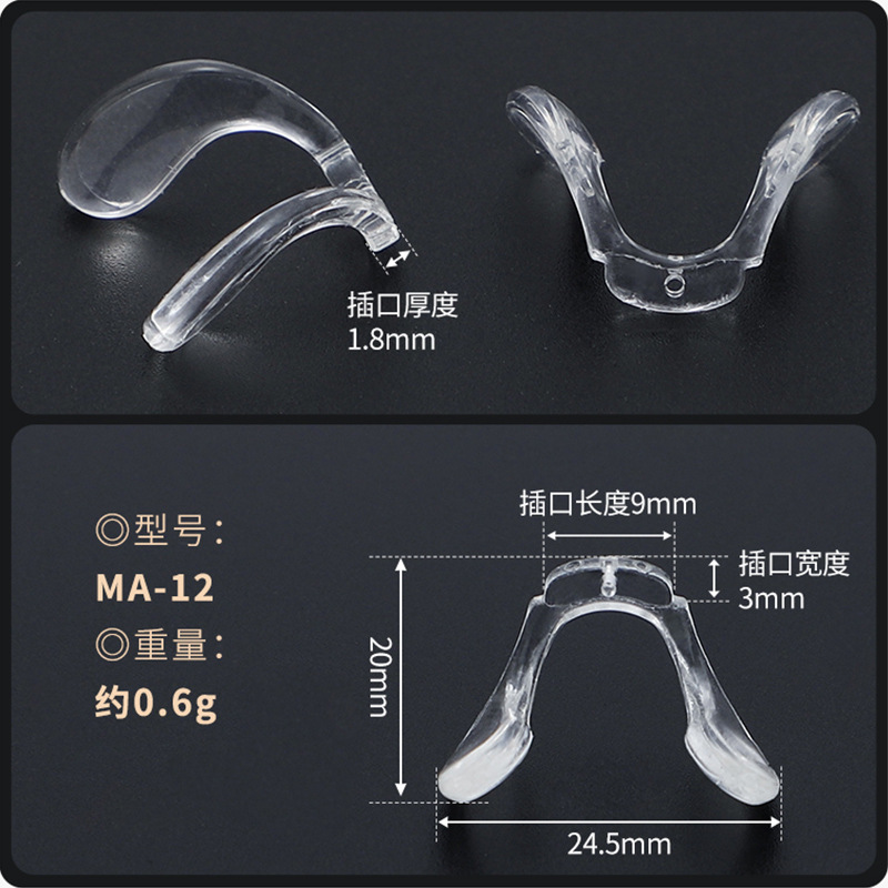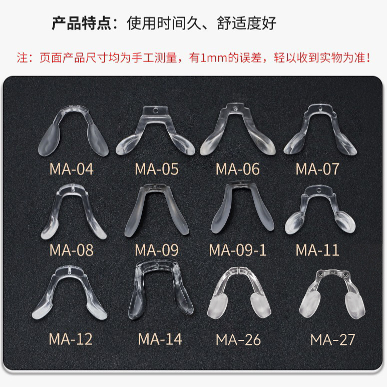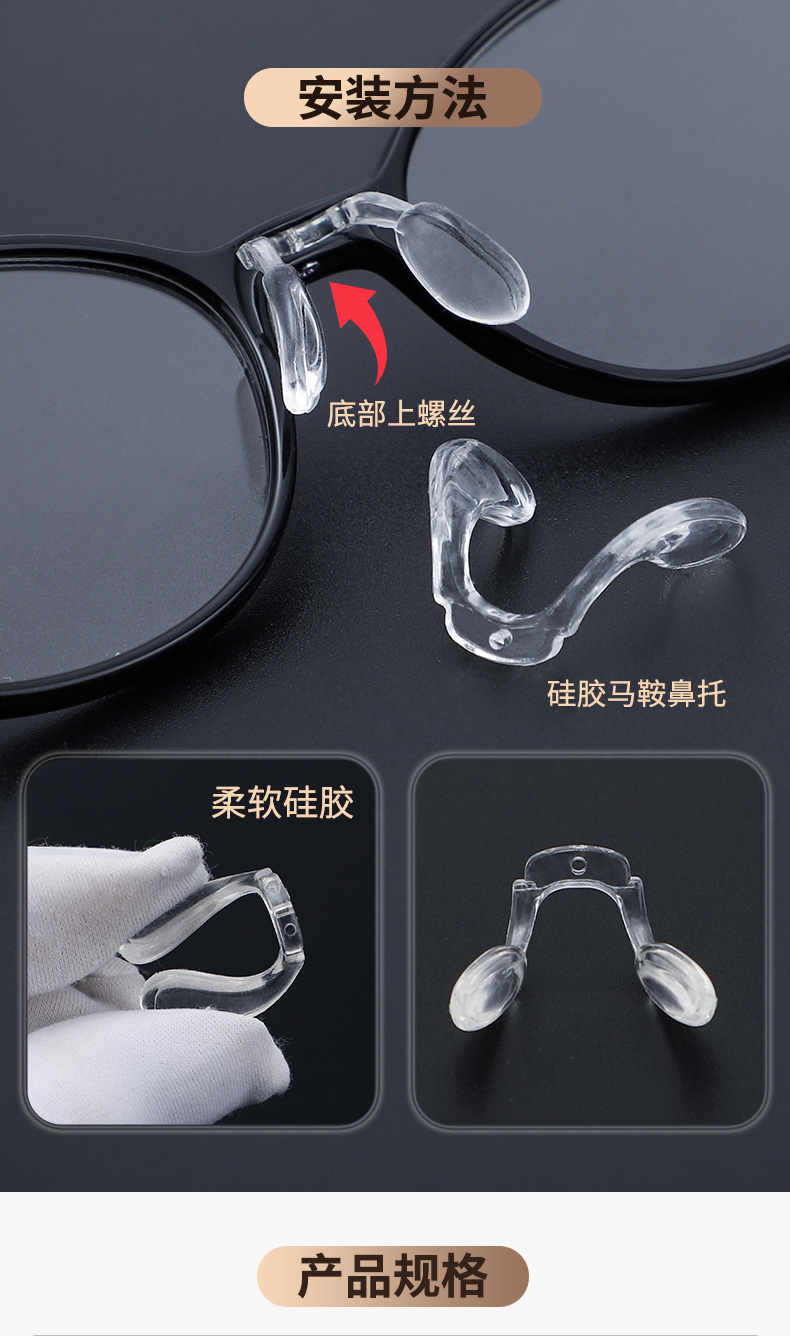 马鞍鼻托一体式眼镜鼻托硅胶塑料金属芯鼻托螺丝锁式鼻托透明马鞍