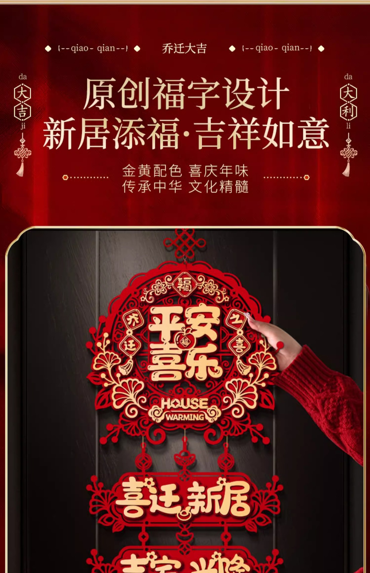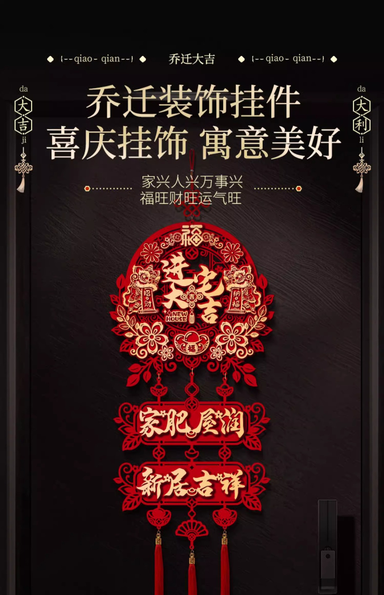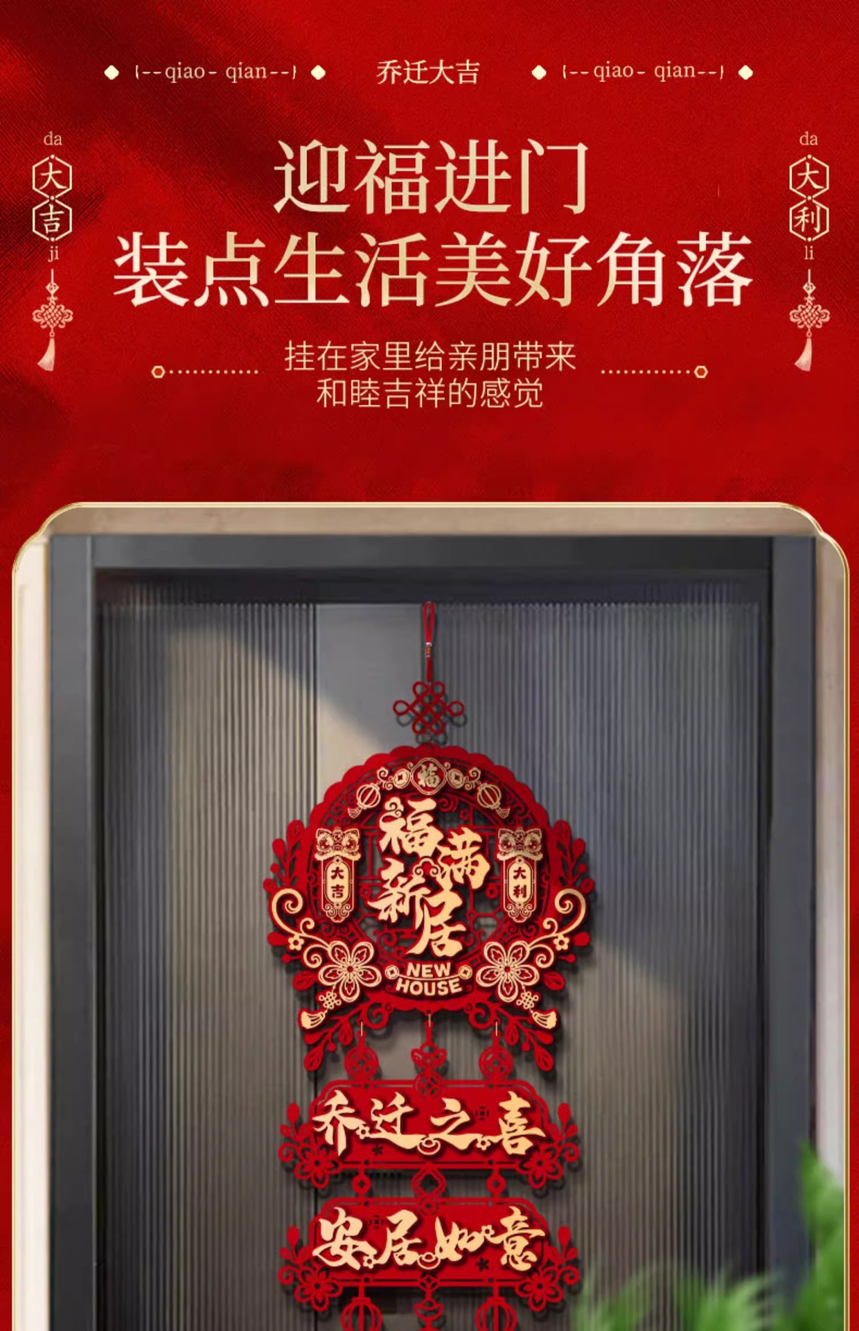 乔迁之喜装饰新家门贴布置新房搬家入宅仪式用品新居福字挂件批发