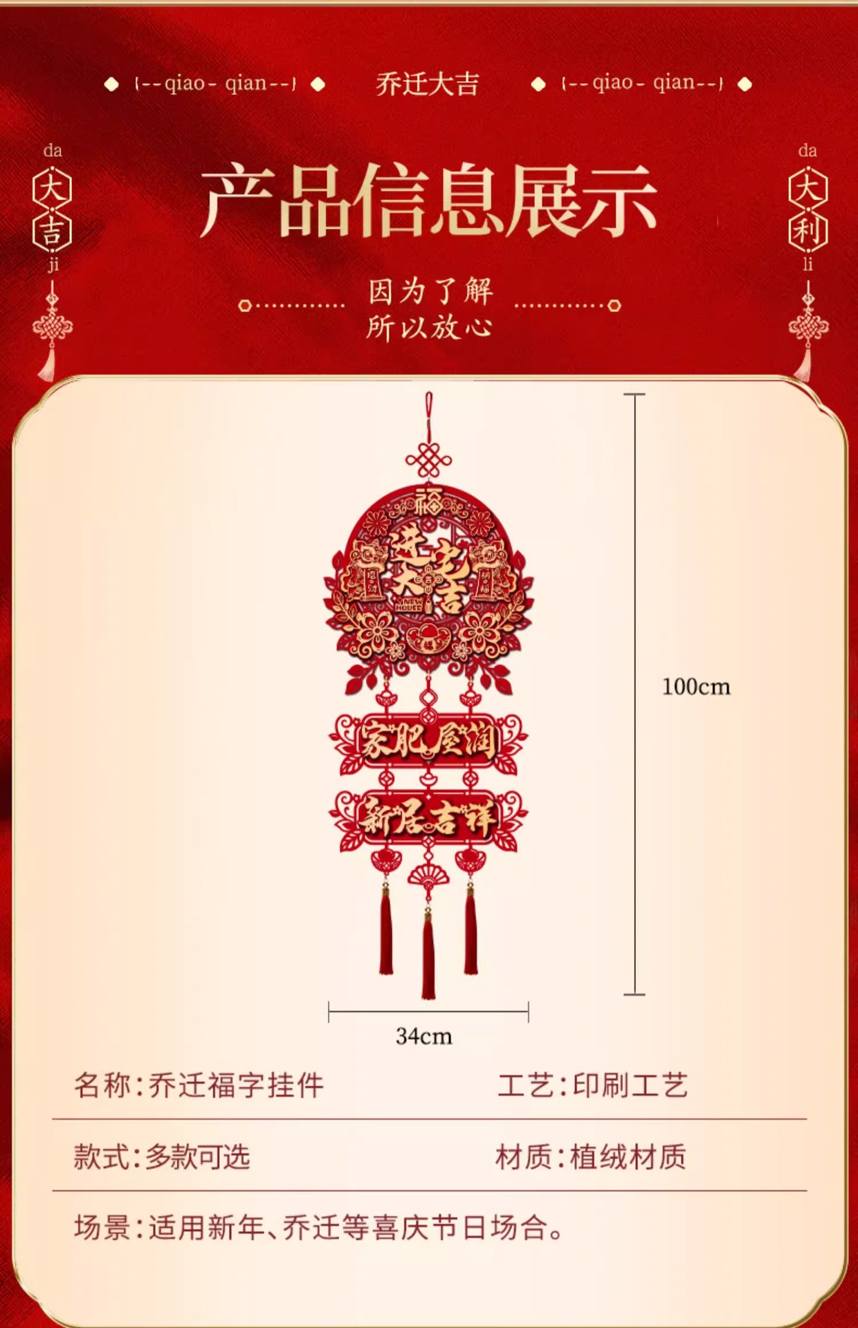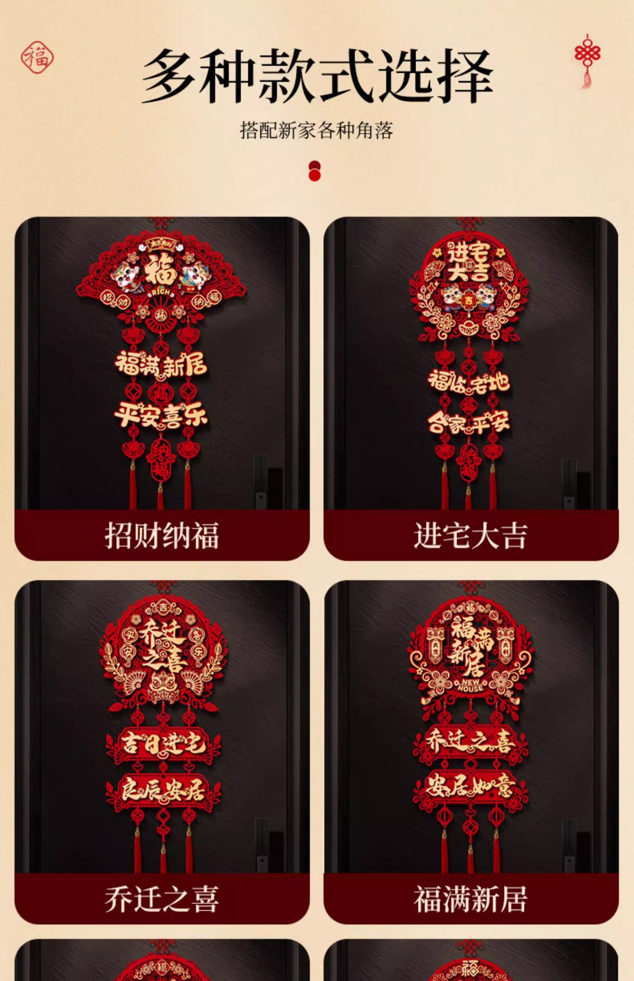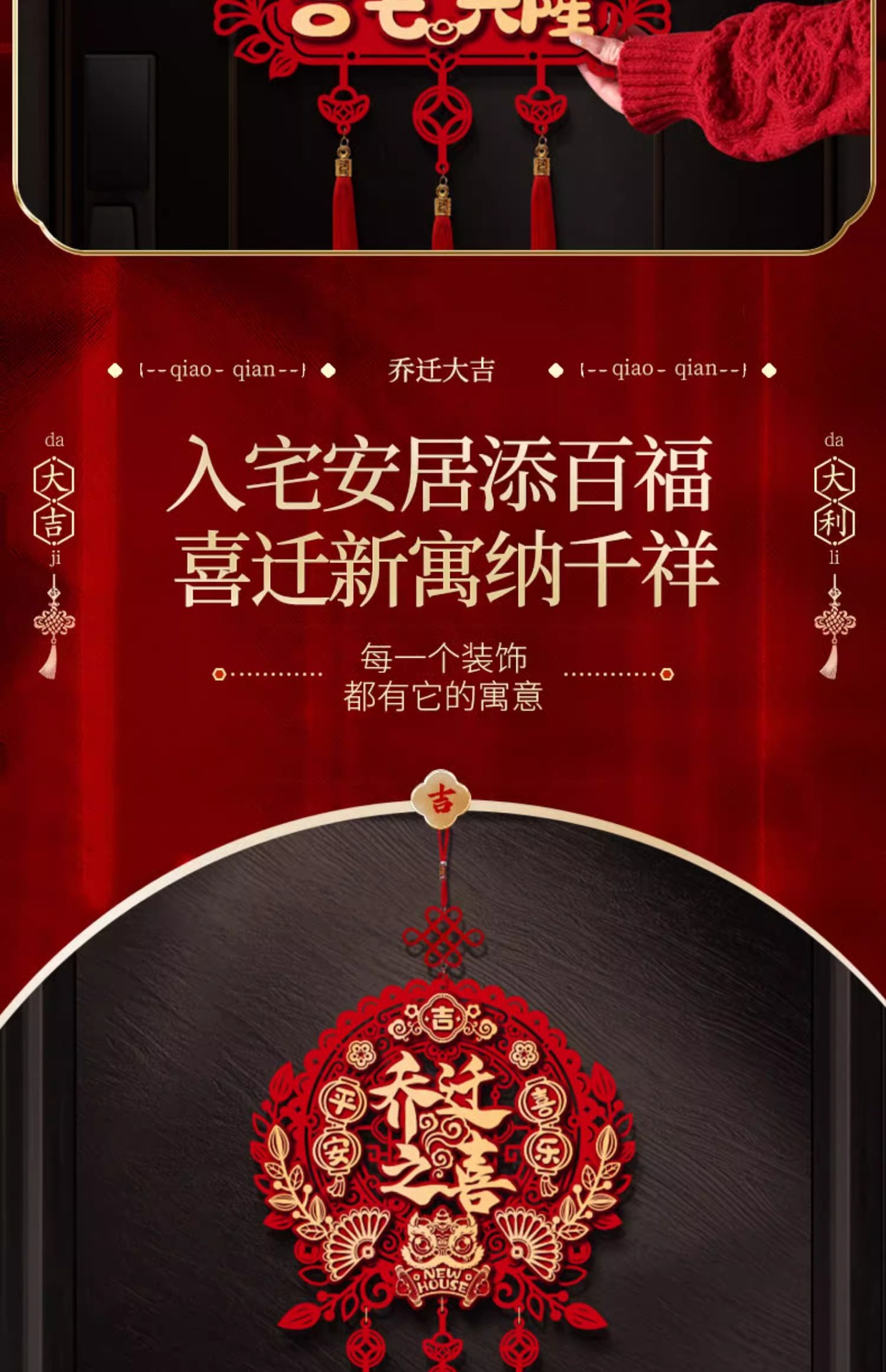 乔迁之喜装饰新家门贴布置新房搬家入宅仪式用品新居福字挂件批发