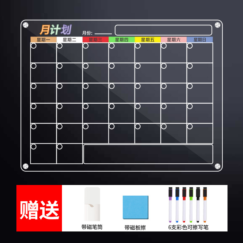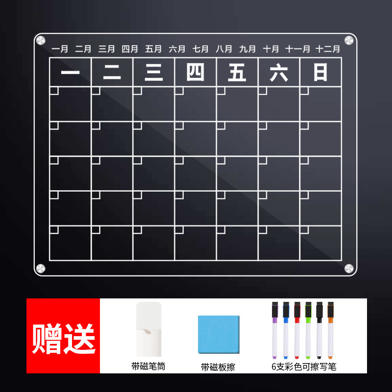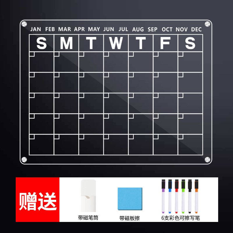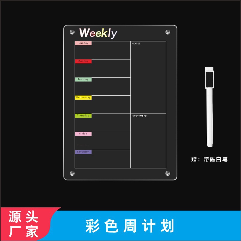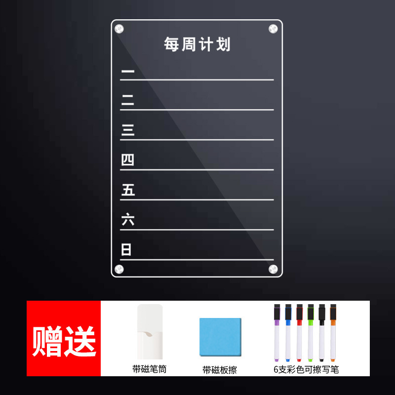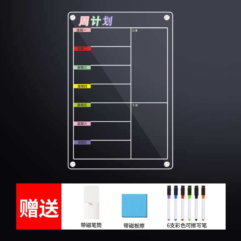 磁性亚克力干擦板透明双层冰箱板展示板书写板磁吸冰箱贴留言板