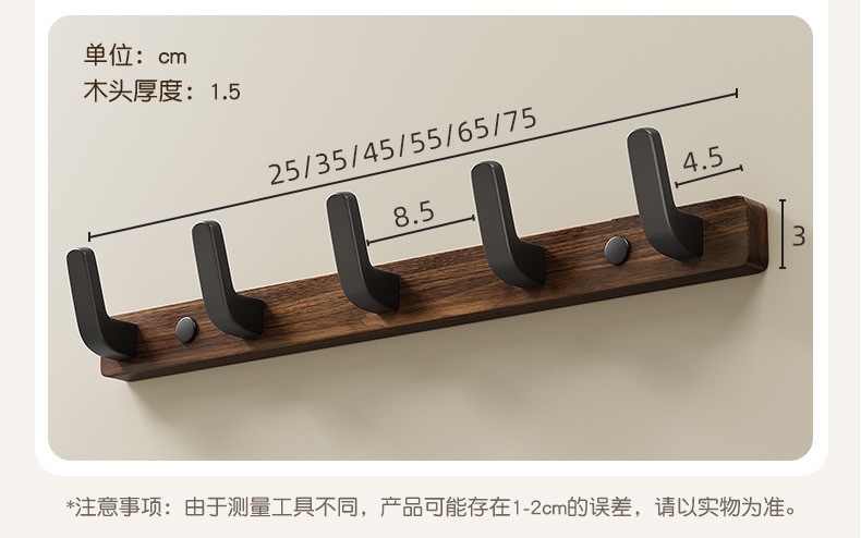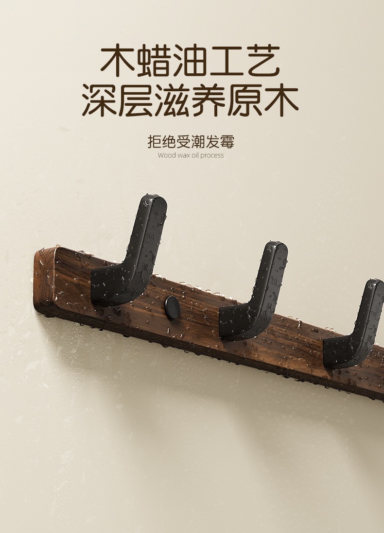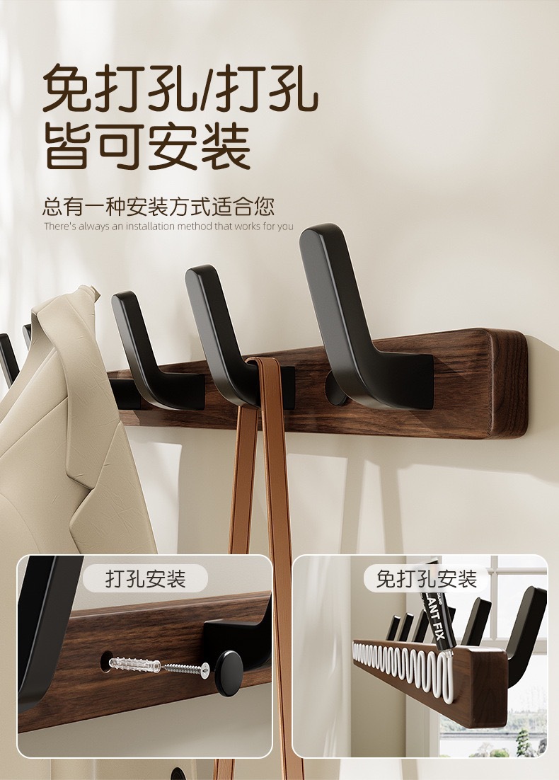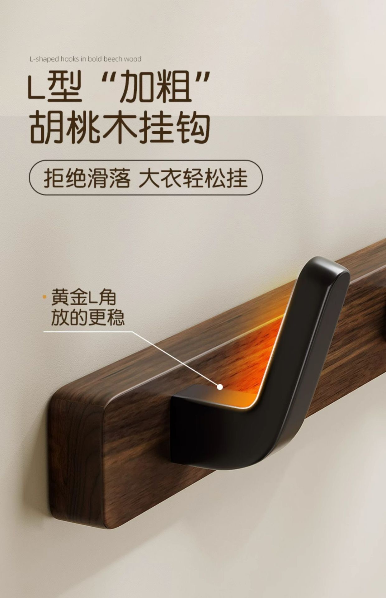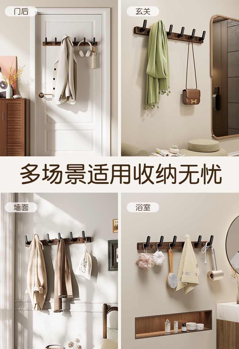 胡桃木挂衣钩高级入户门后挂钩实木免打孔进门玄关墙上挂衣架壁挂