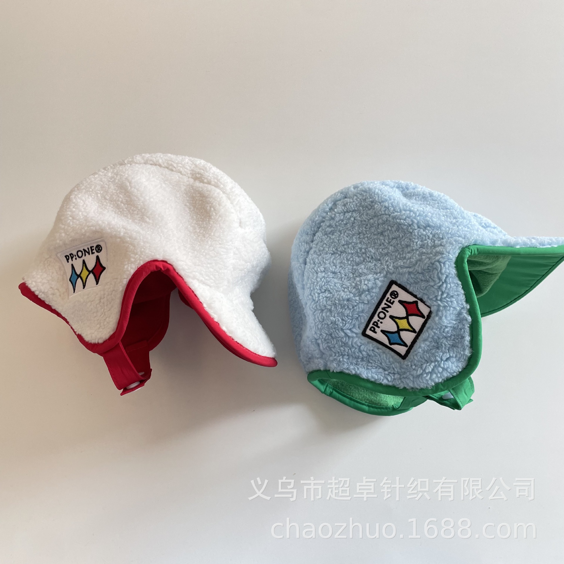 帅气冬帽儿童亲子羊羔毛撞色包边雷锋帽护耳鸭舌帽