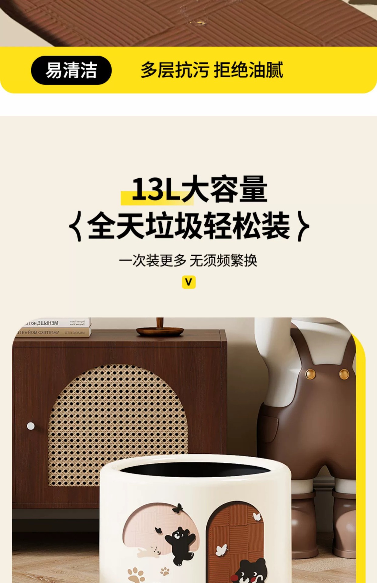 家用卧室客厅防臭带盖垃圾桶大号加厚卡通个性垃圾篓厕所按压纸篓
