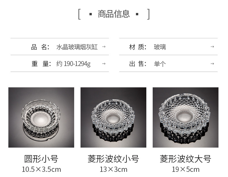 时尚烟灰缸大号烟缸创意个性潮流烟灰缸卧室客厅酒店水晶玻璃烟缸