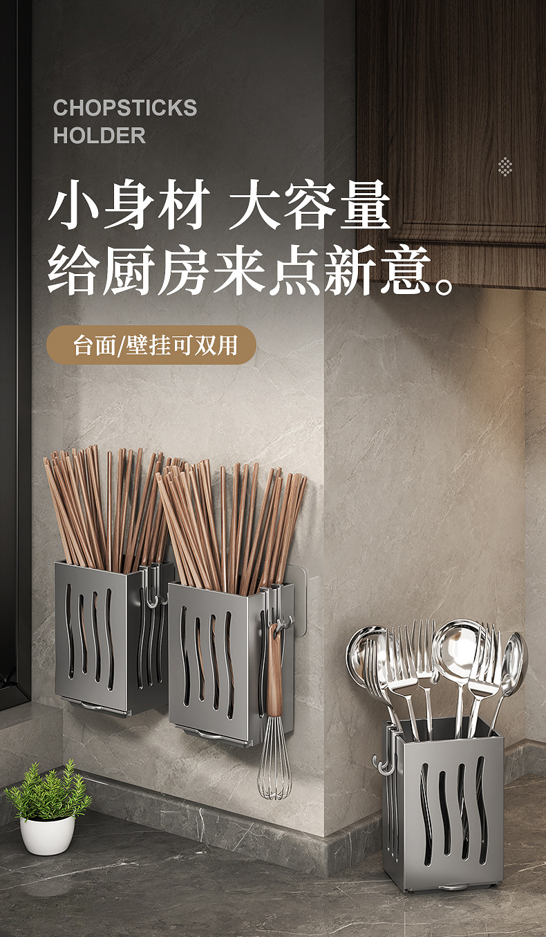 筷子收纳盒筷子笼壁挂式筷笼家用沥水勺子厨房筷子筒筷子篓收纳架