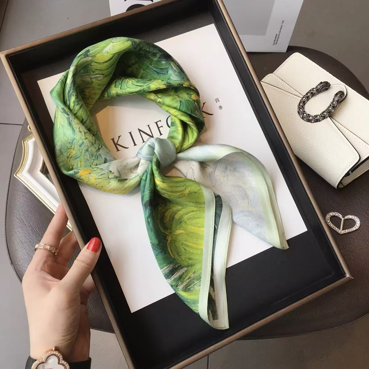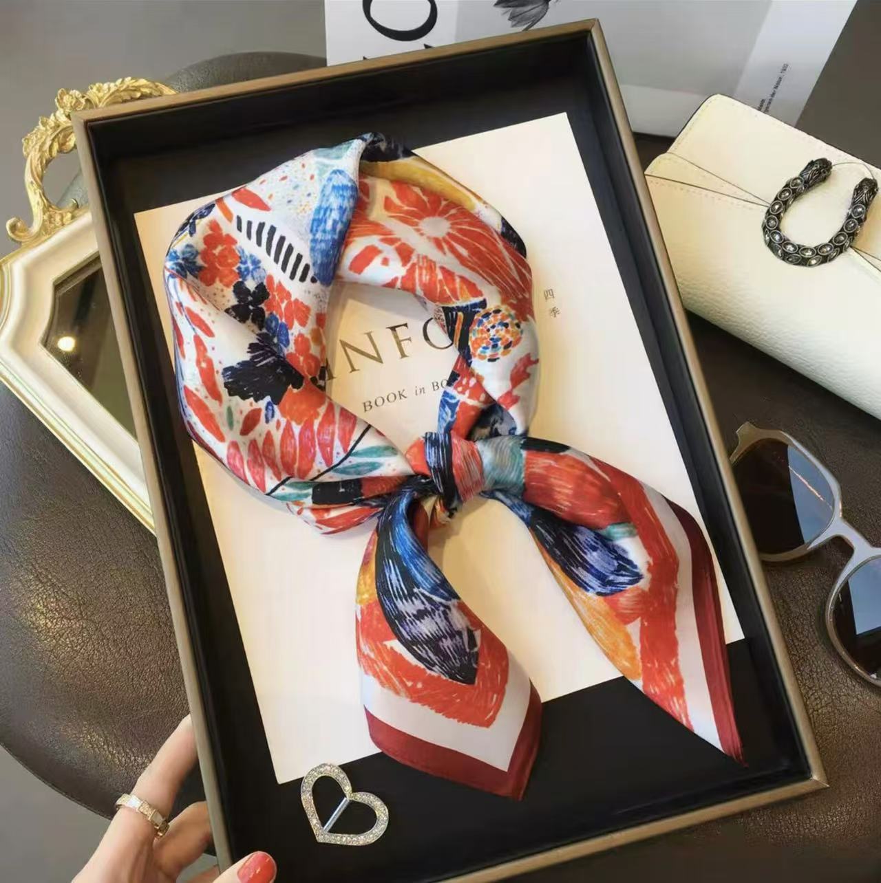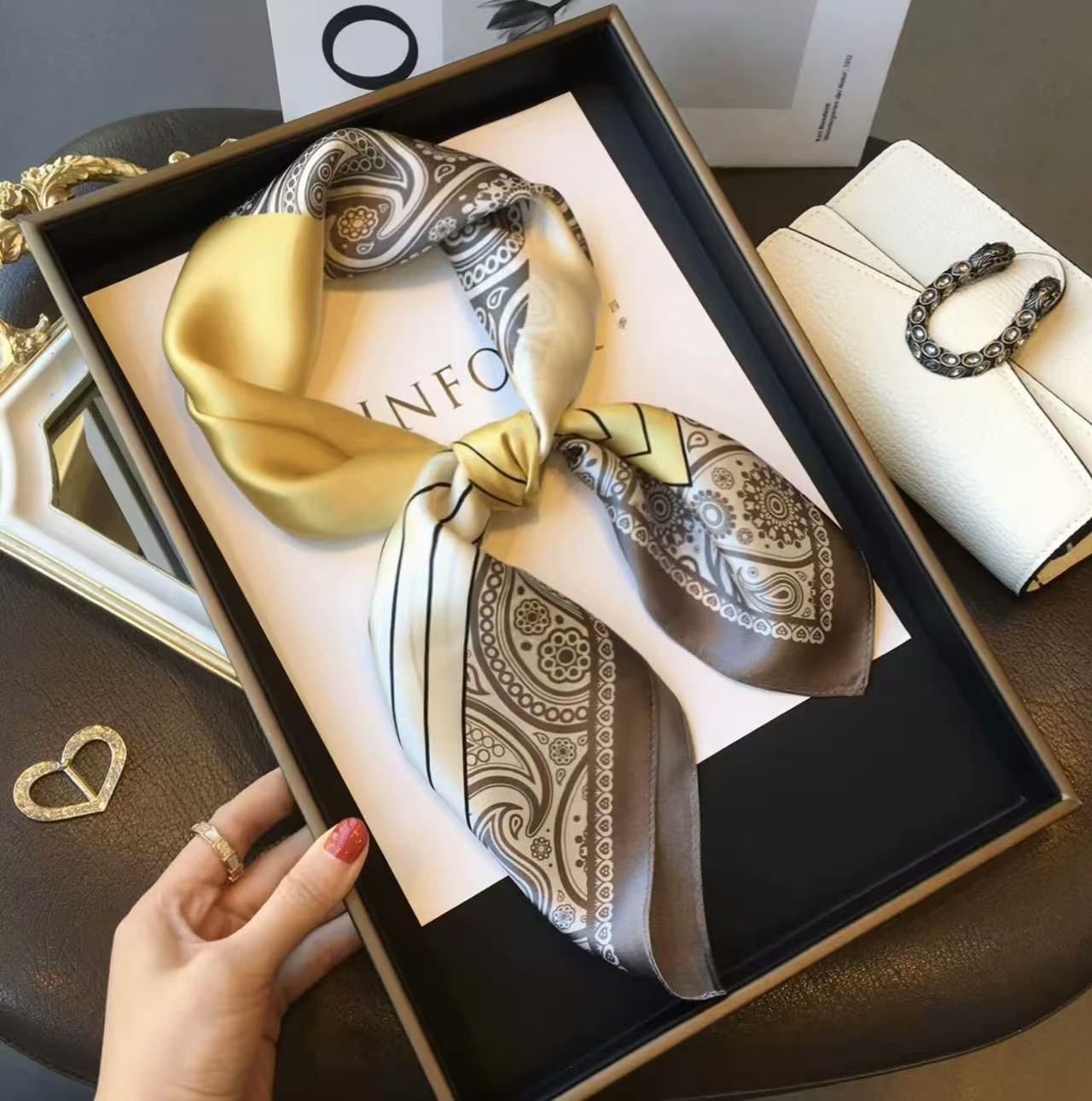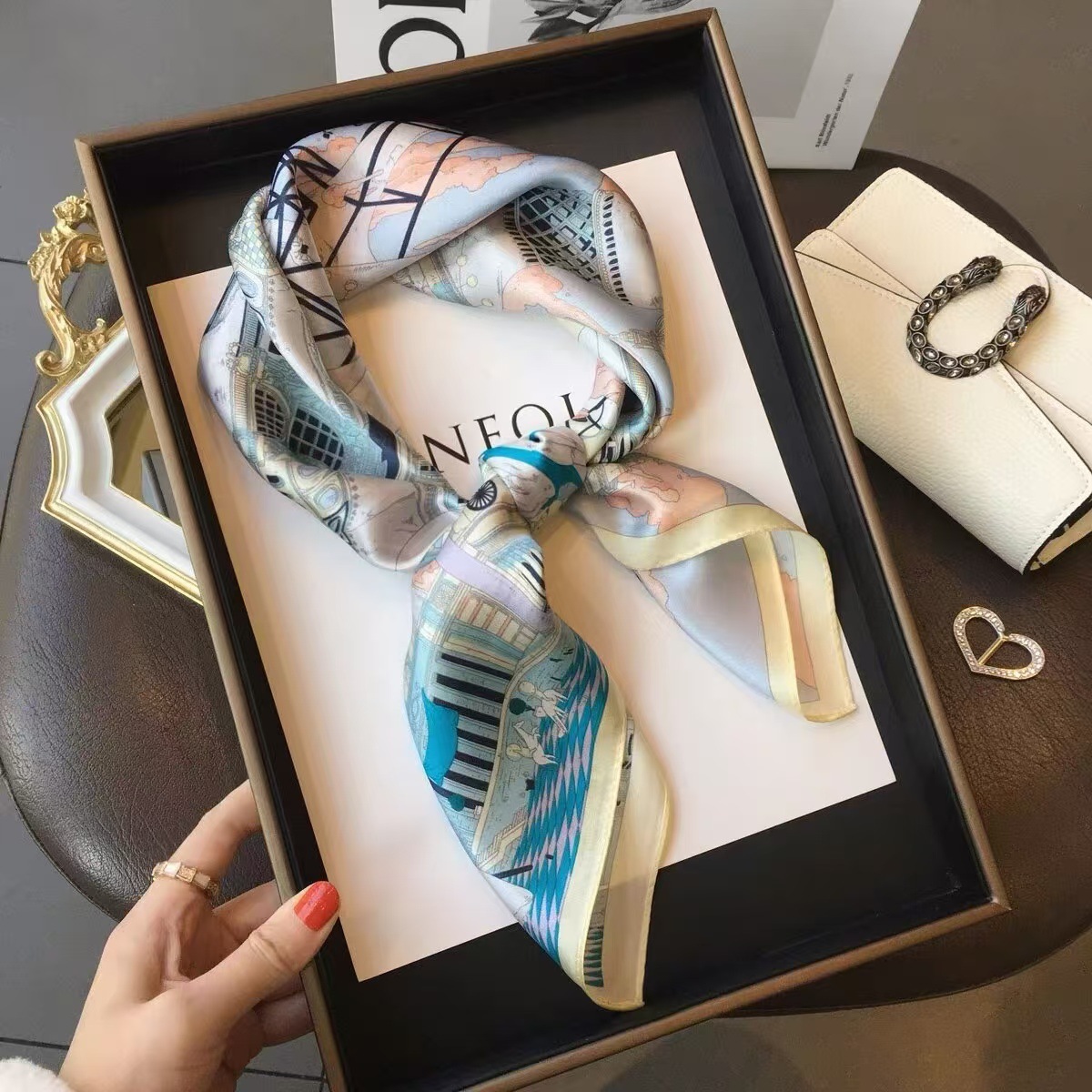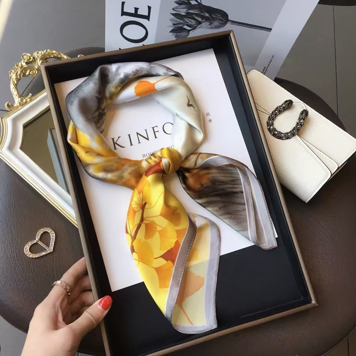 苏杭丝绸女桑蚕丝丝巾复古百搭高级感70cm小方巾春秋围巾批发