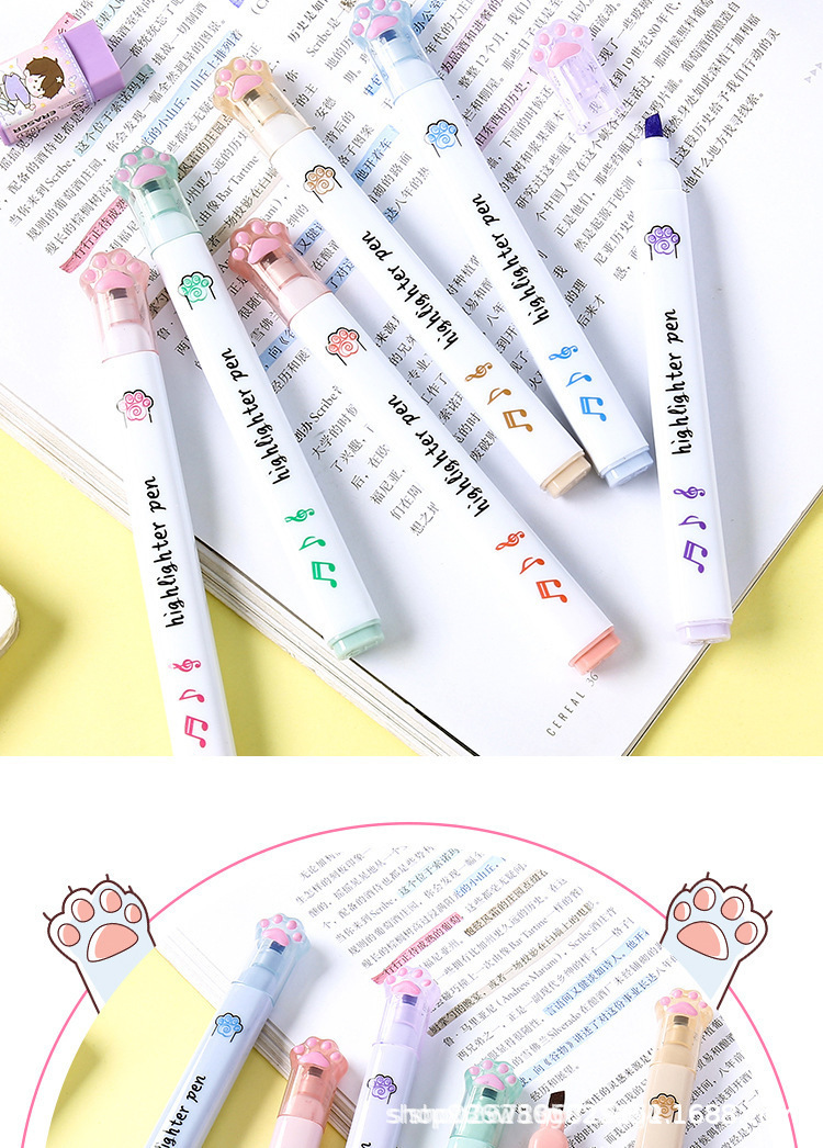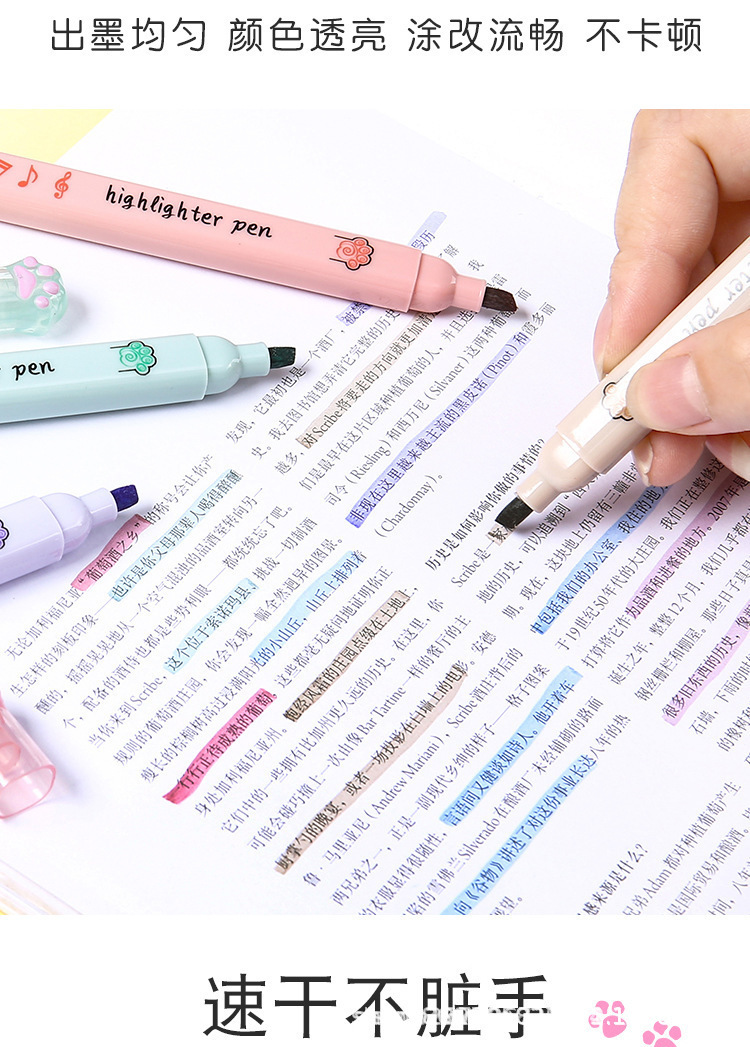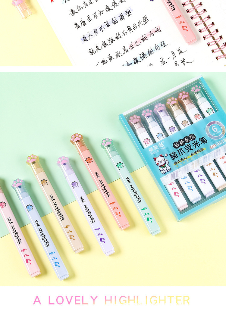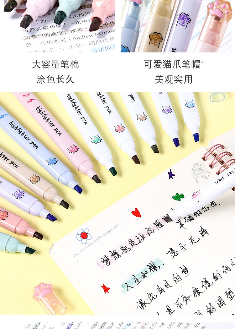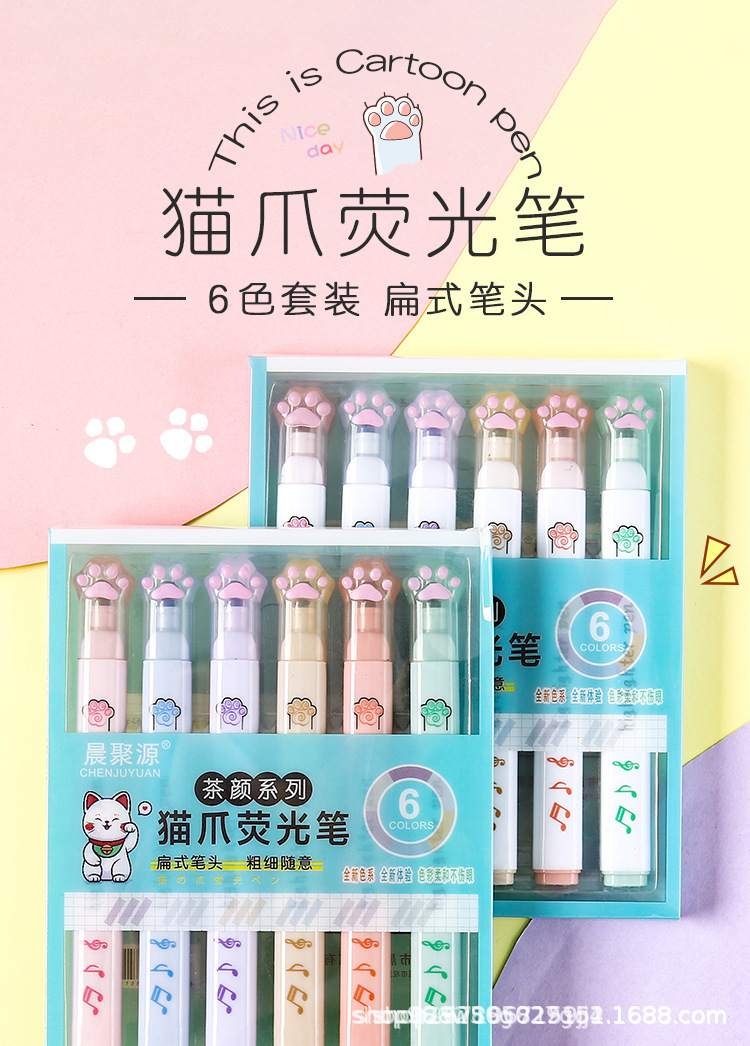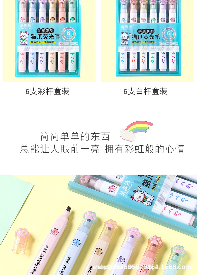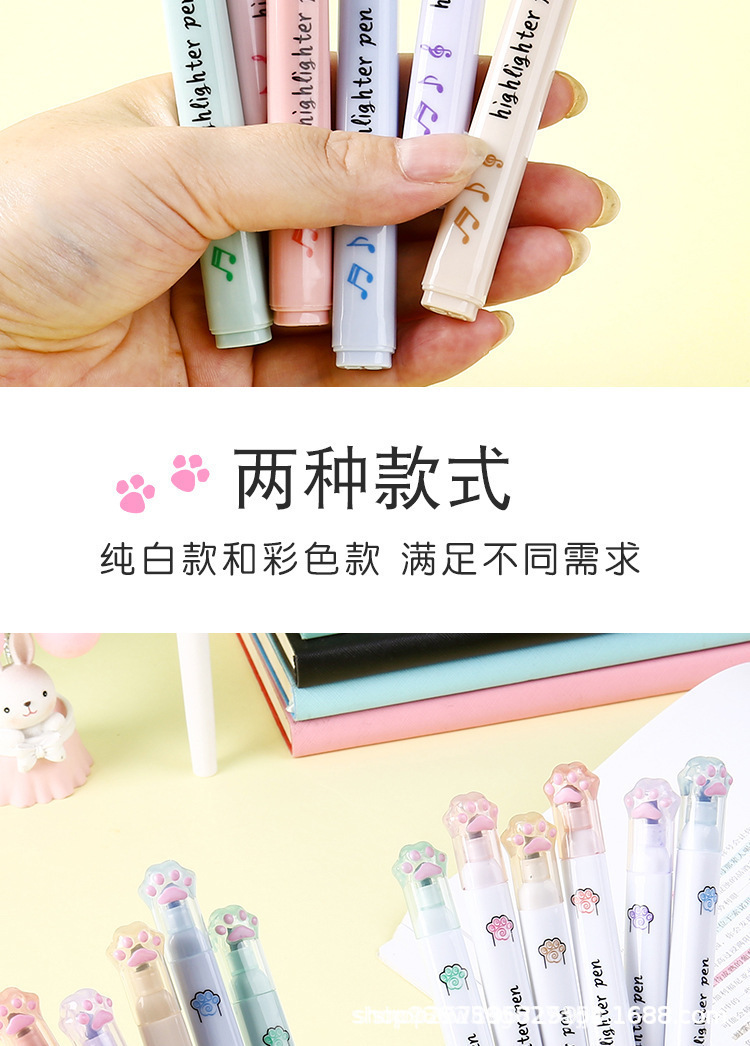 猫爪单头荧光笔ins高颜值做笔记记号笔彩色标记重点学生批发茶颜