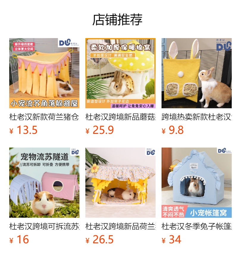 杜老汉跨境新款仓鼠躲避屋厂家直销荷兰猪龙猫兔子躲避房子兔子窝
