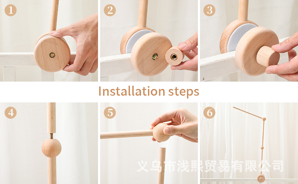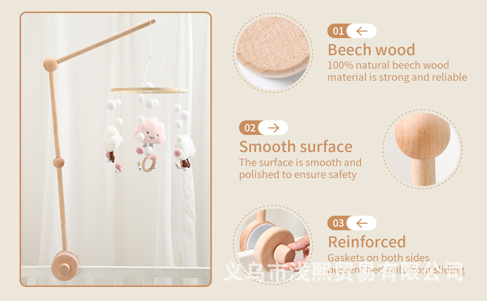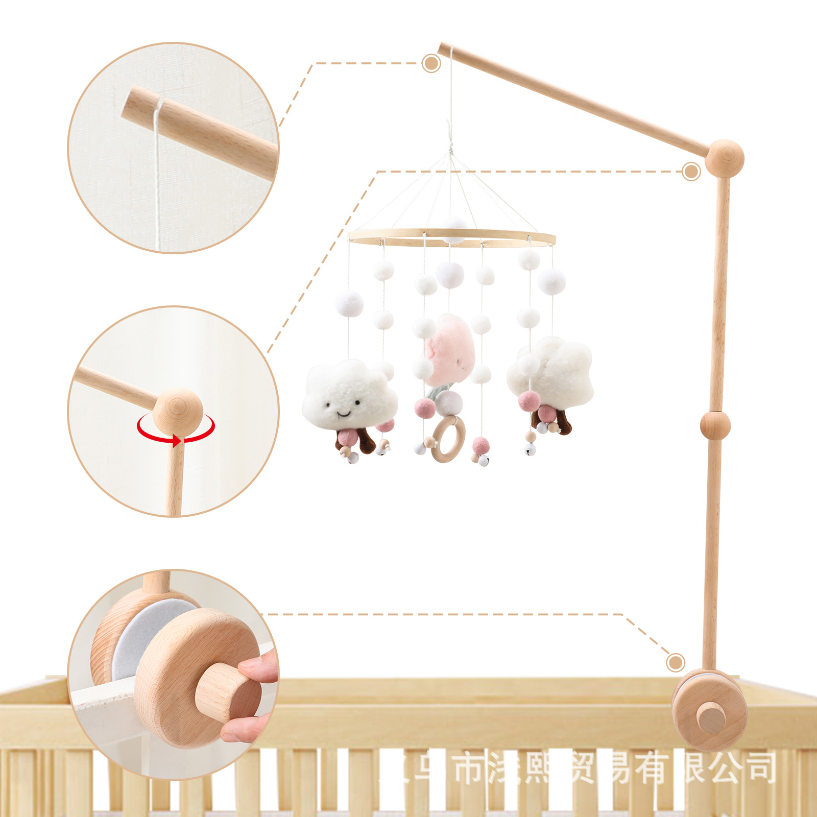 亚马逊简约婴儿床铃木制支架蚊帐挂杆床铃配件新生儿安抚床铃支架