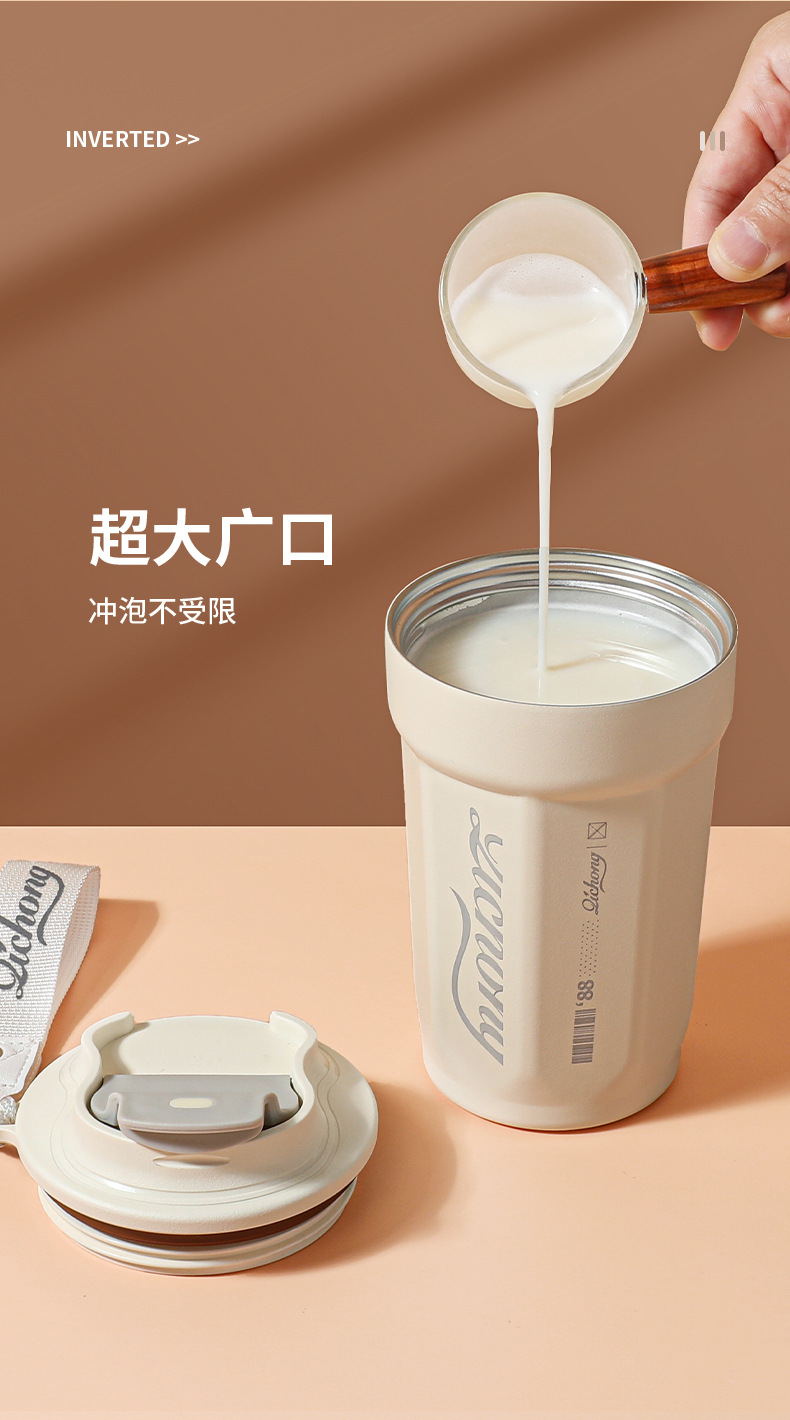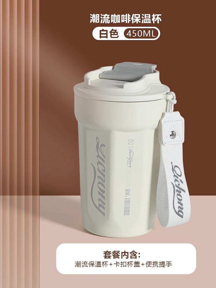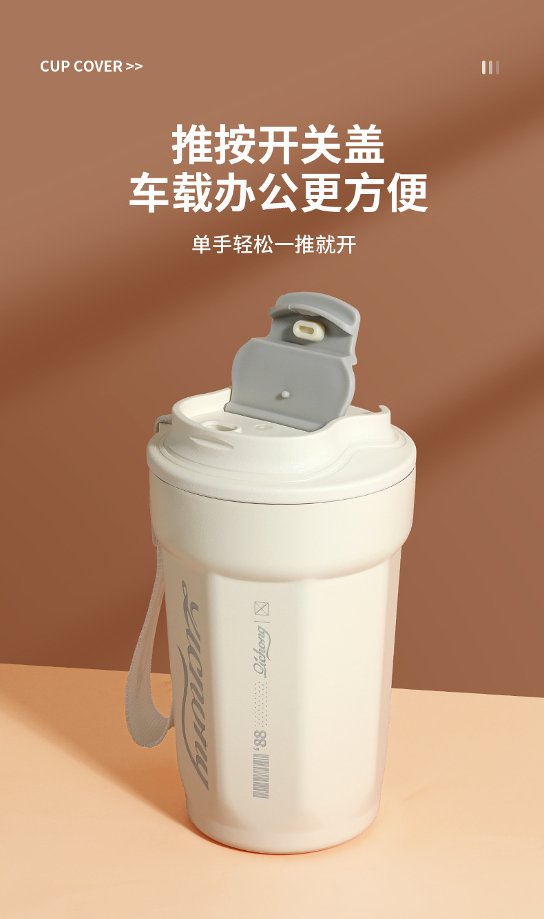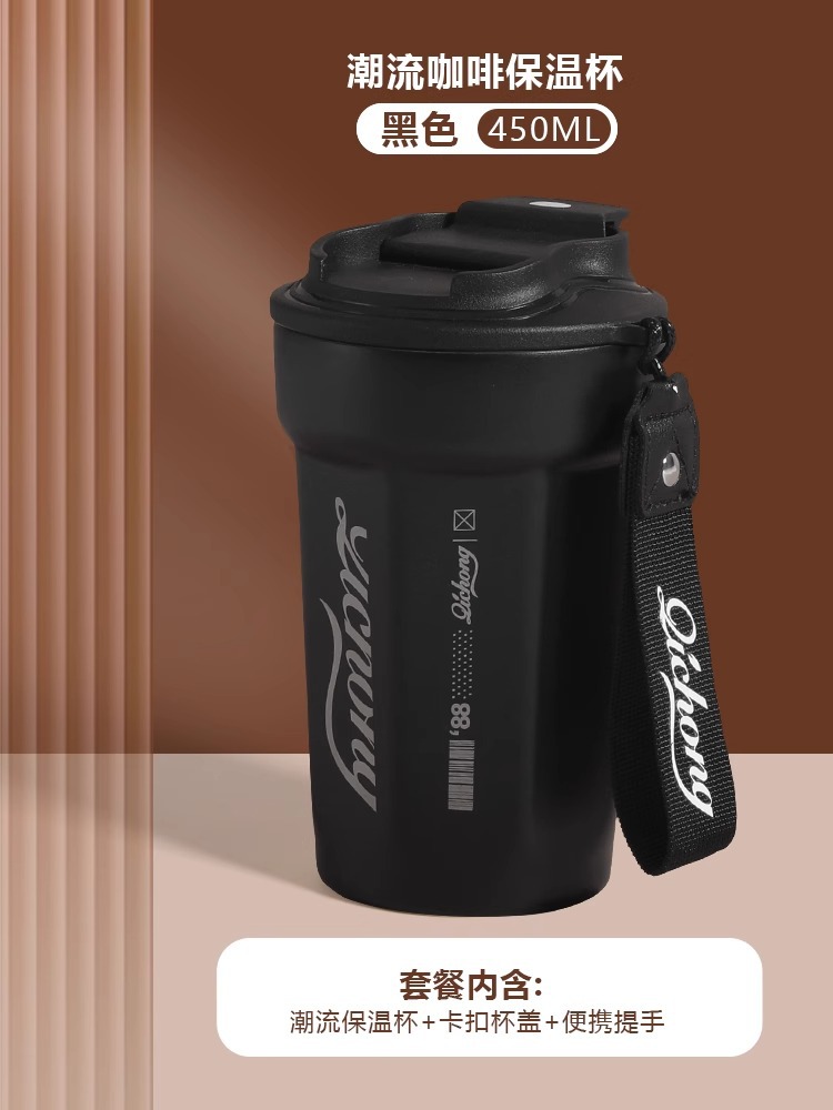高颜值316不锈钢八角咖啡杯户外便携带提绳随手杯双层真空保温杯