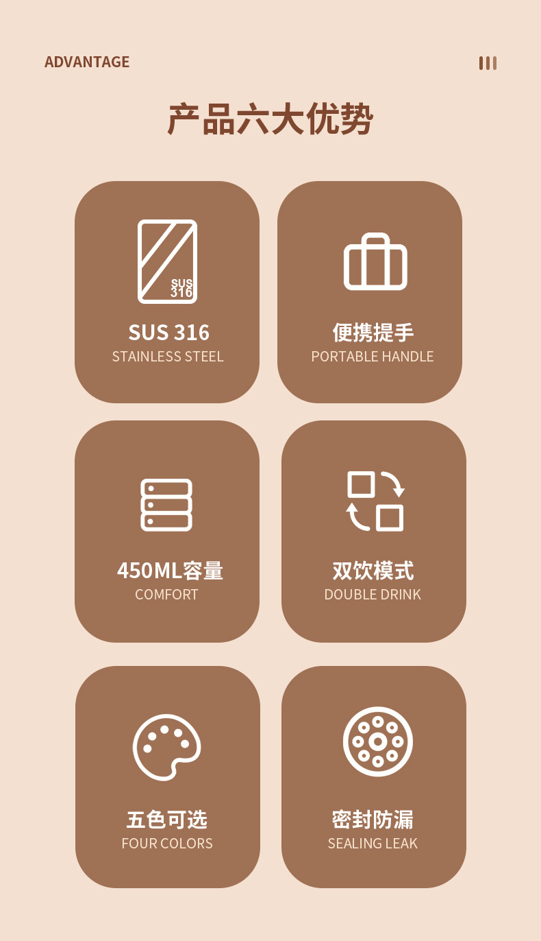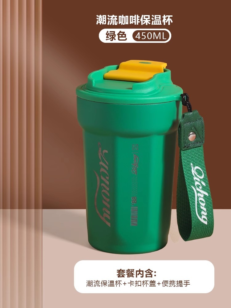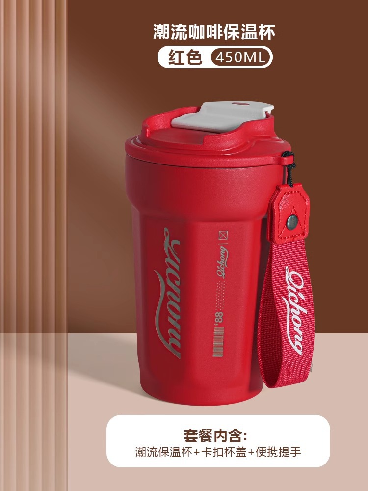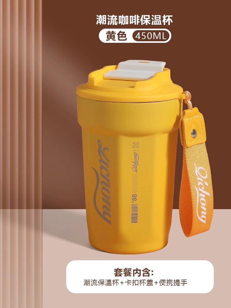 高颜值316不锈钢八角咖啡杯户外便携带提绳随手杯双层真空保温杯