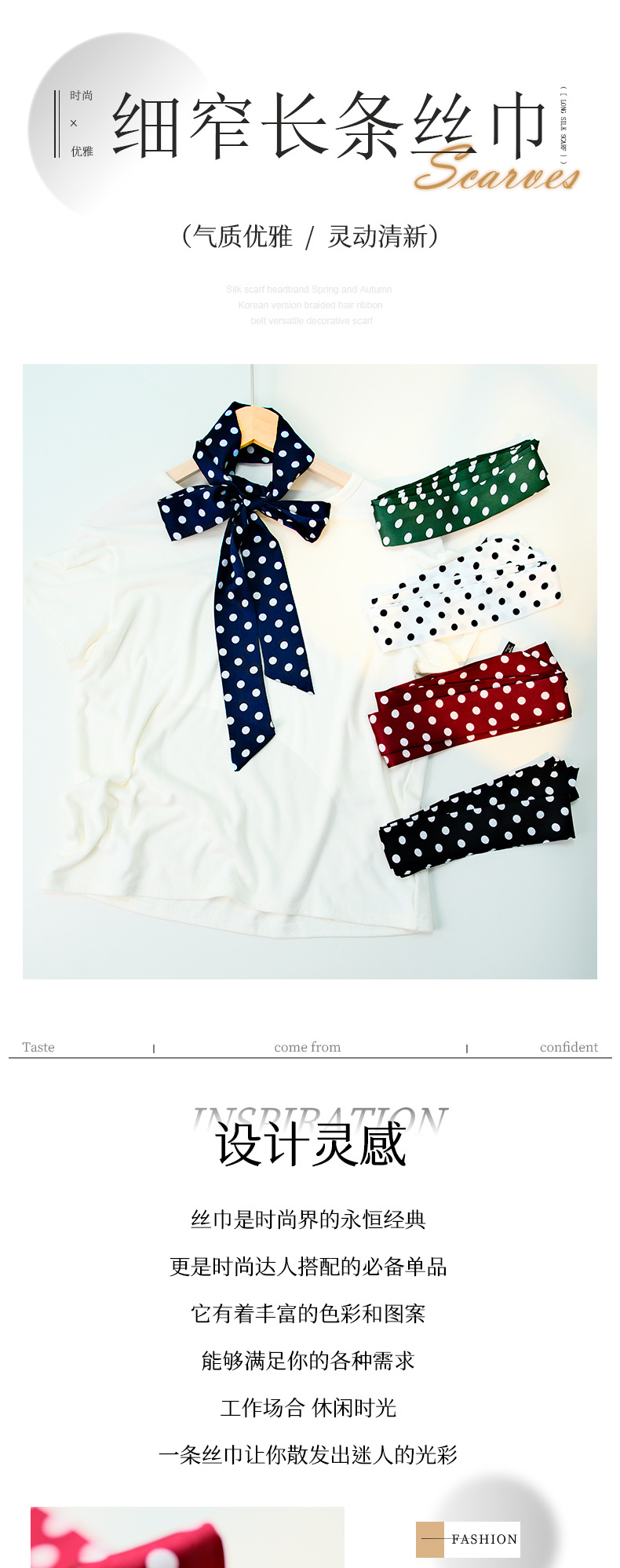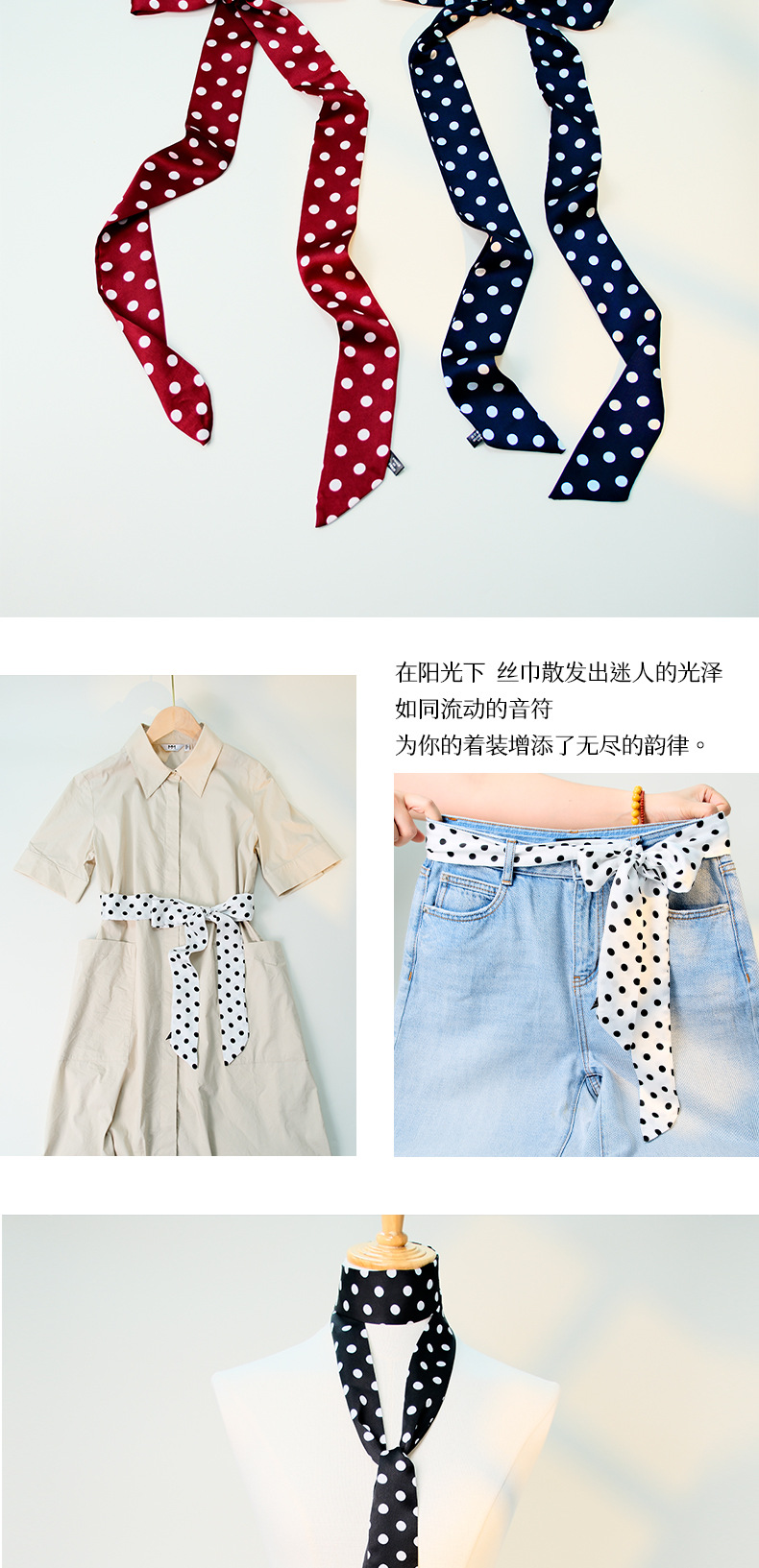 ins风190cm波点细长窄高级感小领带丝巾女飘带扎头发腰带包包缠带