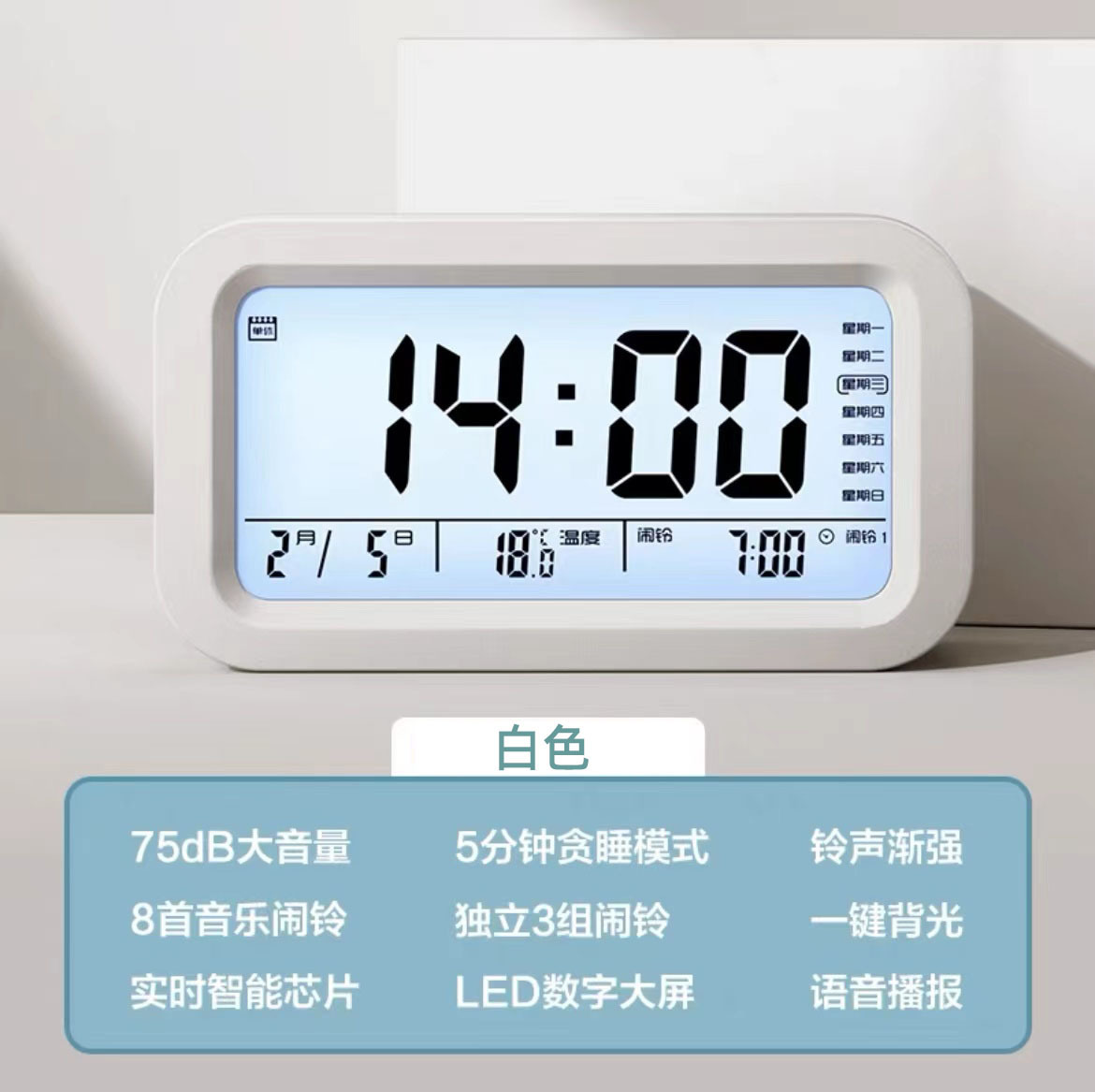儿童智能电子闹钟充电款三组闹铃多个功能定时闹钟学生带语音