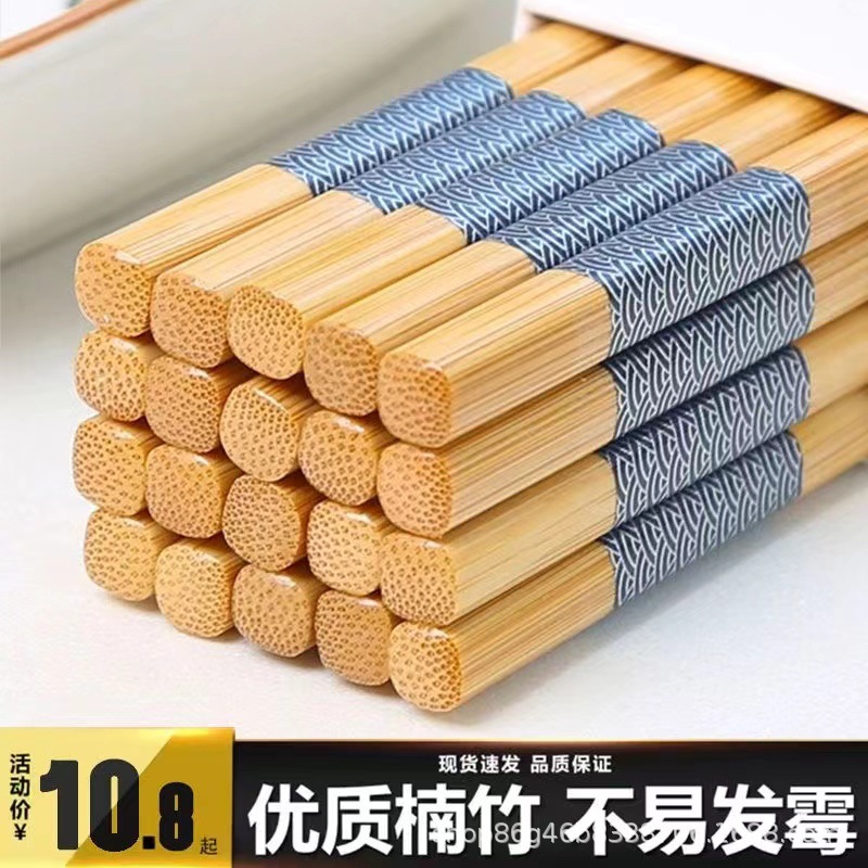 楠竹筷子耐高温家用高颜值5-10双装成人不易发霉木一人一筷竹筷