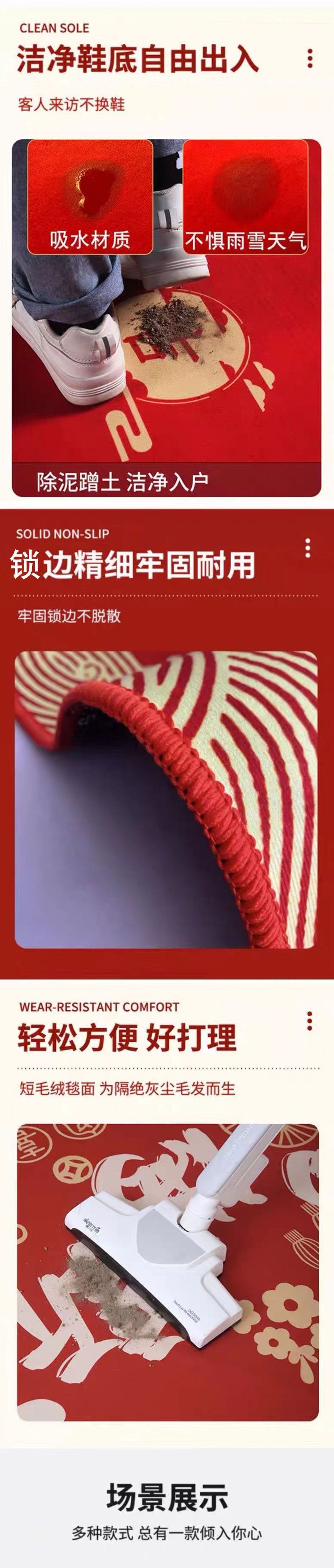 红色高级感入户门地垫家用吸水耐脏易打理脚垫新年节日门口地垫