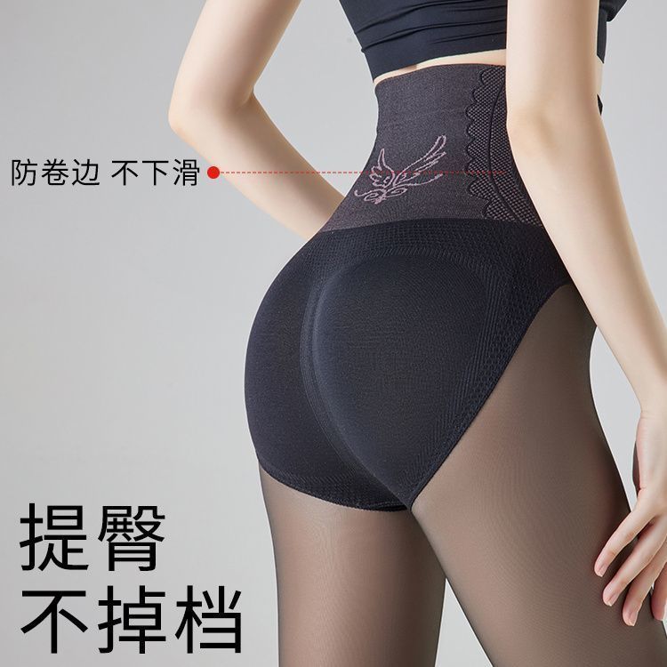 飘柳同款水光袜女秋冬裸感透肤丝袜不掉档高腰收腹黑透肤光腿神器