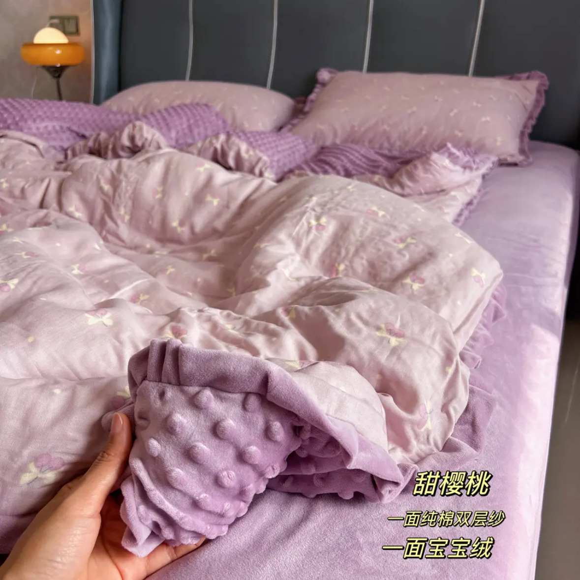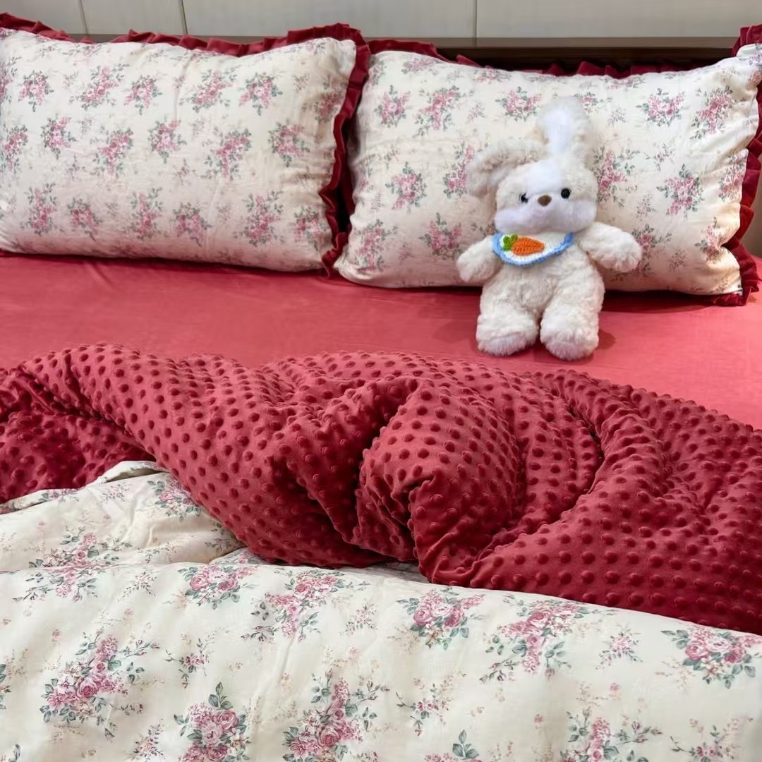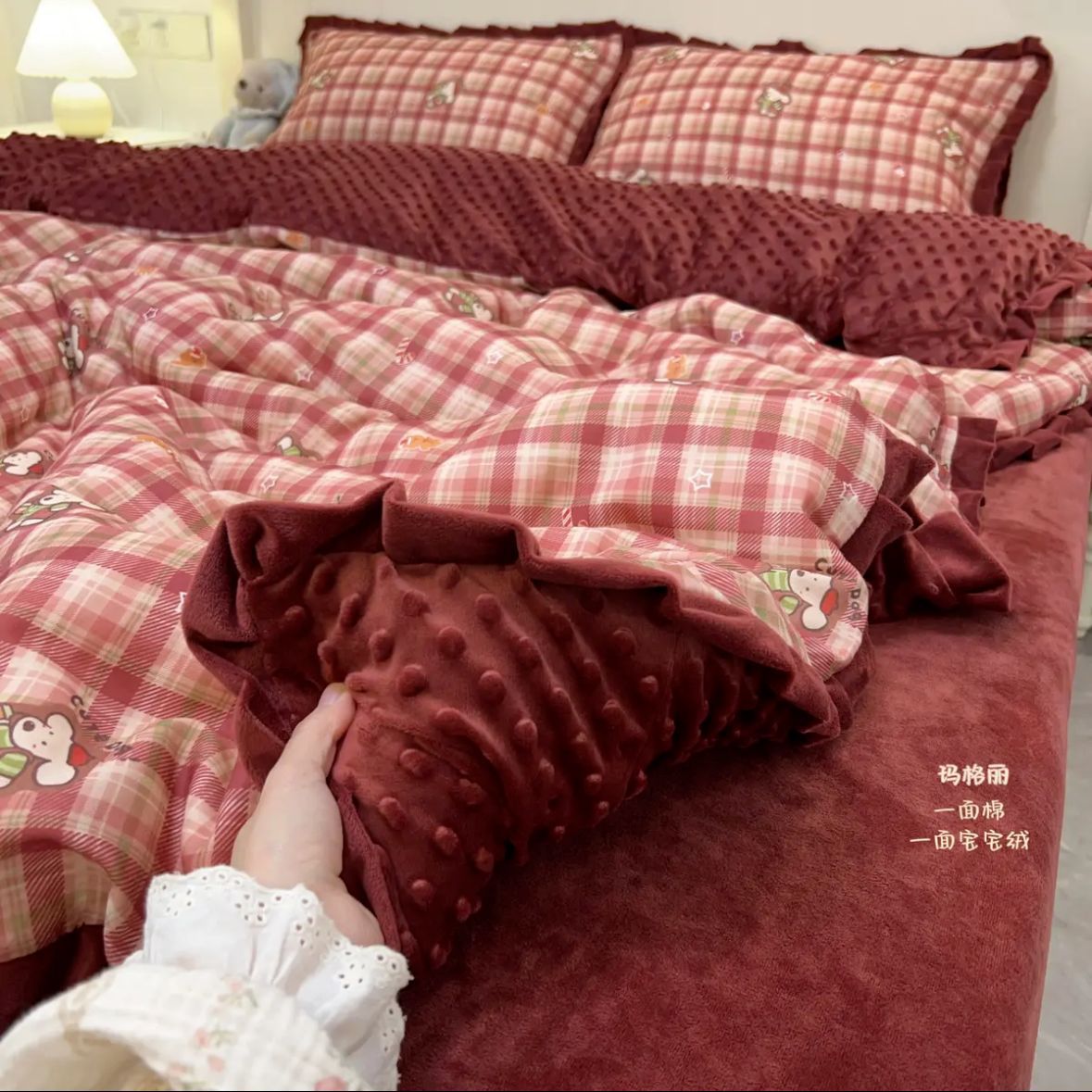 抖音爆款ins韩国秋冬加厚全棉双层纱豆豆绒四件套绒被套柔软批发