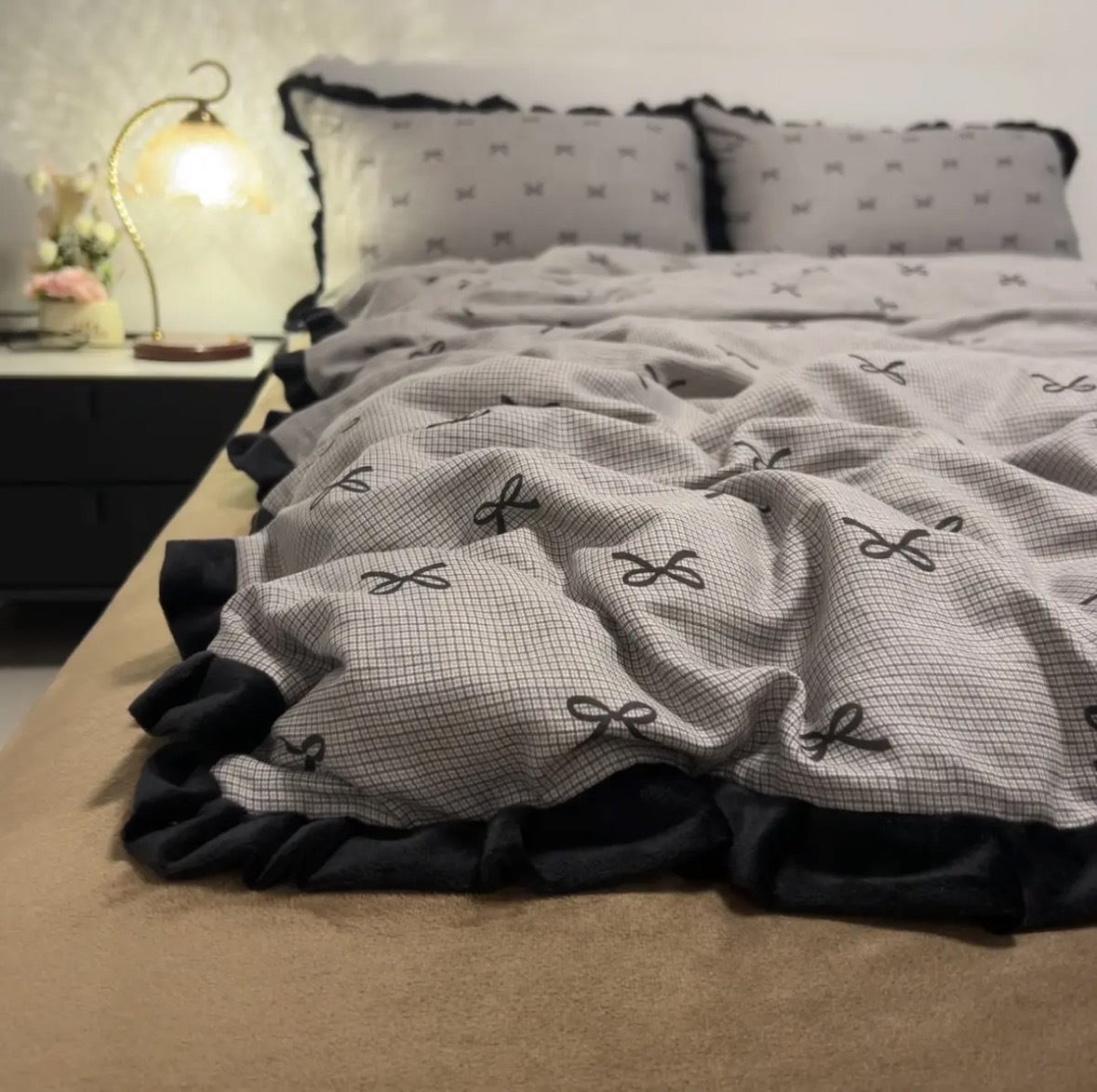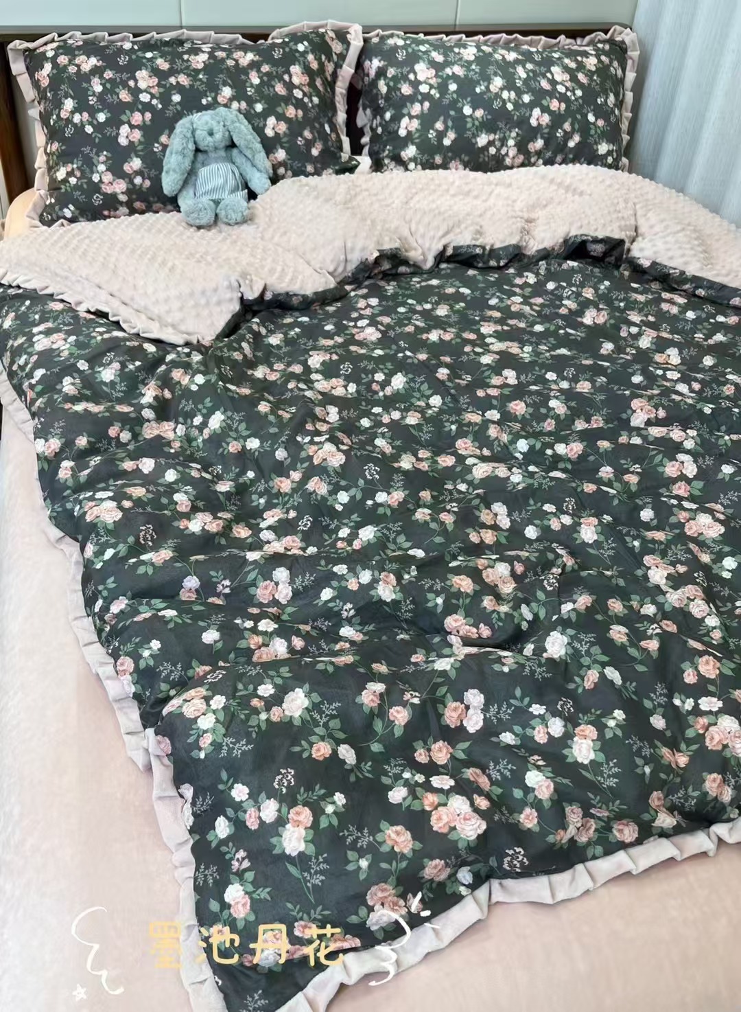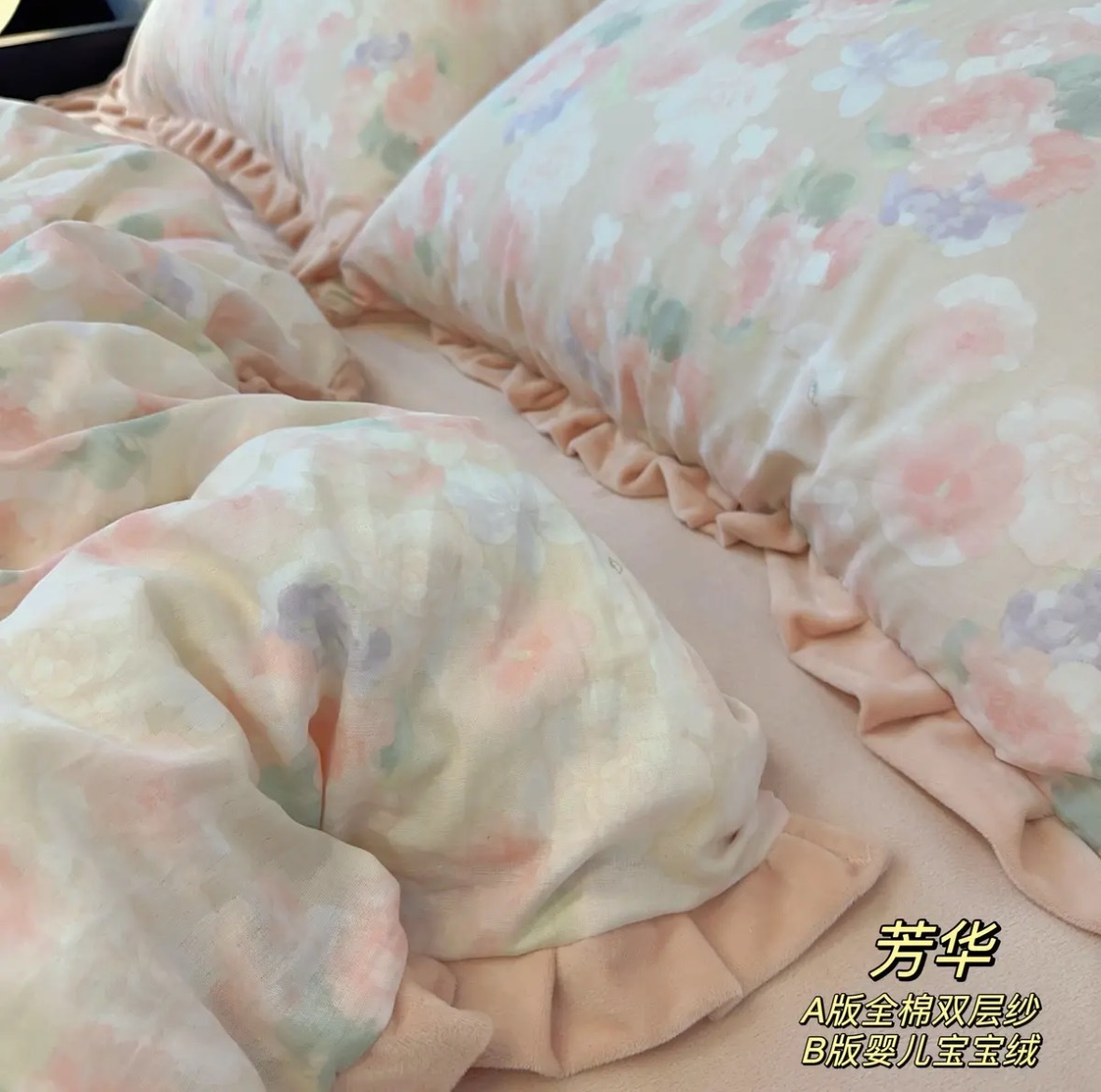 抖音爆款ins韩国秋冬加厚全棉双层纱豆豆绒四件套绒被套柔软批发