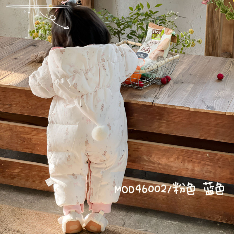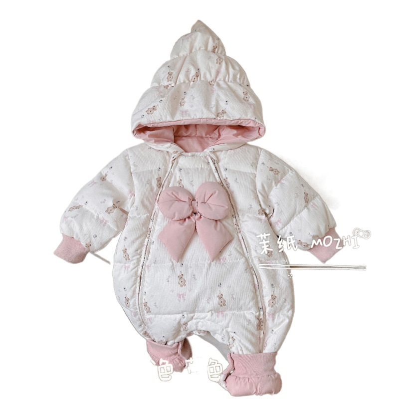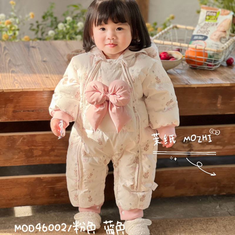 新生婴儿羽绒服女宝宝冬季连体衣洋气公主加厚外出抱衣双拉链爬服