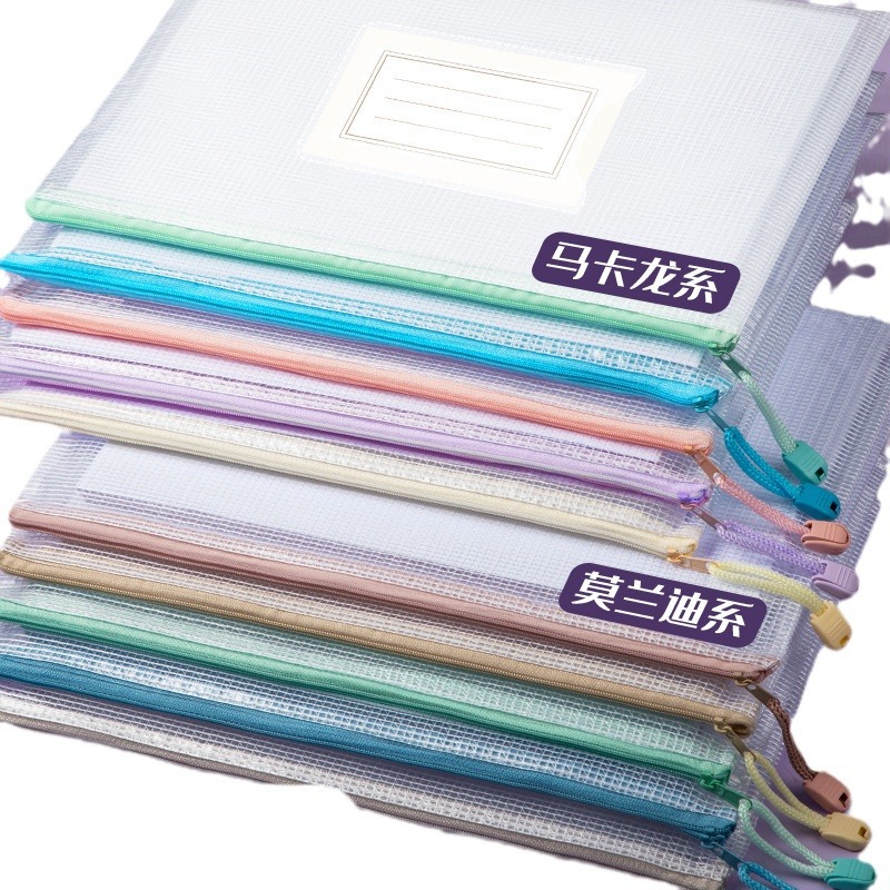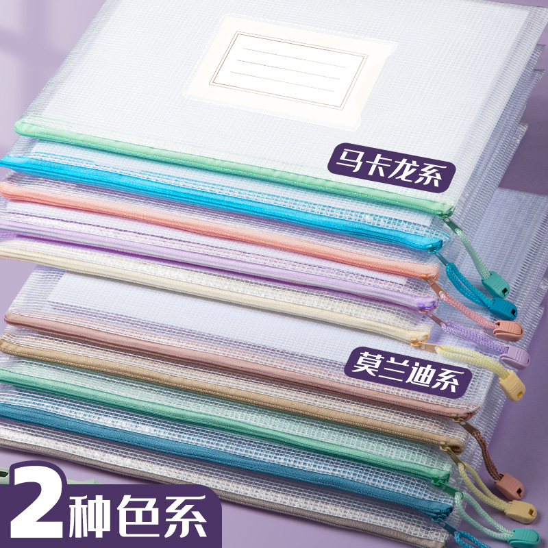 a4文件袋透明文件收纳袋网格拉链档案防水塑料办公学生用科目分类