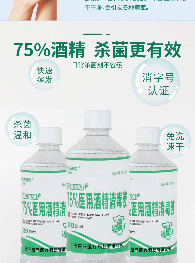 | (包邮)75%酒精500ML扭盖 3瓶送喷头+棉签 | USD $3.22 | 4887 bottle available |