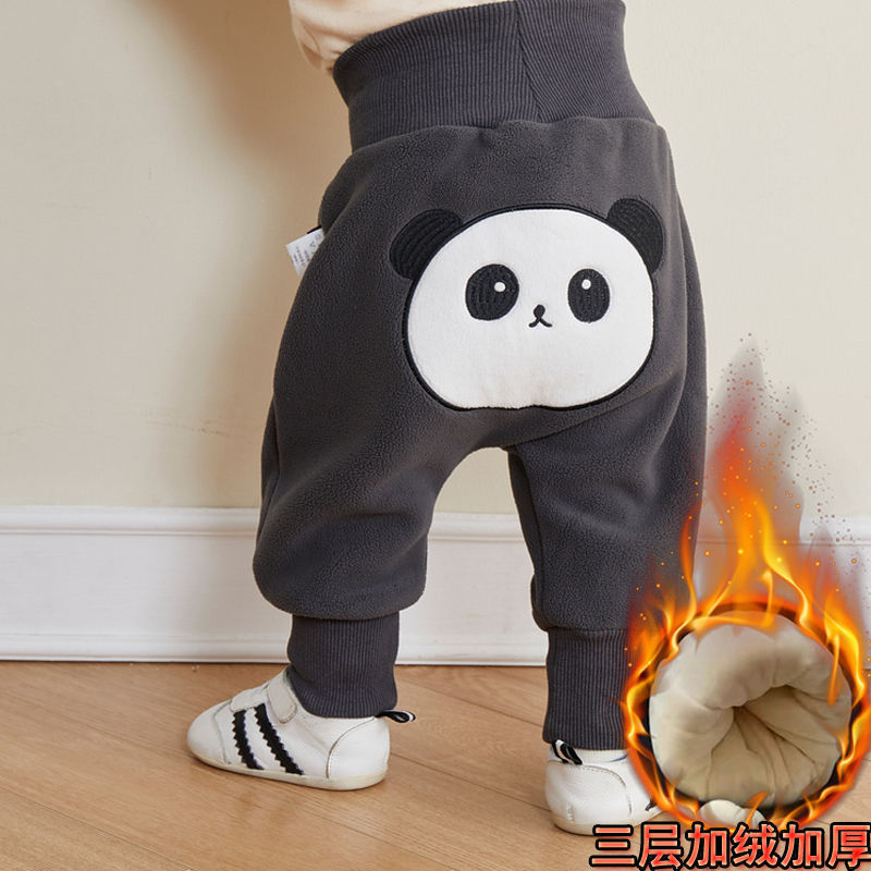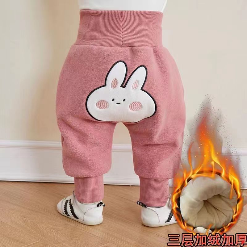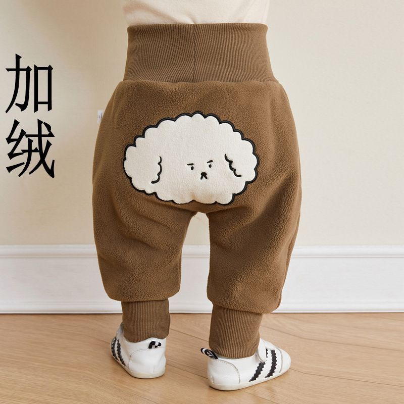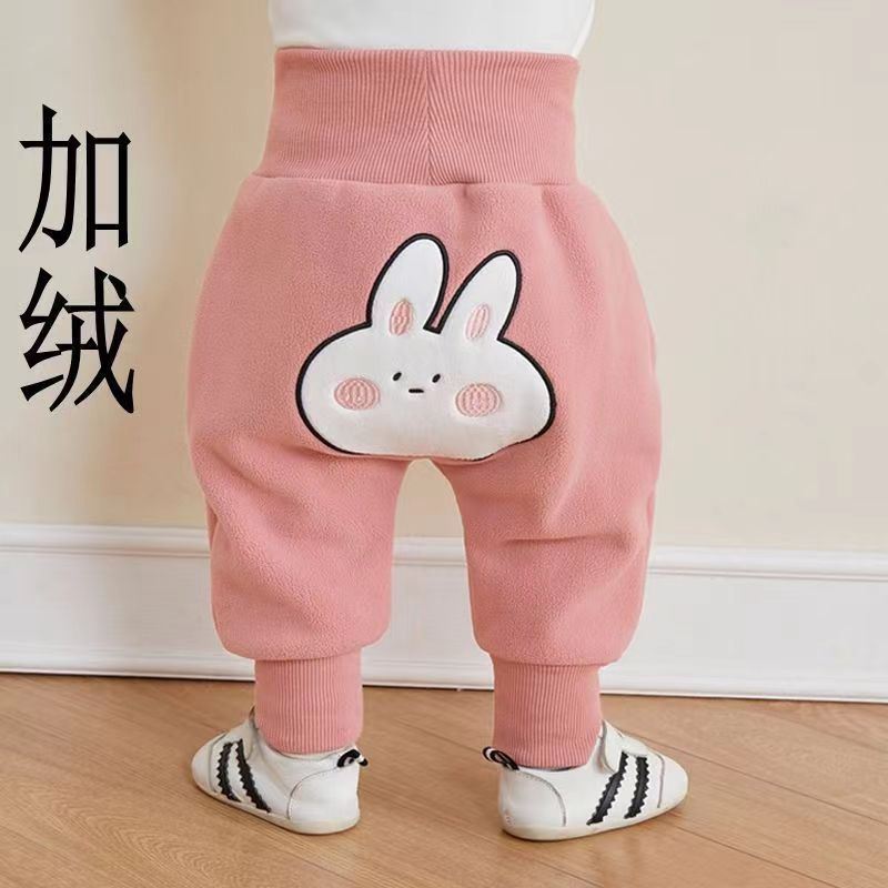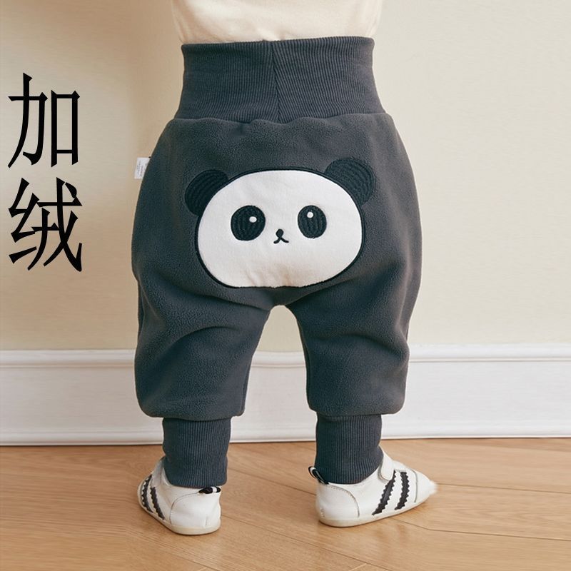 婴幼儿加绒加厚裤子宝宝秋冬外穿高腰护肚PP裤男女小童保暖屁屁裤