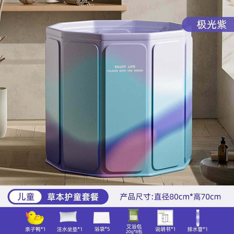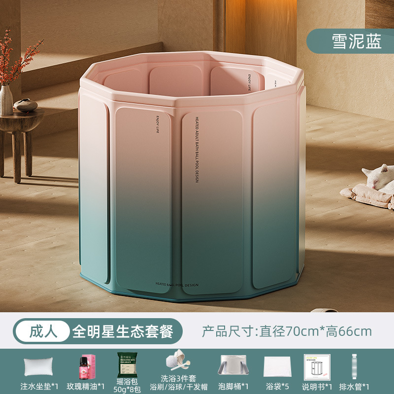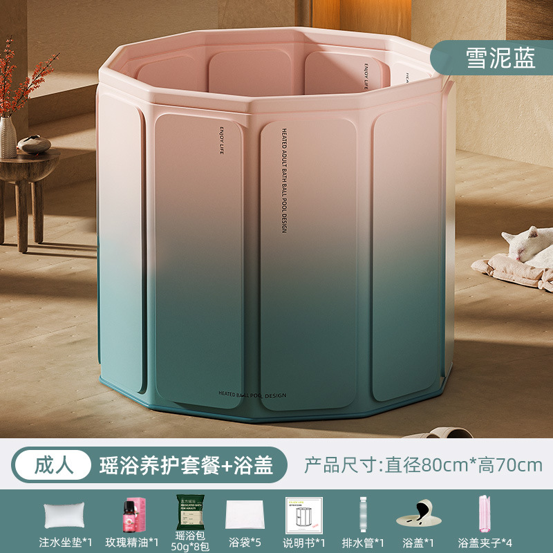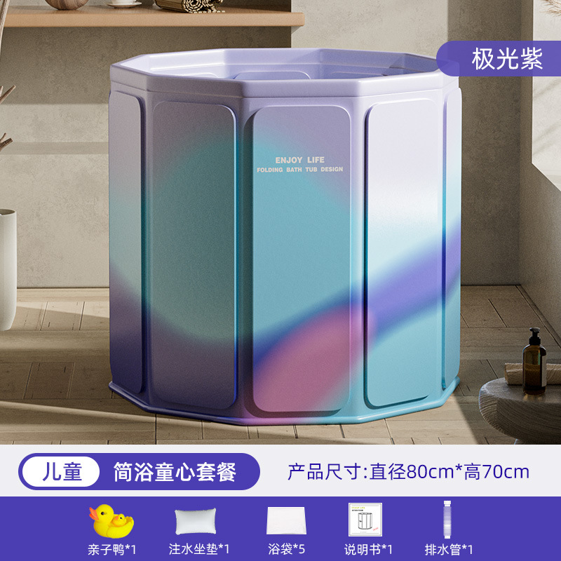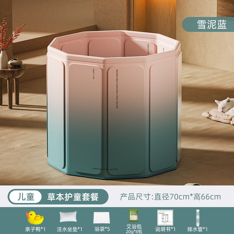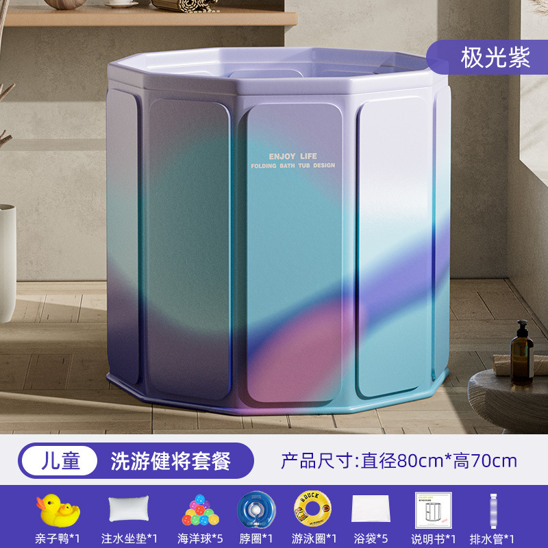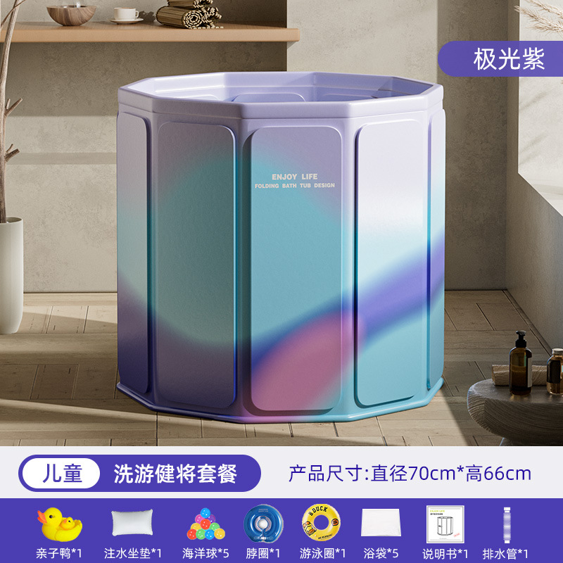 泡澡桶大人儿童沐浴桶免安装折叠便携家用PVC婴儿游泳加高洗澡桶