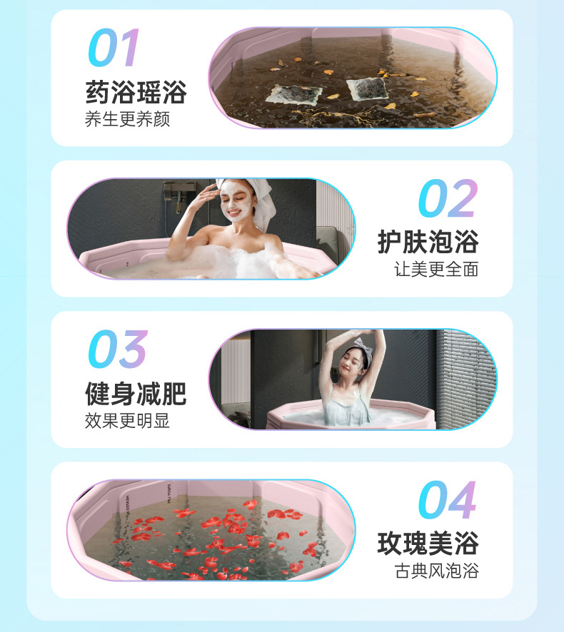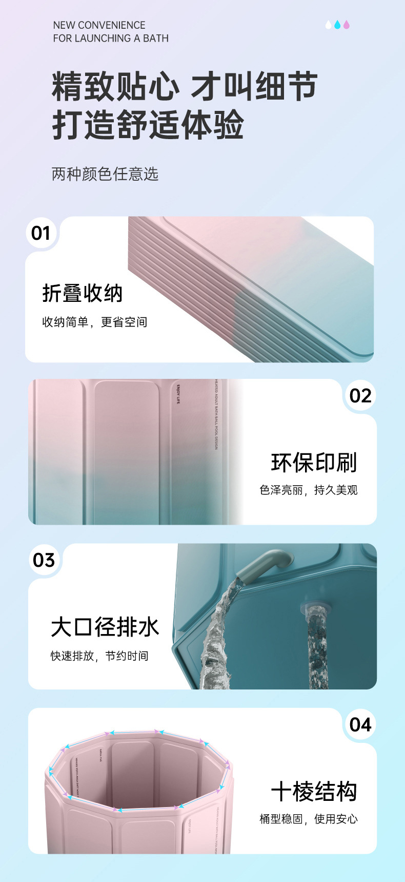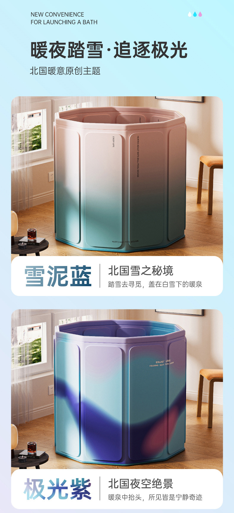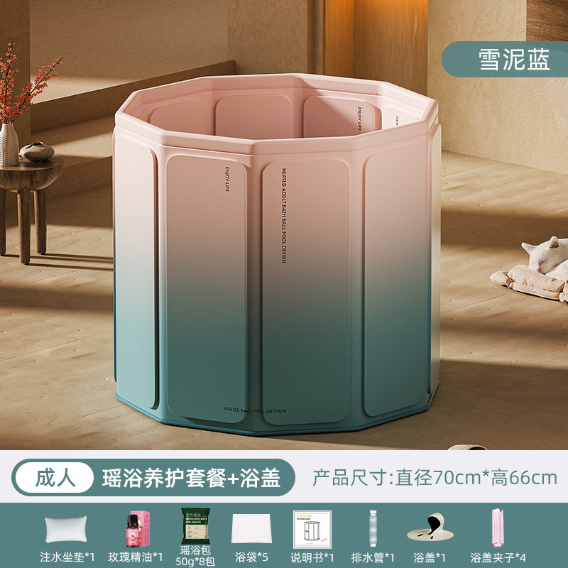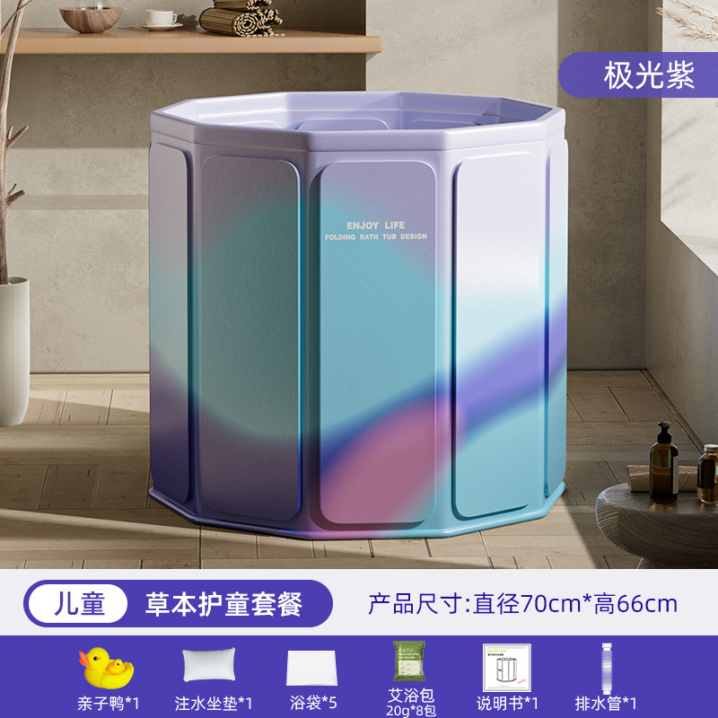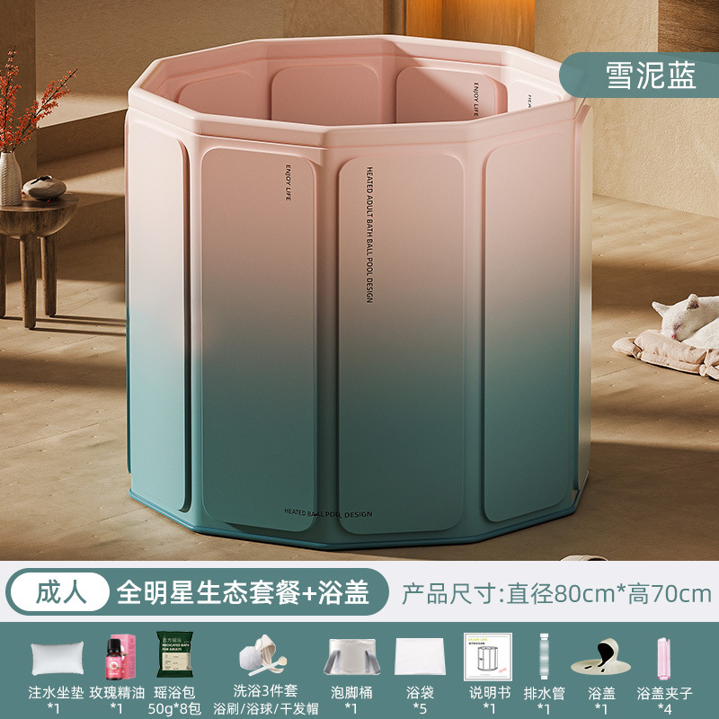 泡澡桶大人儿童沐浴桶免安装折叠便携家用PVC婴儿游泳加高洗澡桶