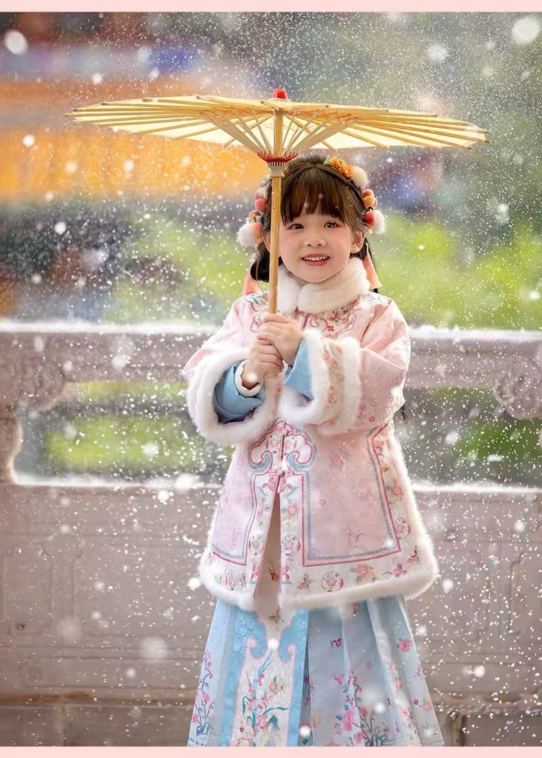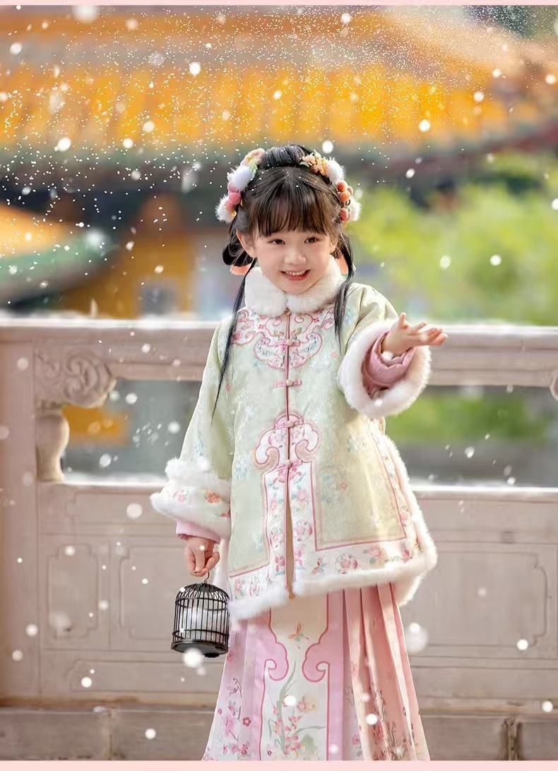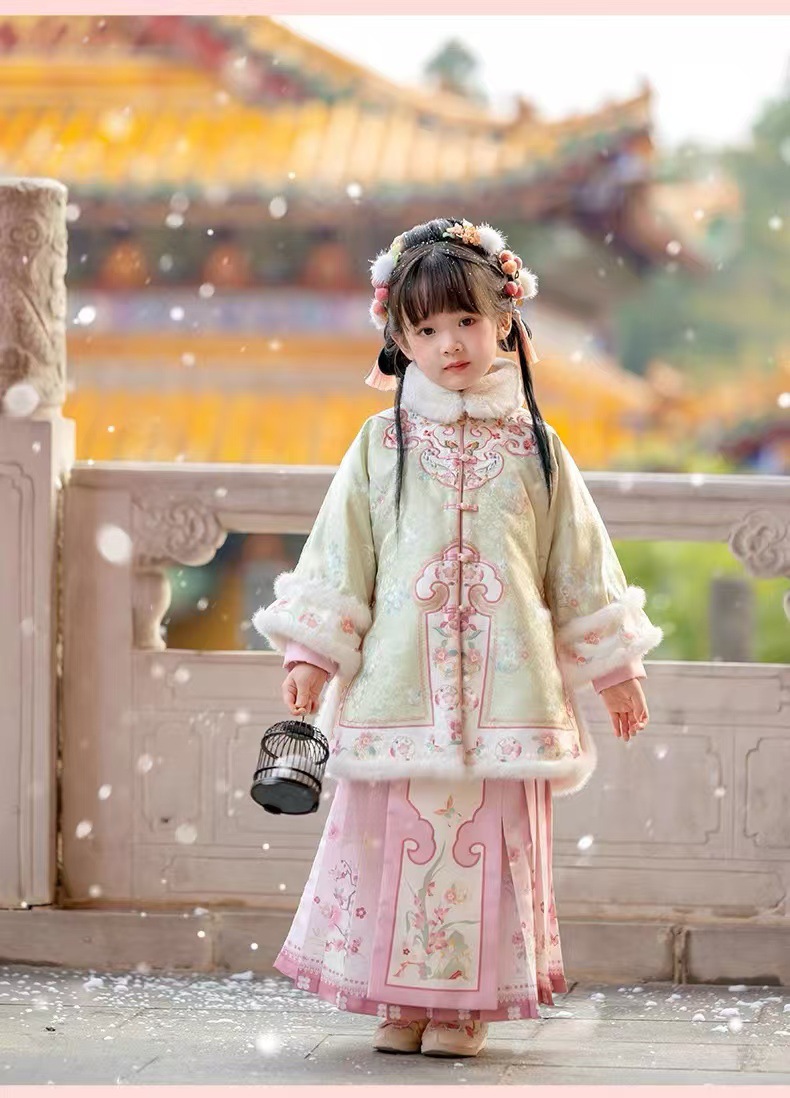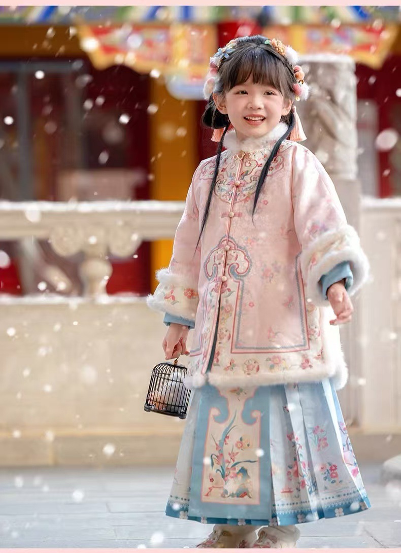 小海兰 儿童格格服冬款加棉加厚古装过年套装唐装加绒拜年冬宫廷