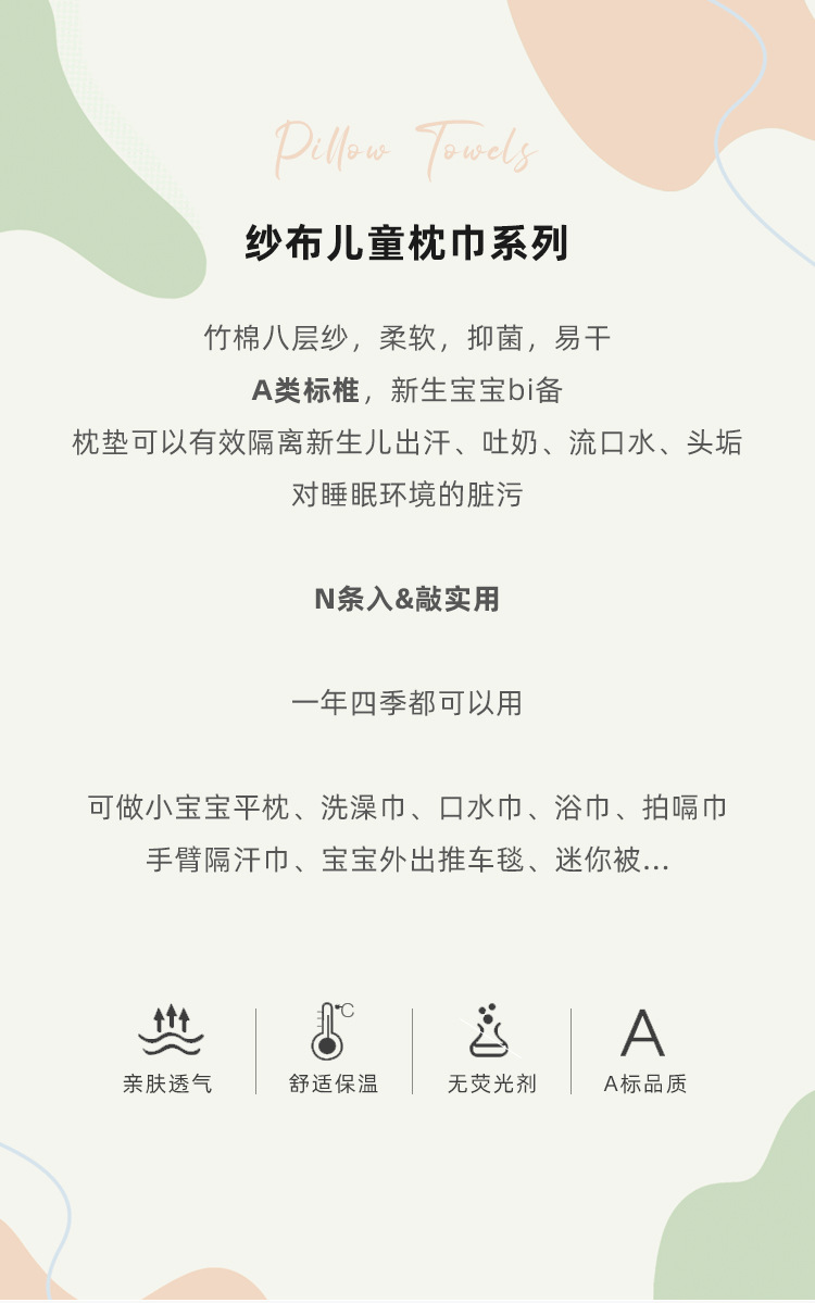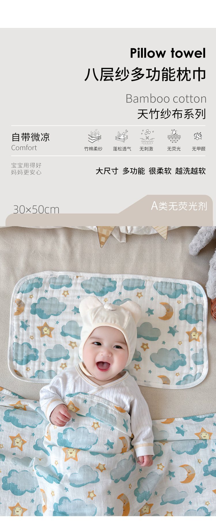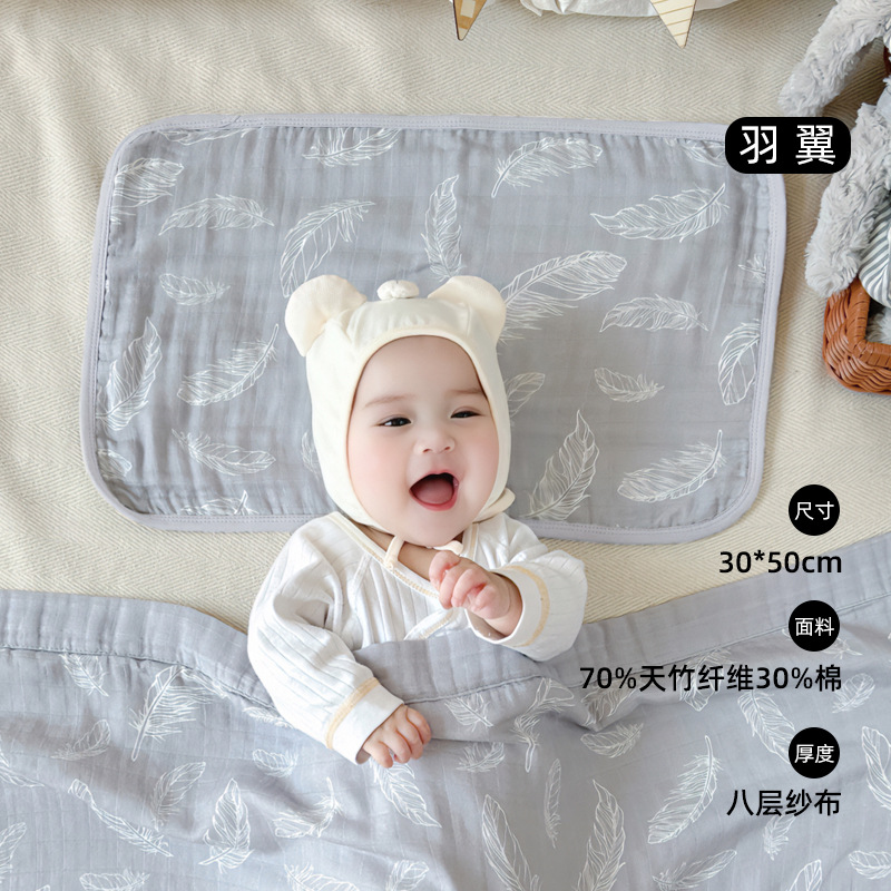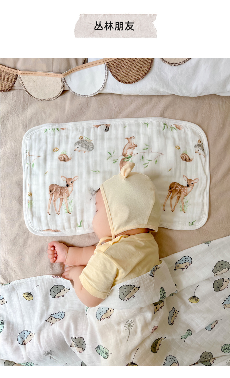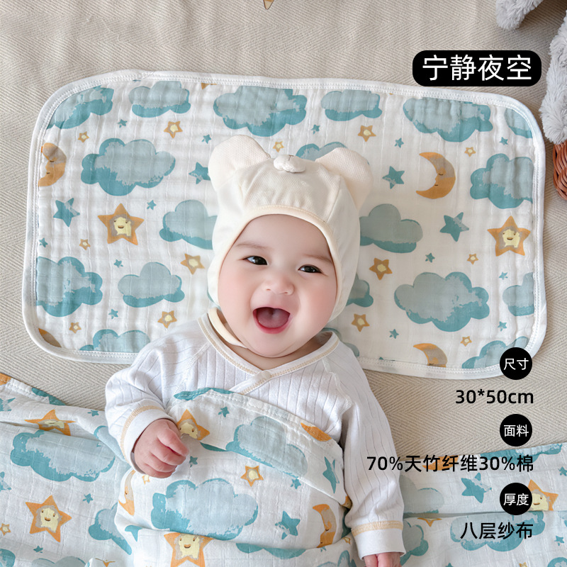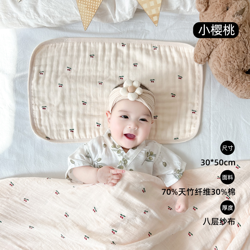 八层纱竹棉婴儿纱布枕巾 儿童枕头巾 新生儿宝宝云片枕 枕垫低枕