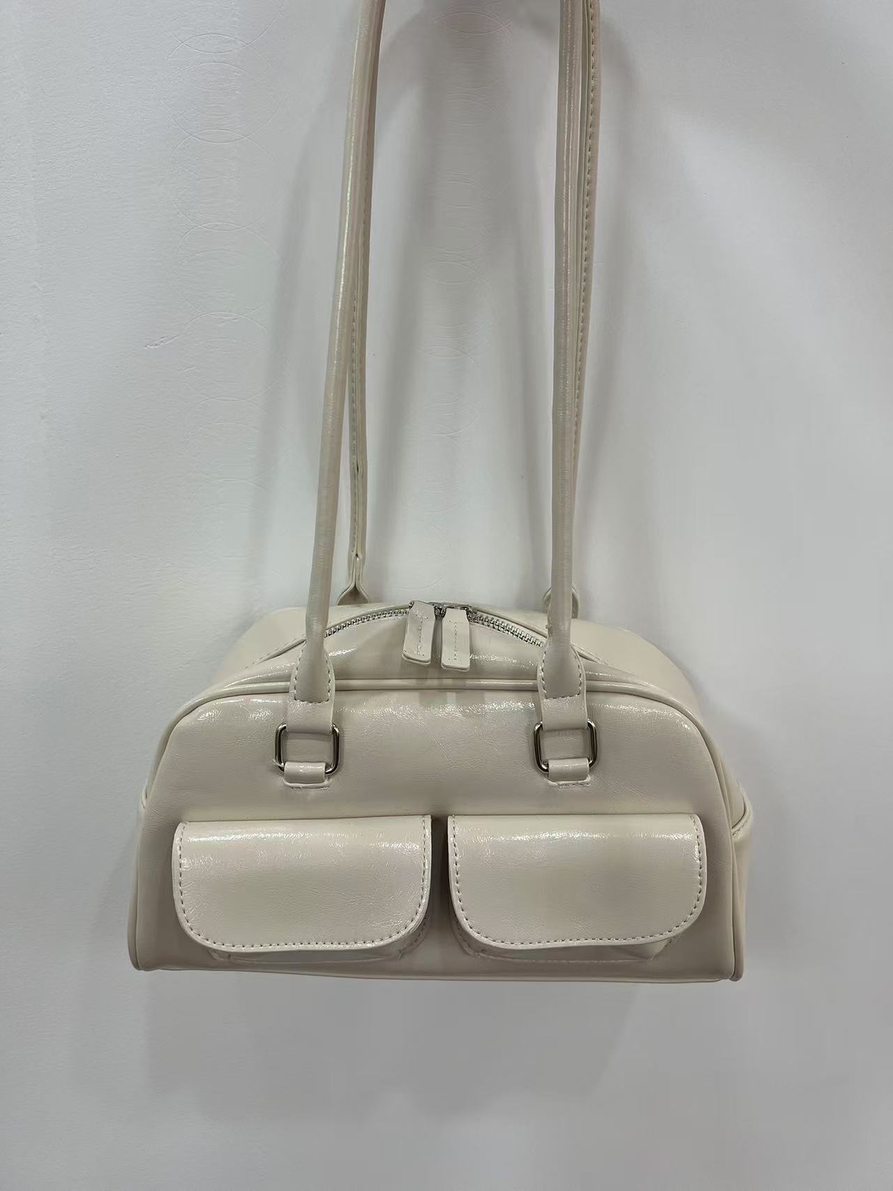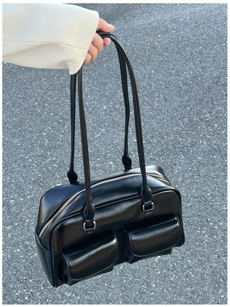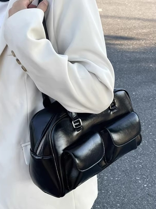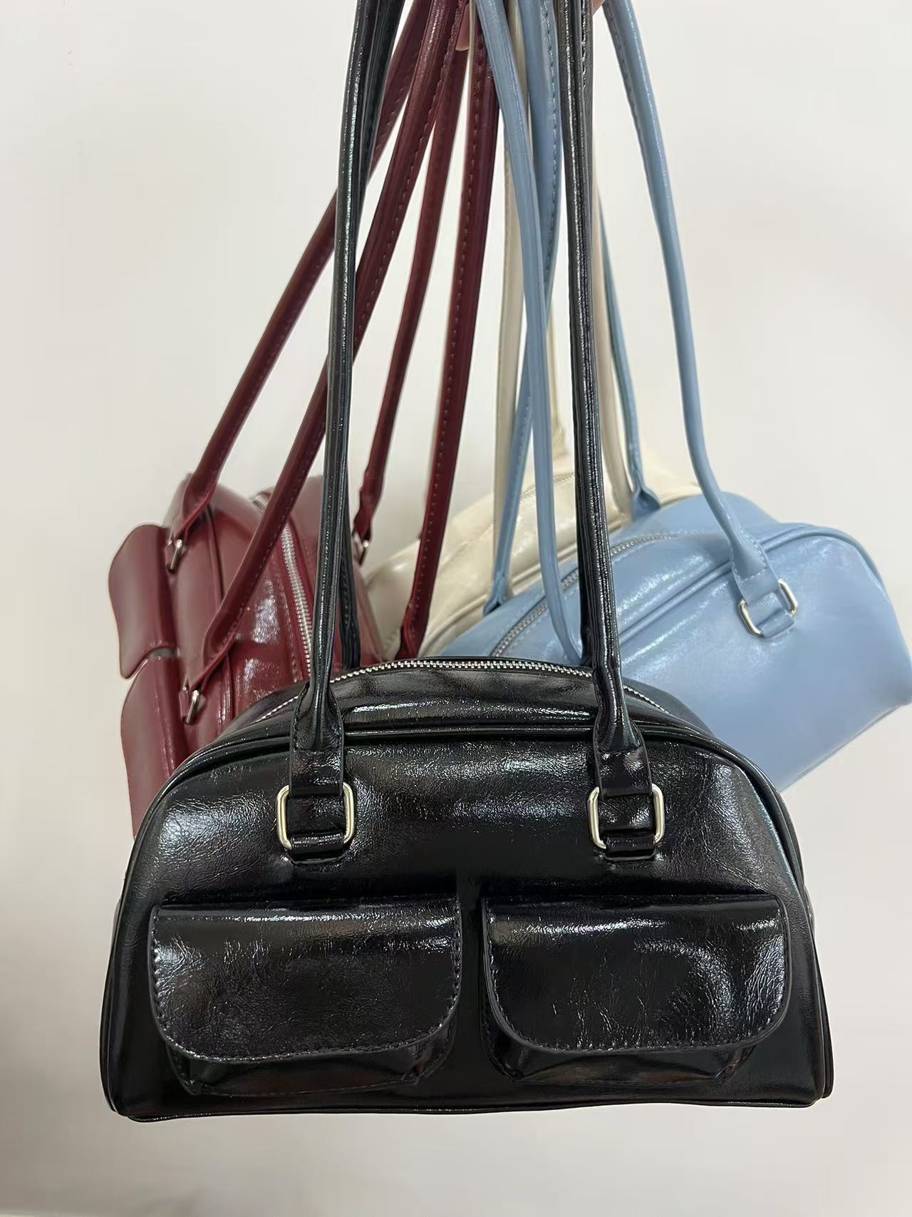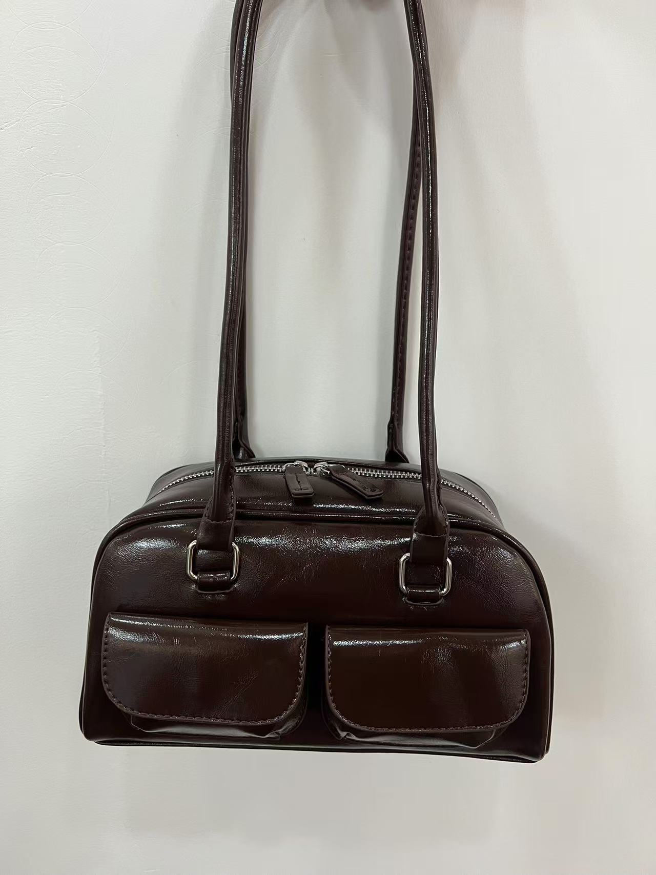 韩国晕针许允真同款油蜡皮保龄球包多口袋腋下包通勤手提单肩包包